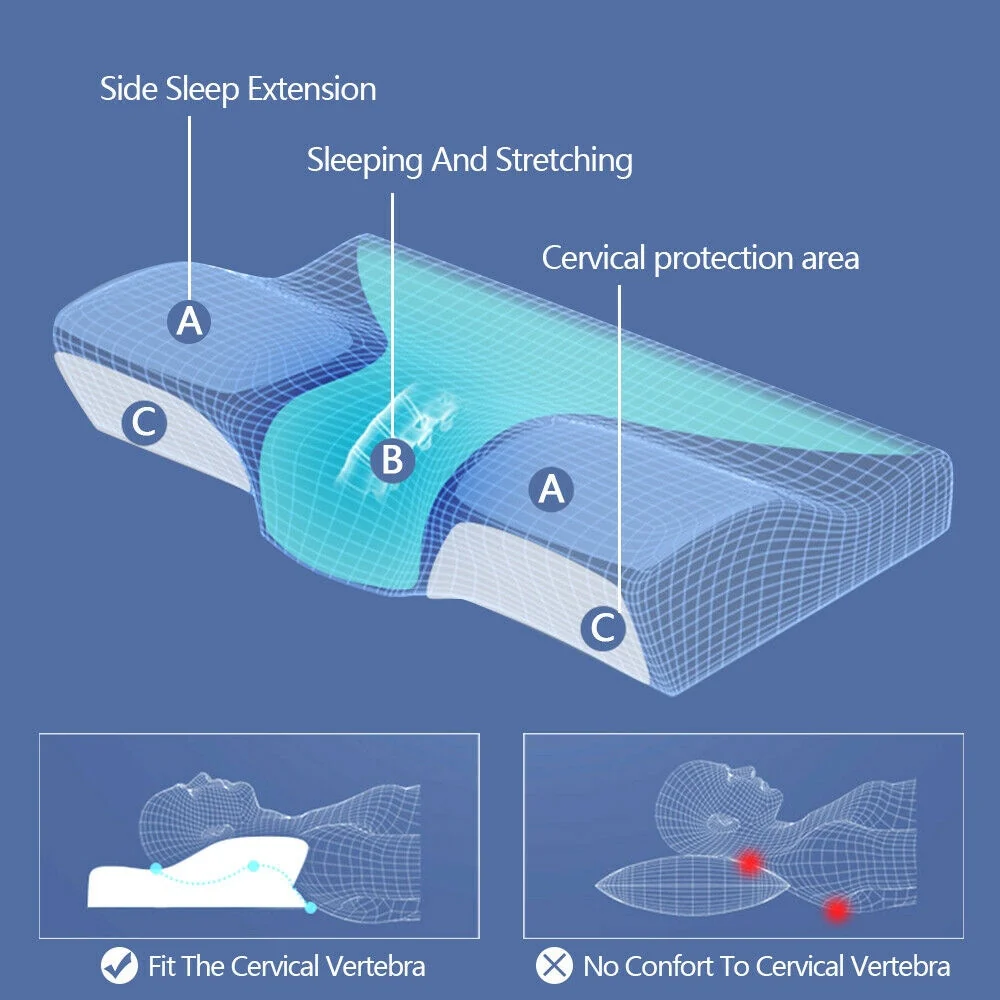 Contour Memory Foam Pillow Ergonomic Cervical Neck Support for Sleep - Grey