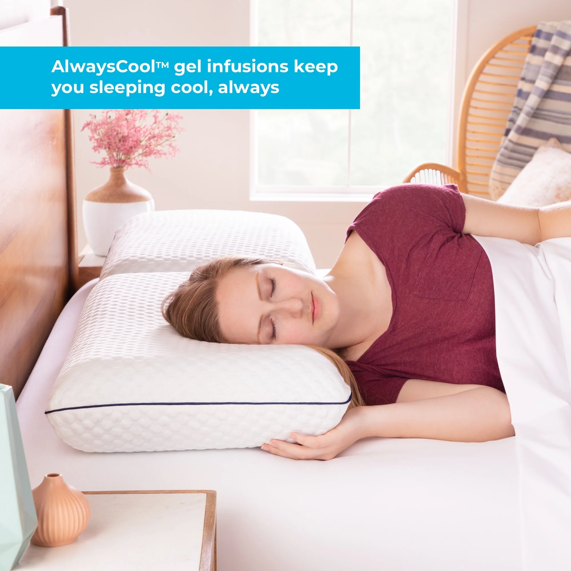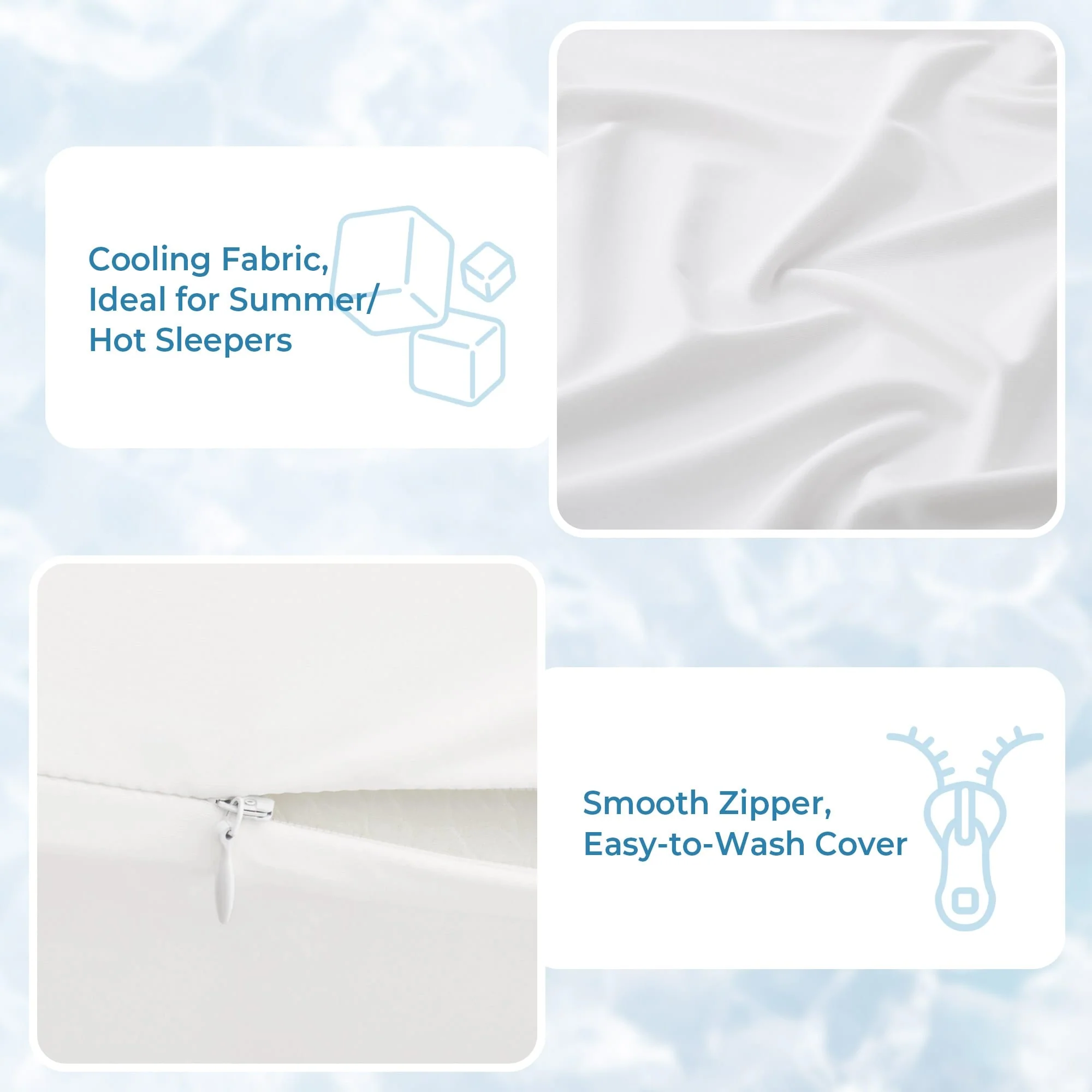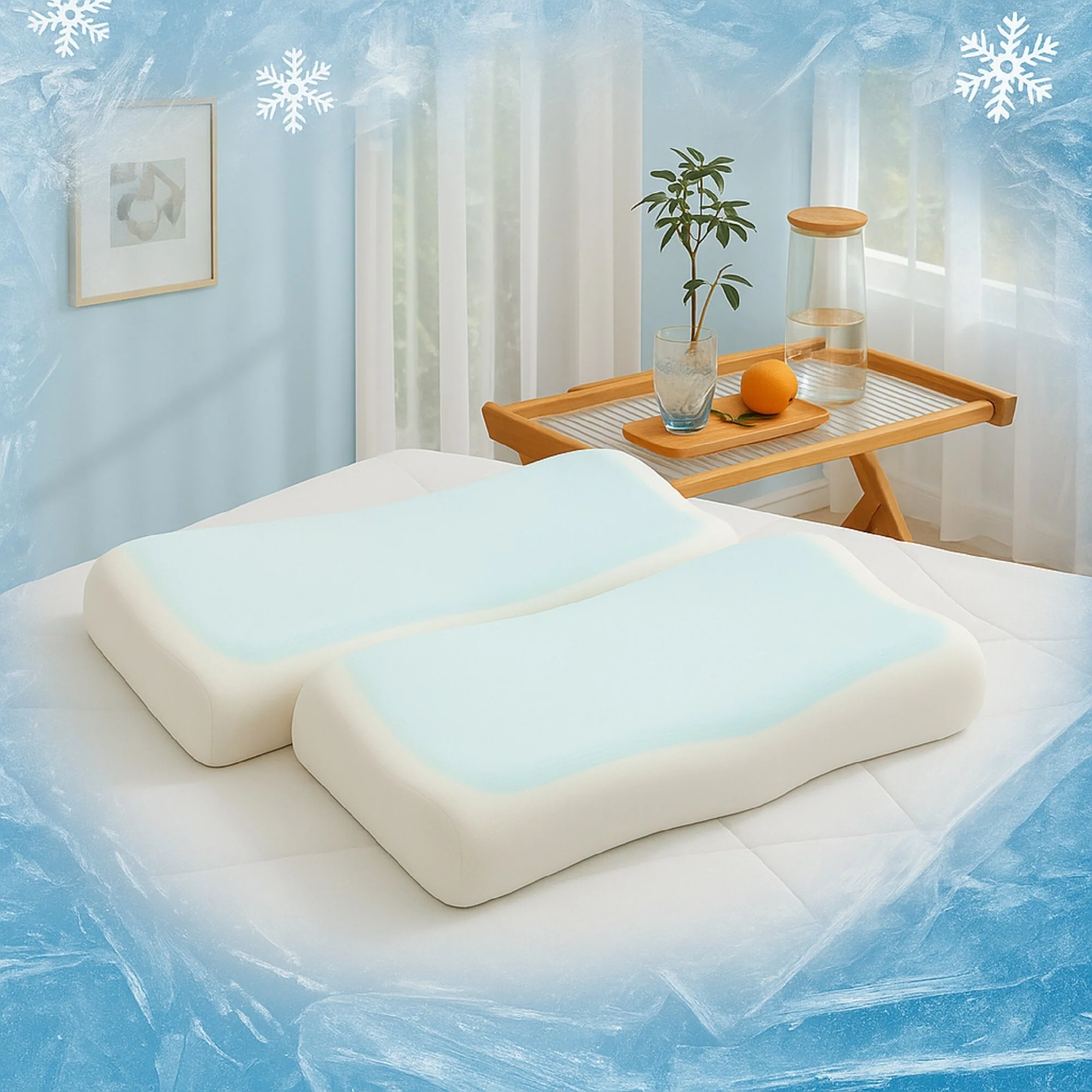 Set of 2 Cooling Breathable Gel-Infused Memory Foam Bed Pillow for Summer, Cool Touch for Hot Sleepers - White