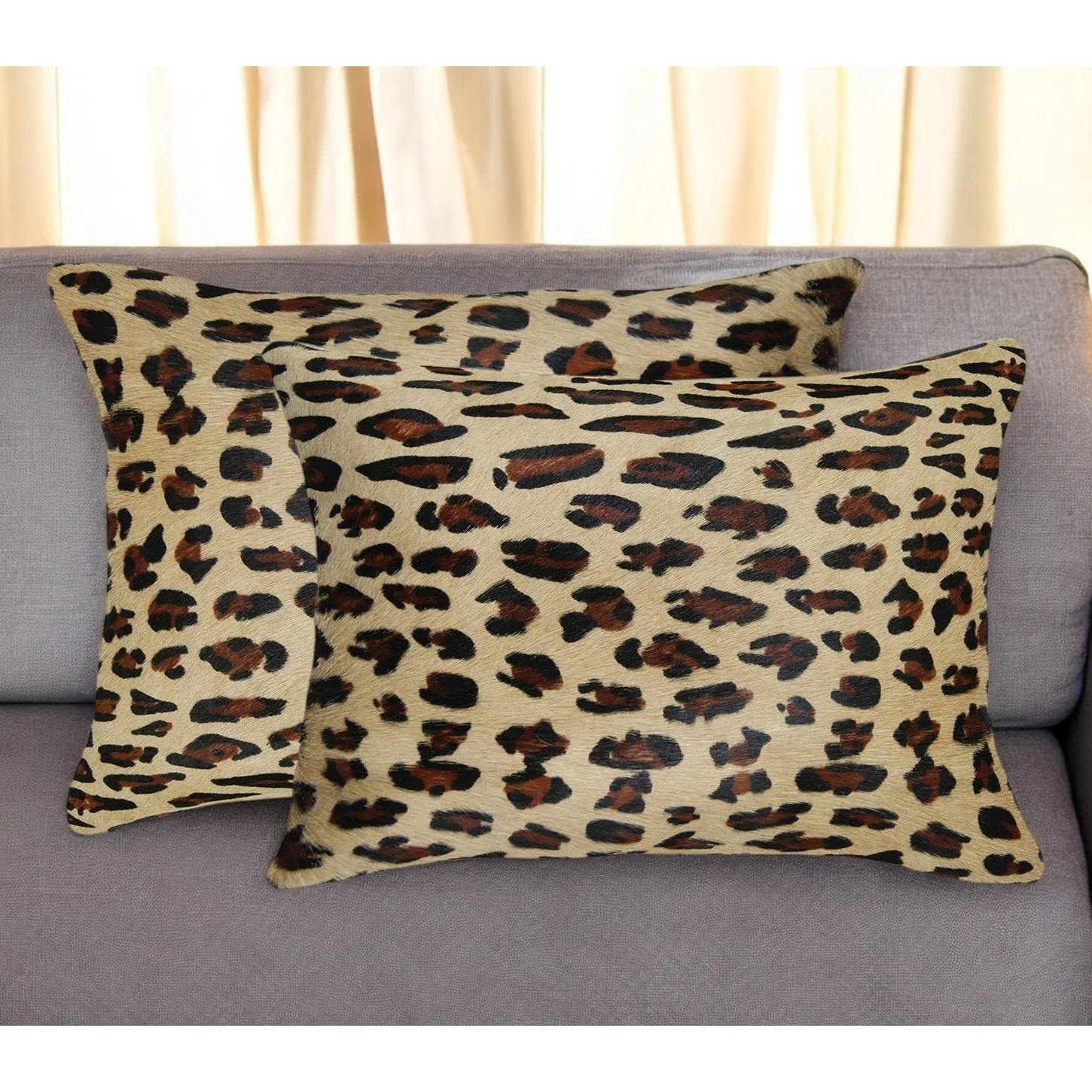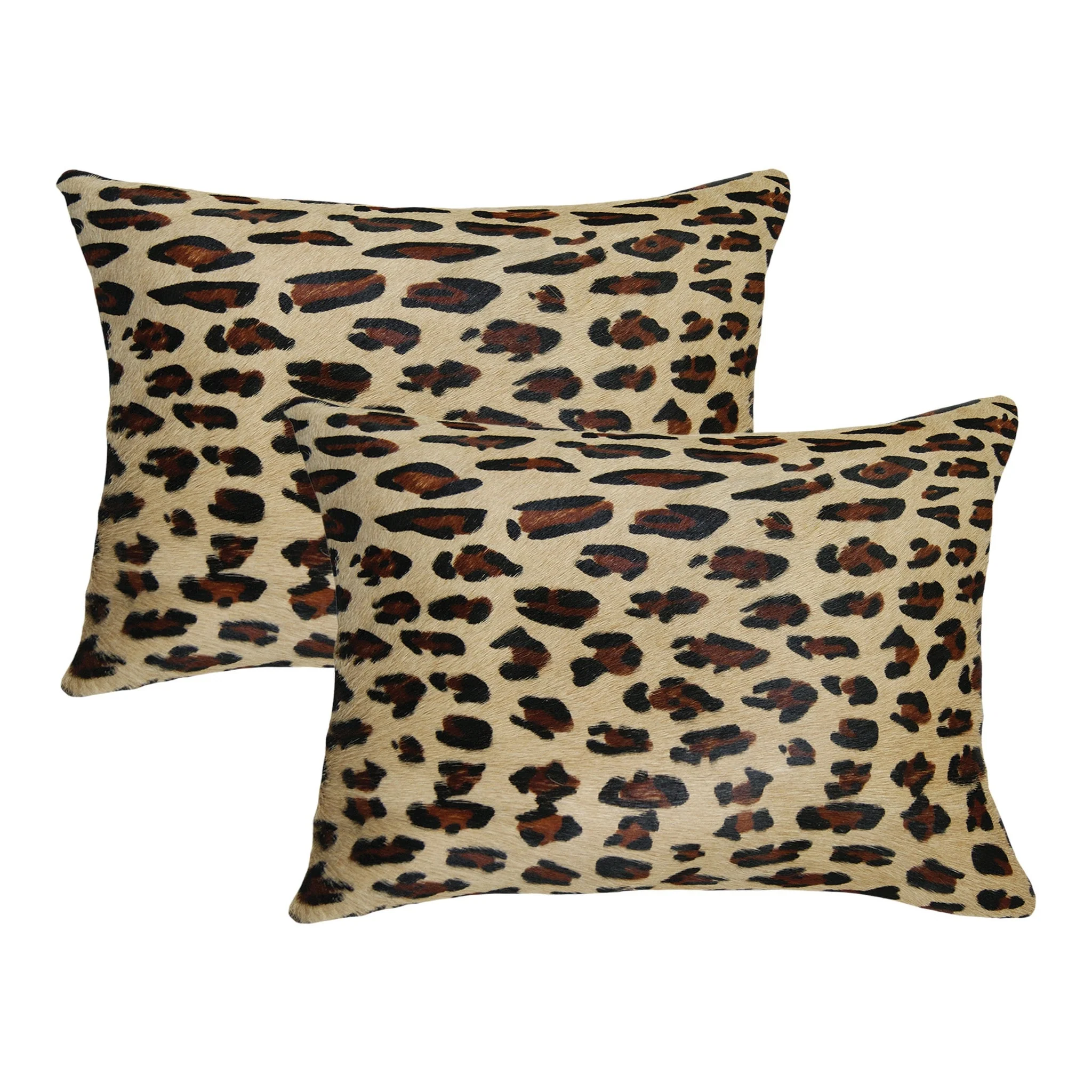 Set of Two 12" X 20" Brown and Black Leopard Cowhide Lumbar Throw Pillows