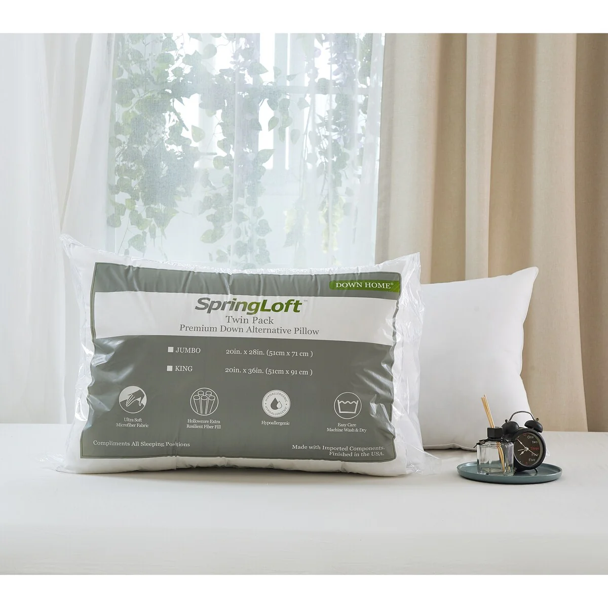 Springloft? Medium Comfort Down Alternative Bed Pillow Twin Pack - White