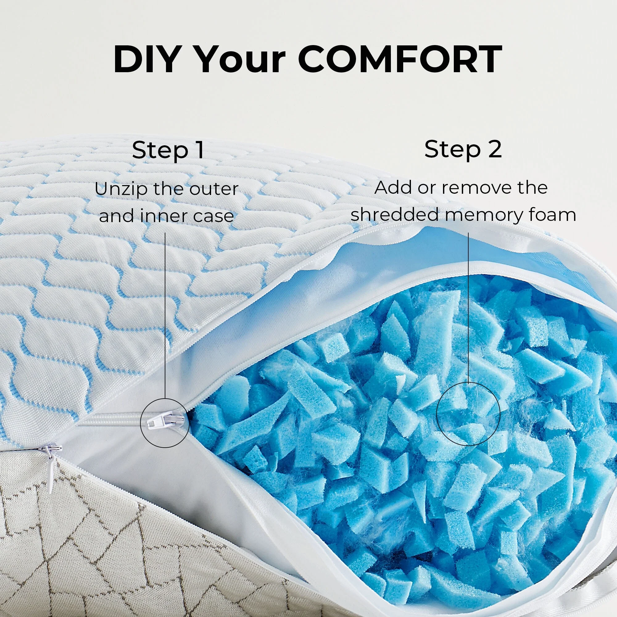2 Pack Shredded Memory Foam Cooling Moisture Pillow, Breathable Cover with Zipper