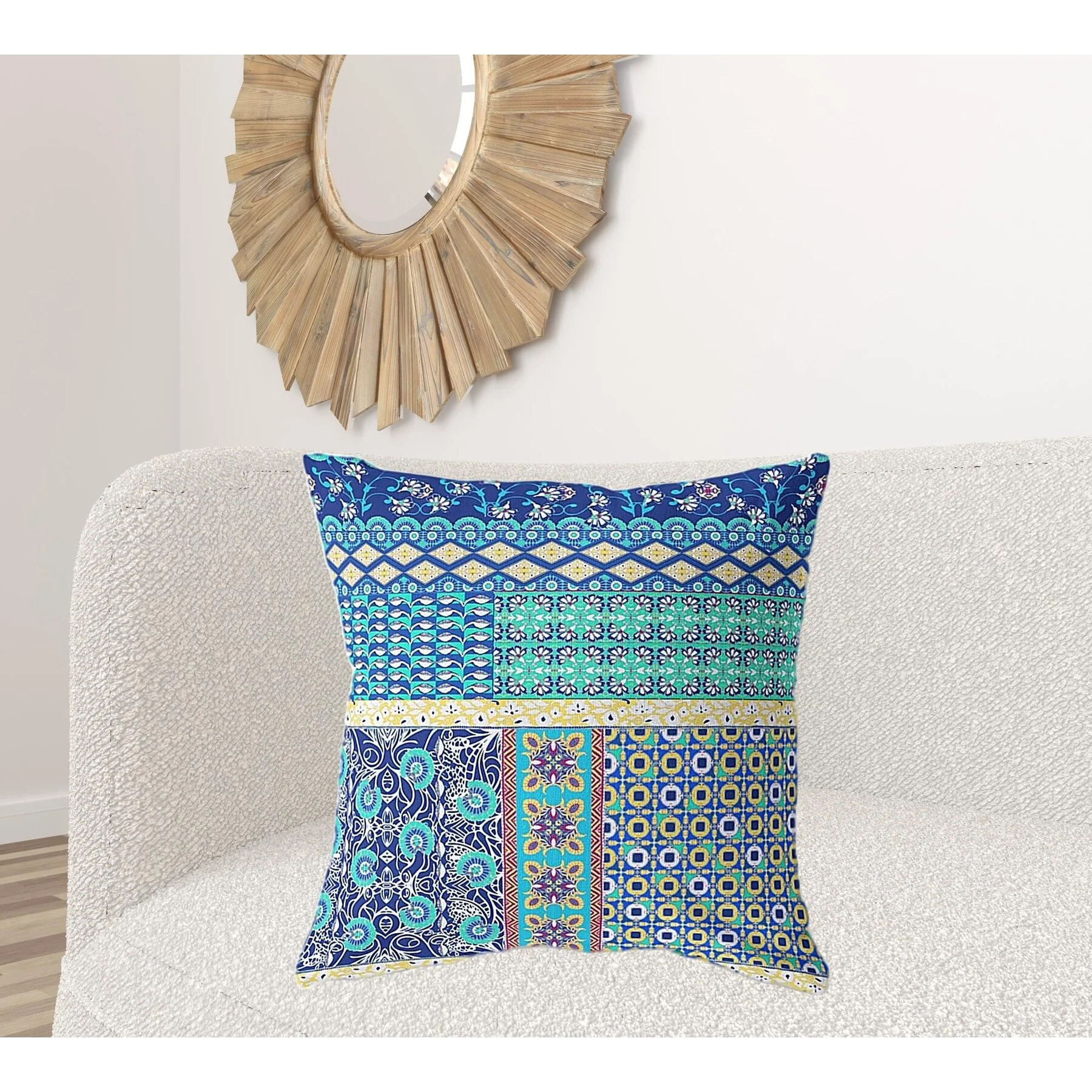 26" Navy Blue Yellow Patch Indoor Outdoor Throw Pillow