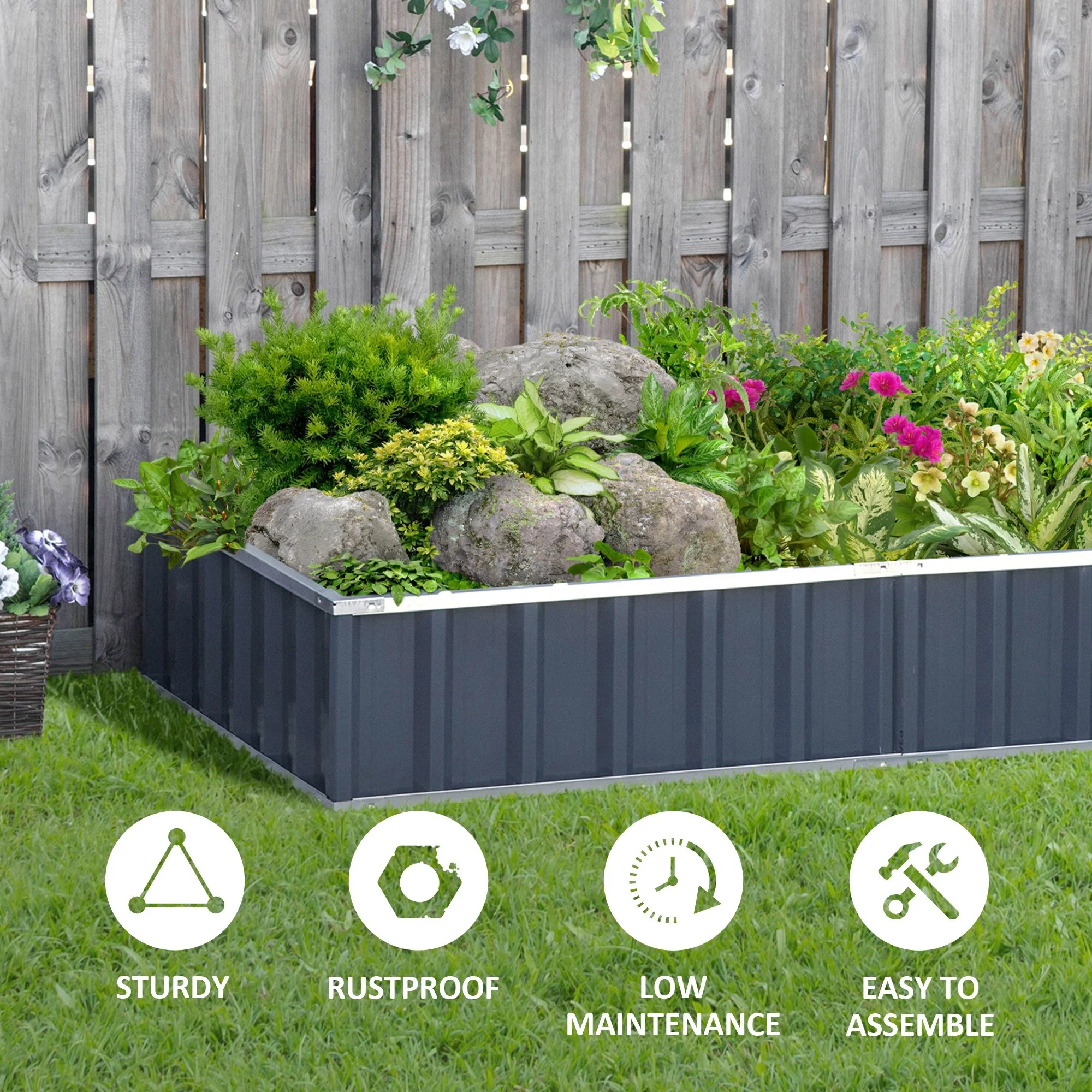Outsunny 2' x 2' x 1' 2-Piece Raised Garden Bed Box with Steel Frame for Vegetables, Flowers, & Herbs, Grey