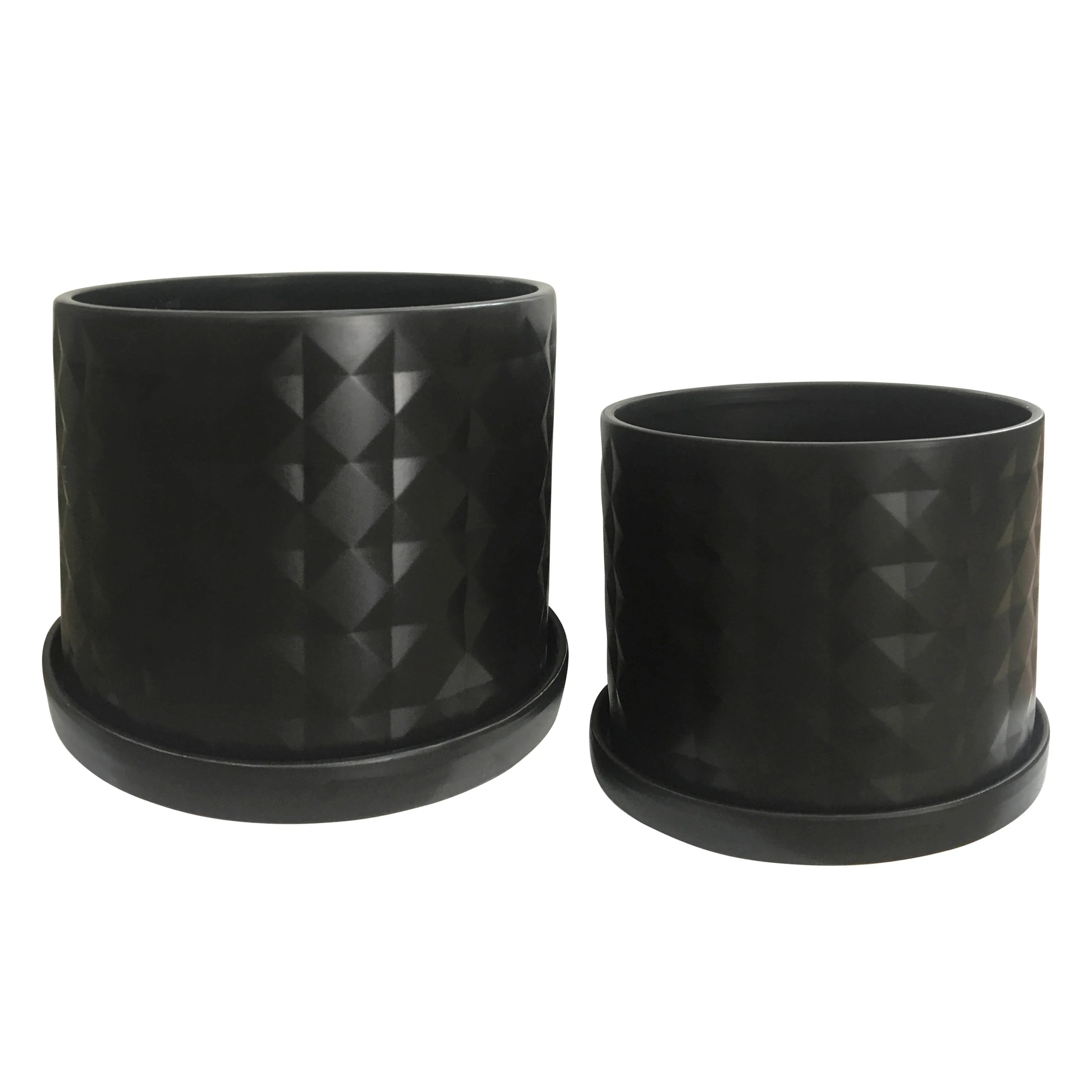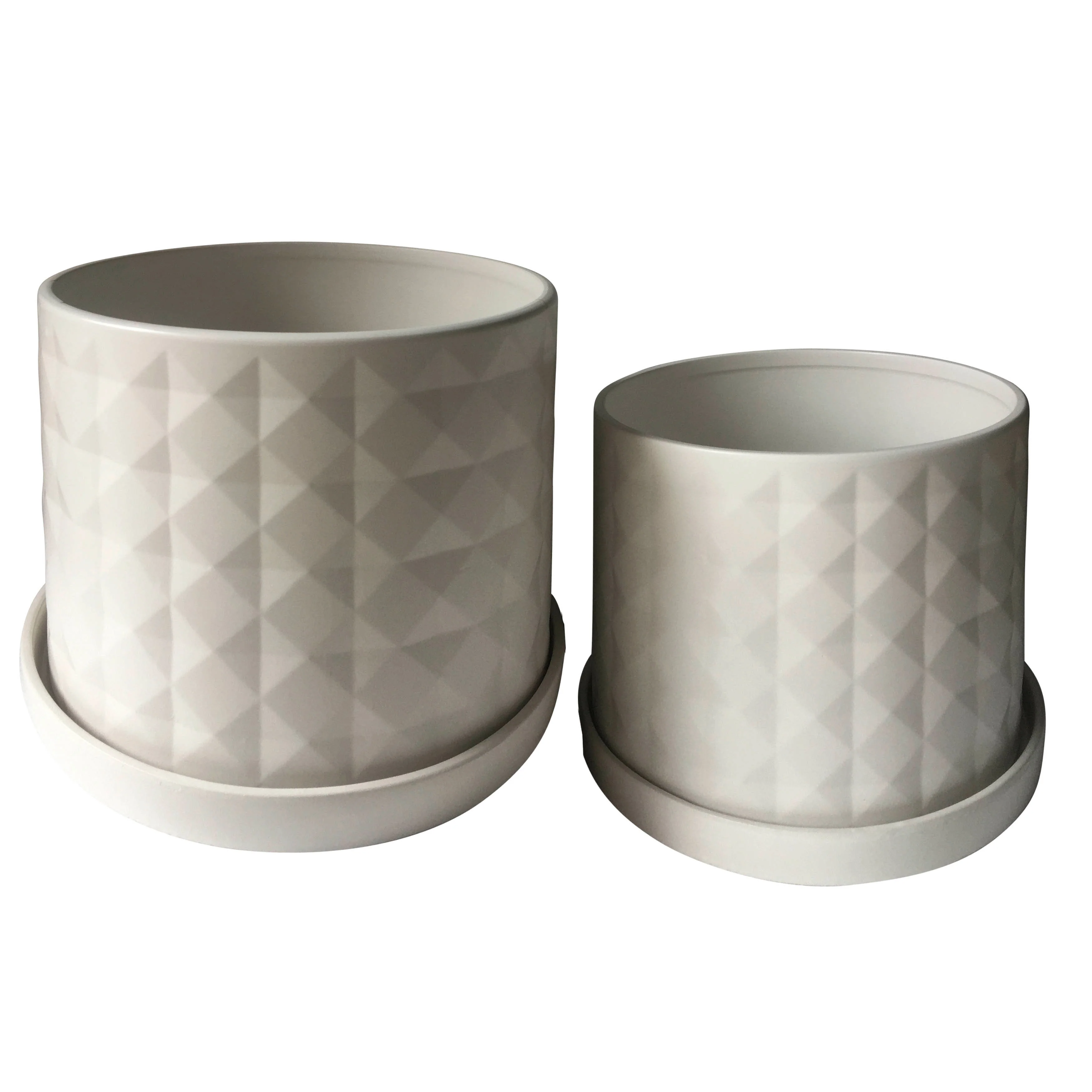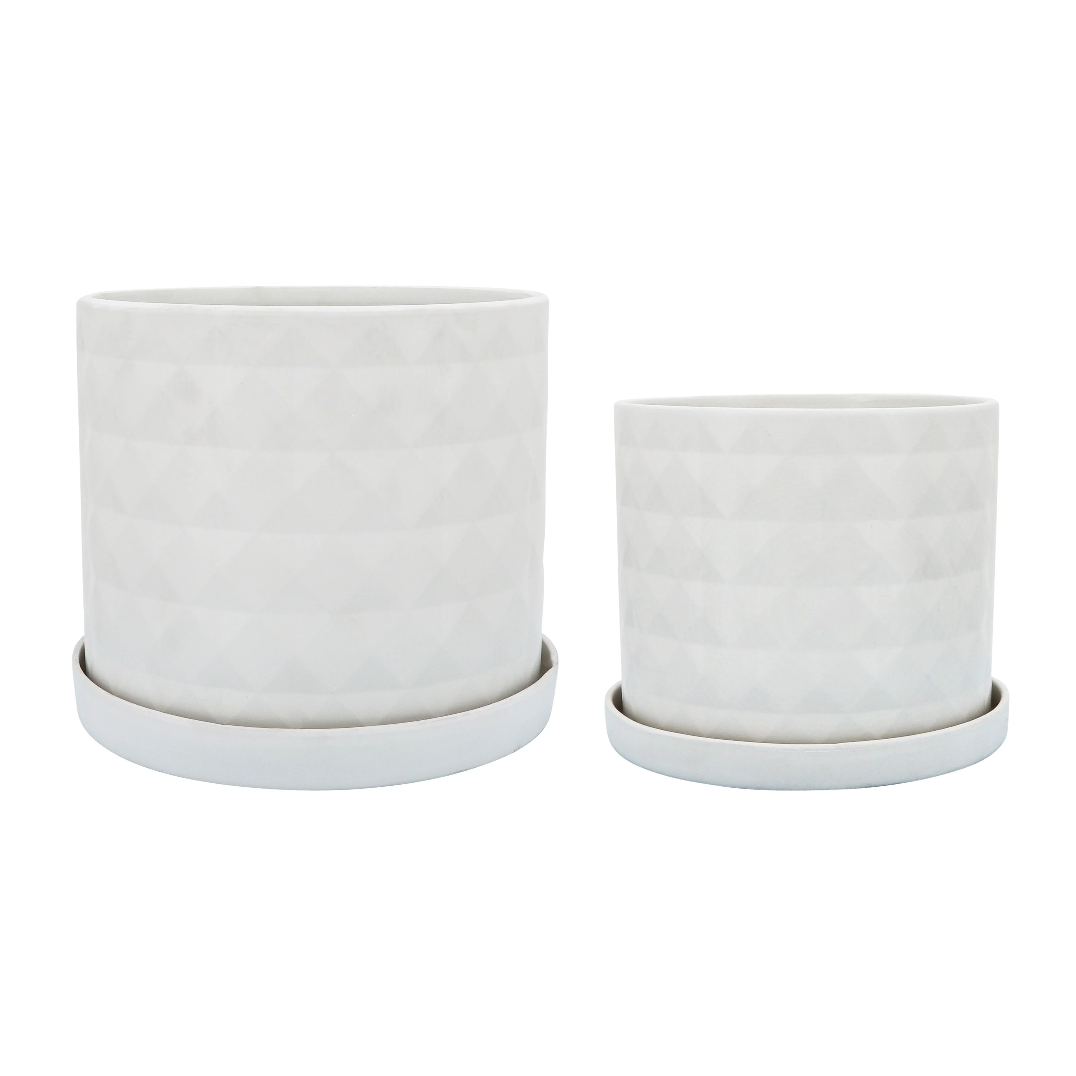 Sagebrook Home Neutral Modern Set of 2 Ceramic Planters with Saucers