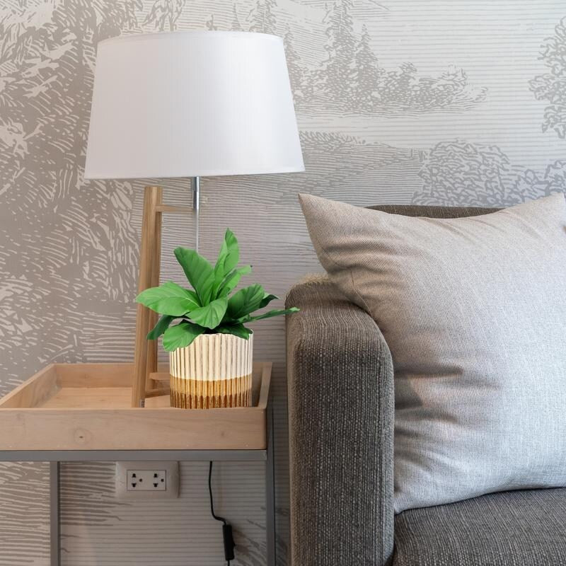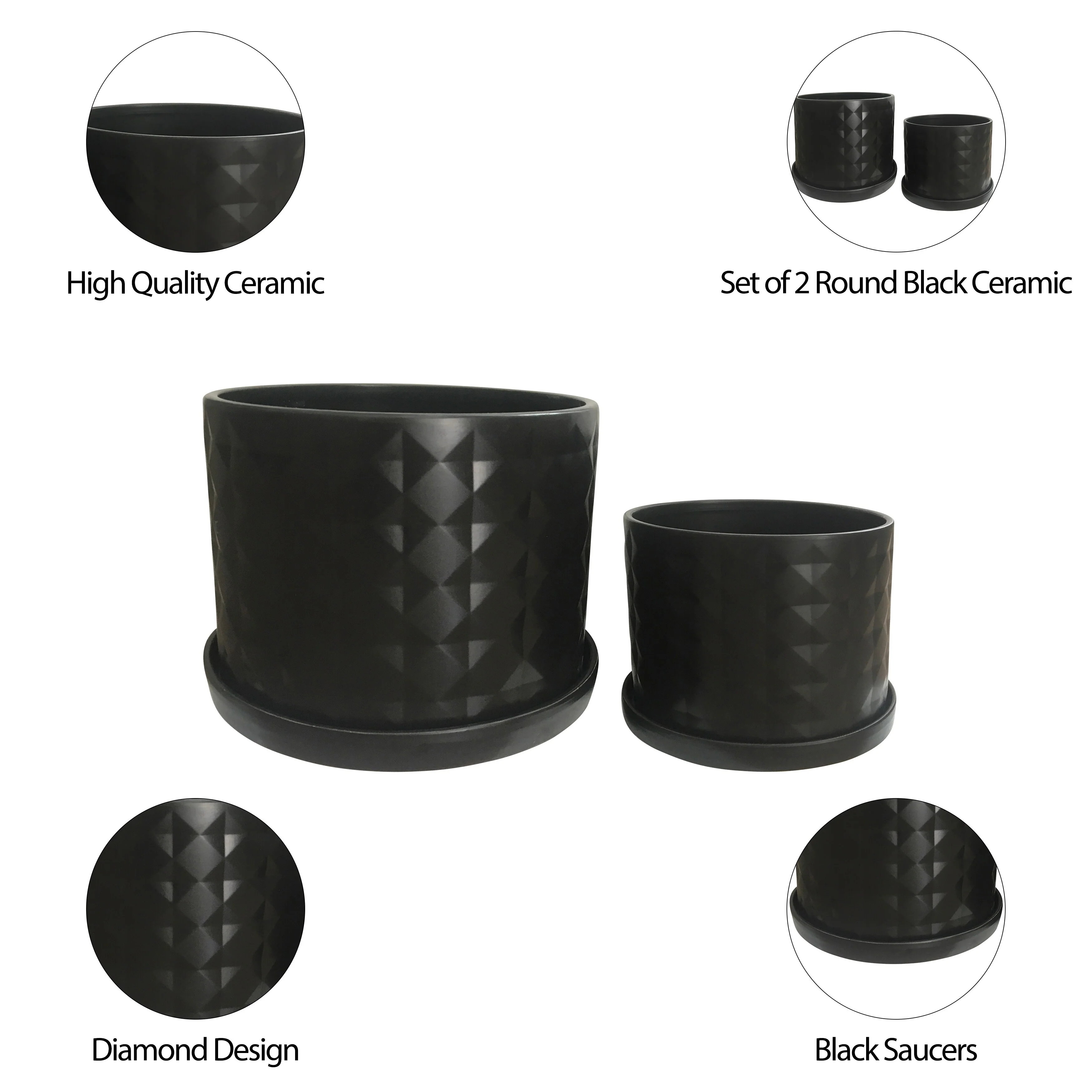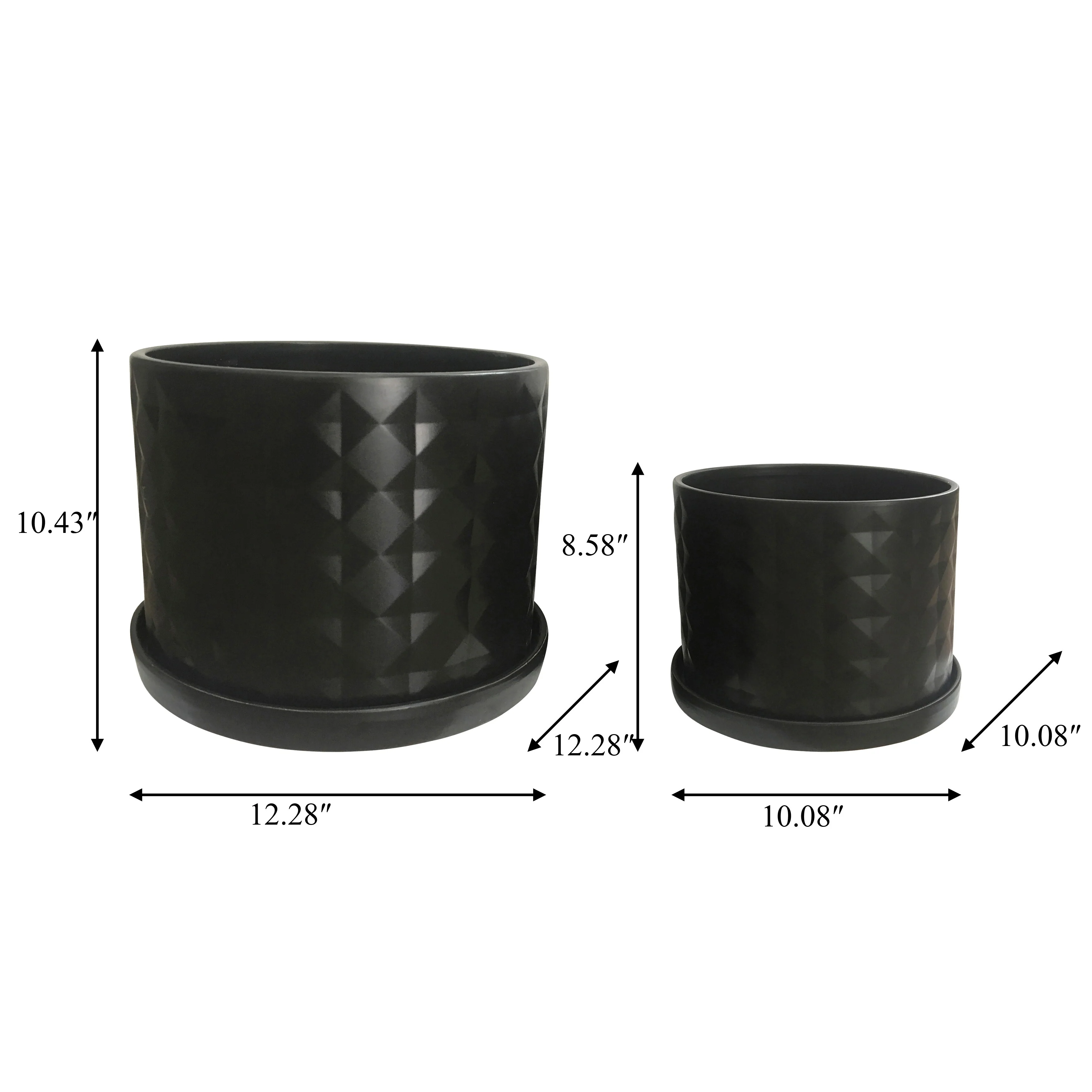 Sagebrook Home Neutral Modern Set of 2 Ceramic Planters with Saucers