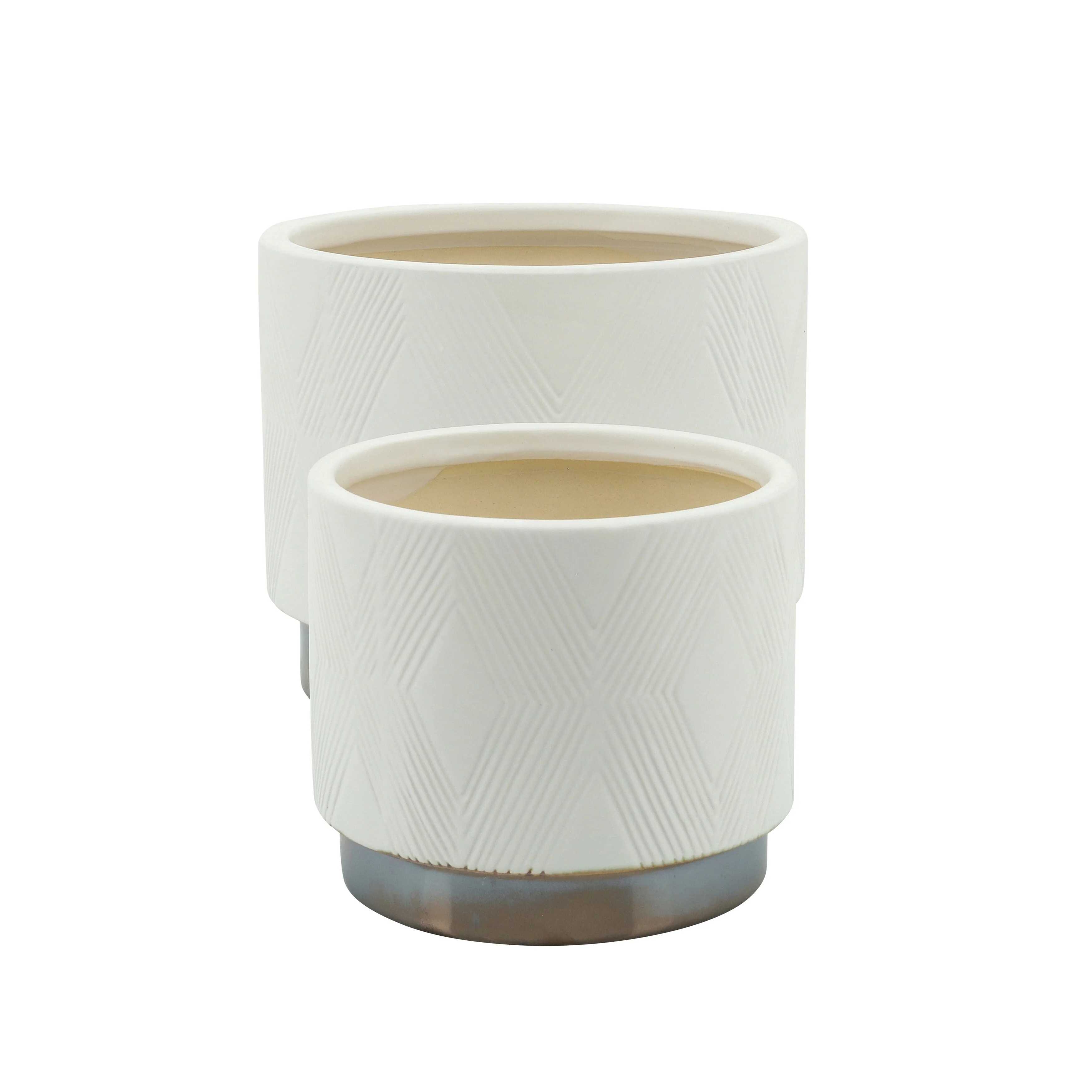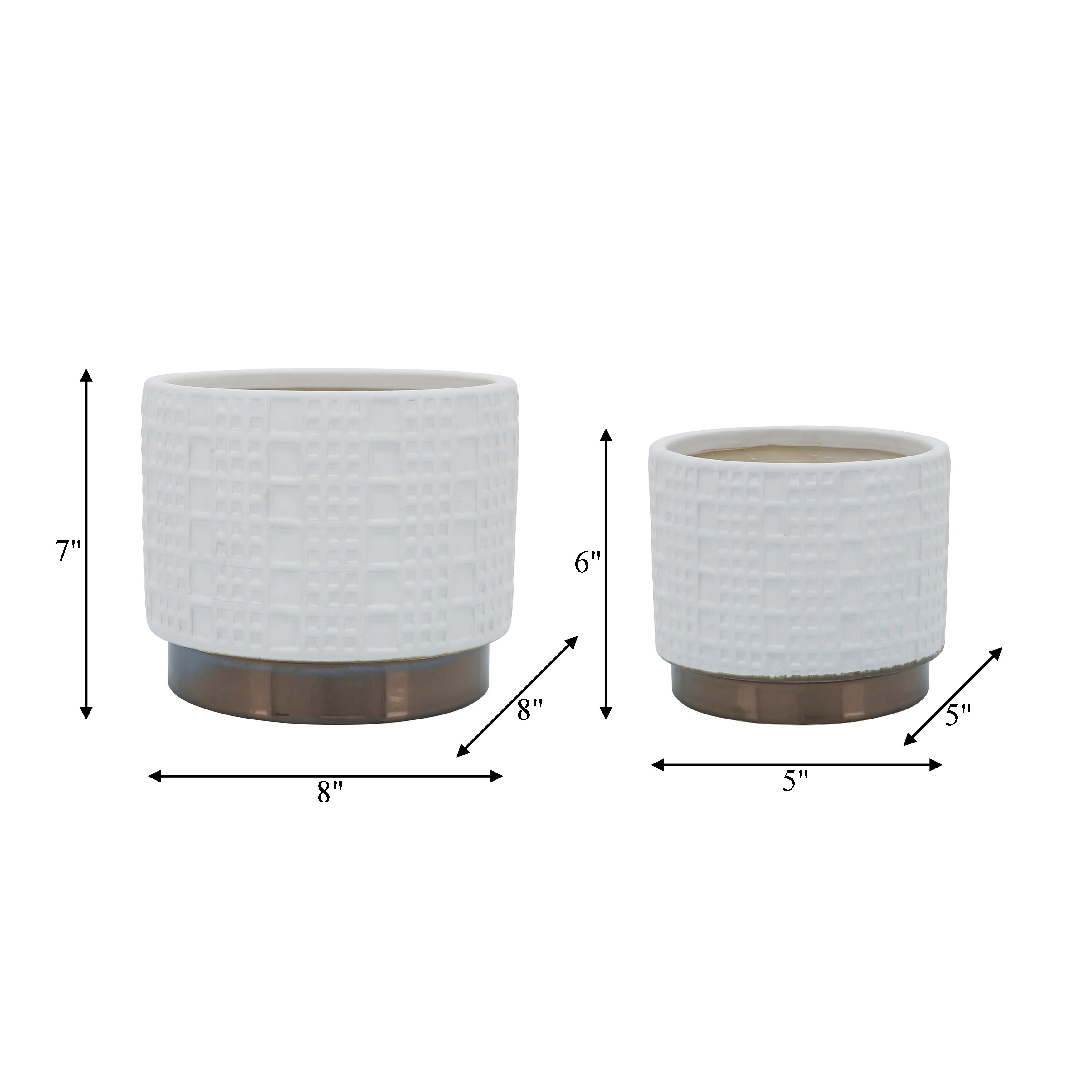 Sagebrook Home Modern Neutral Ceramic Planter Set of 2 - 8"x8"x7"
