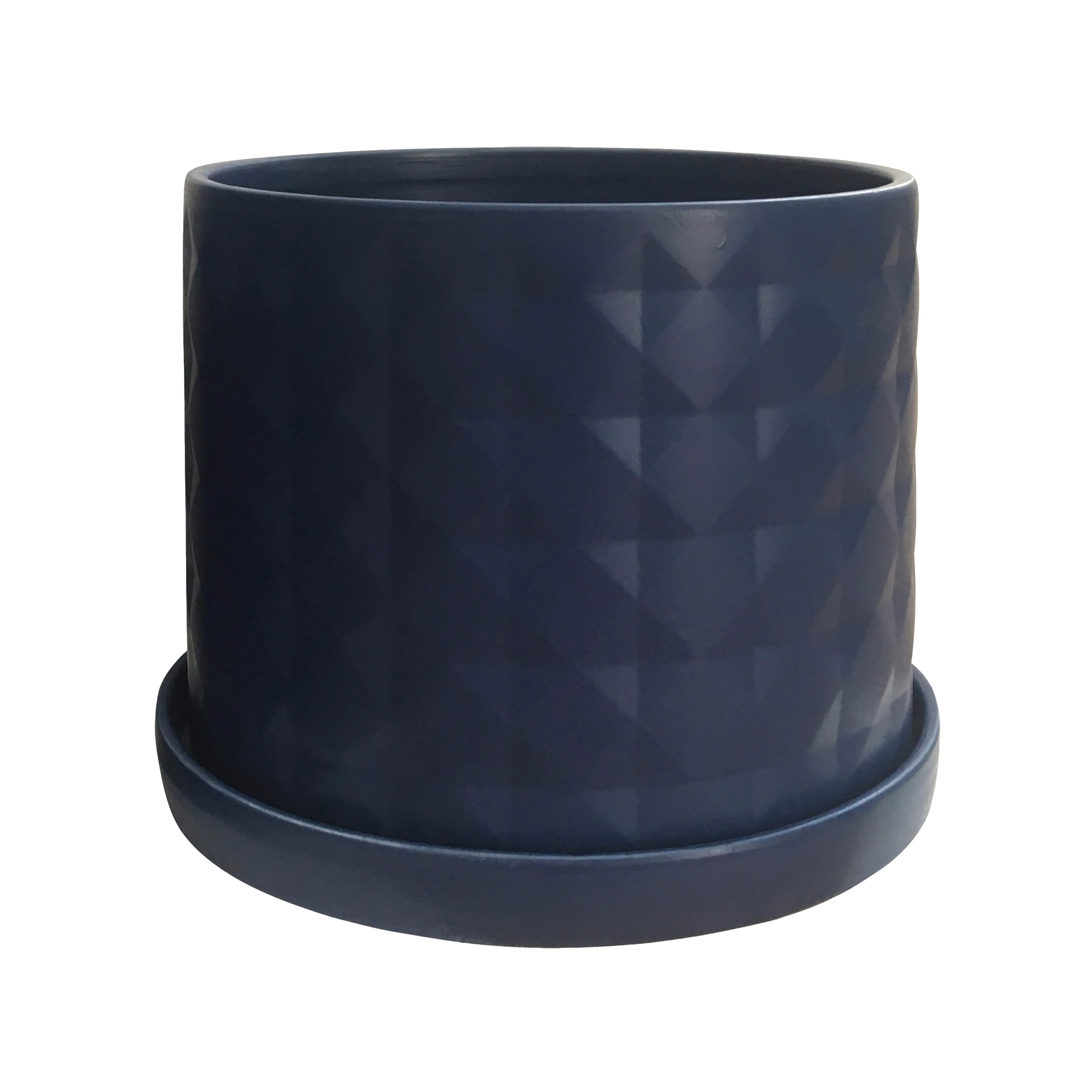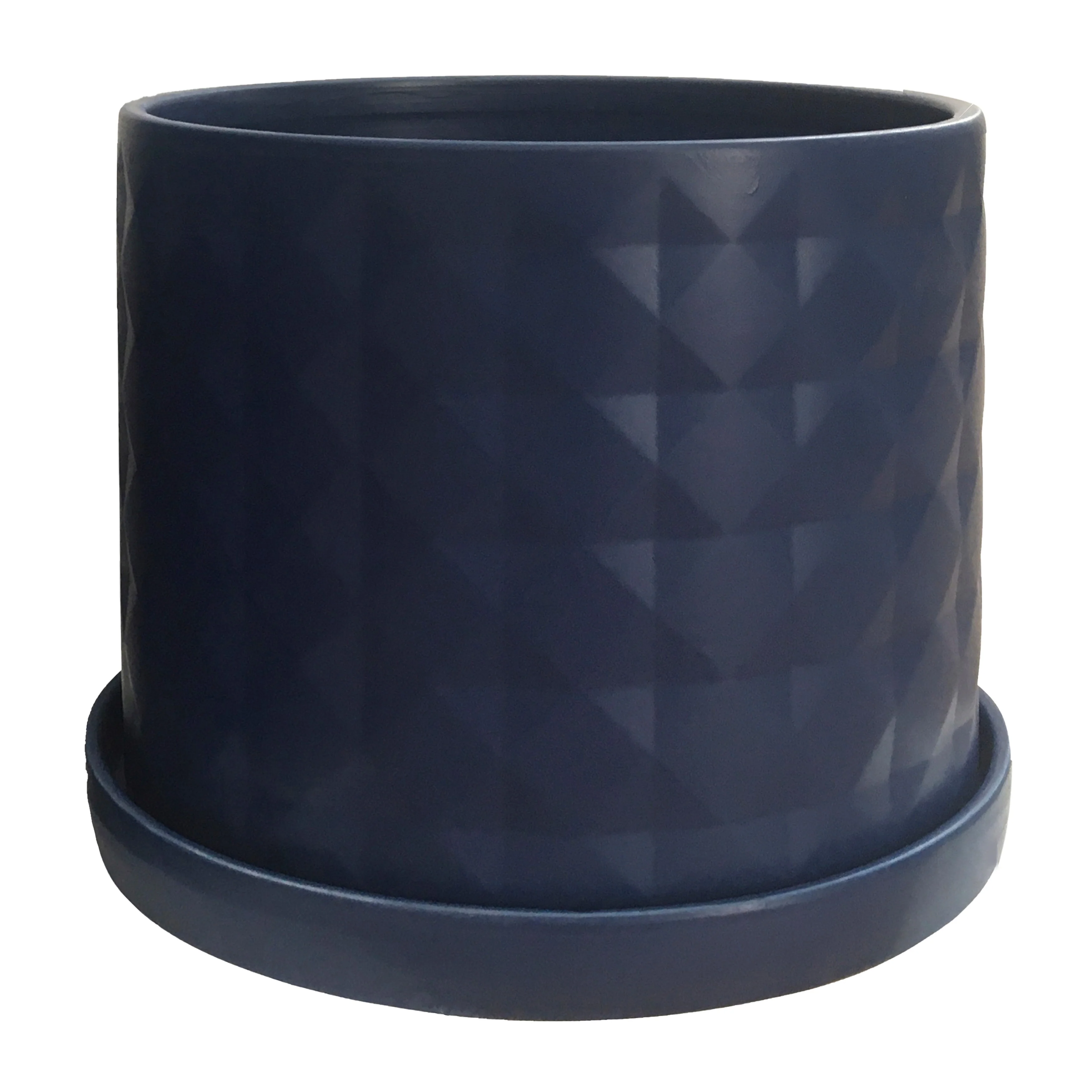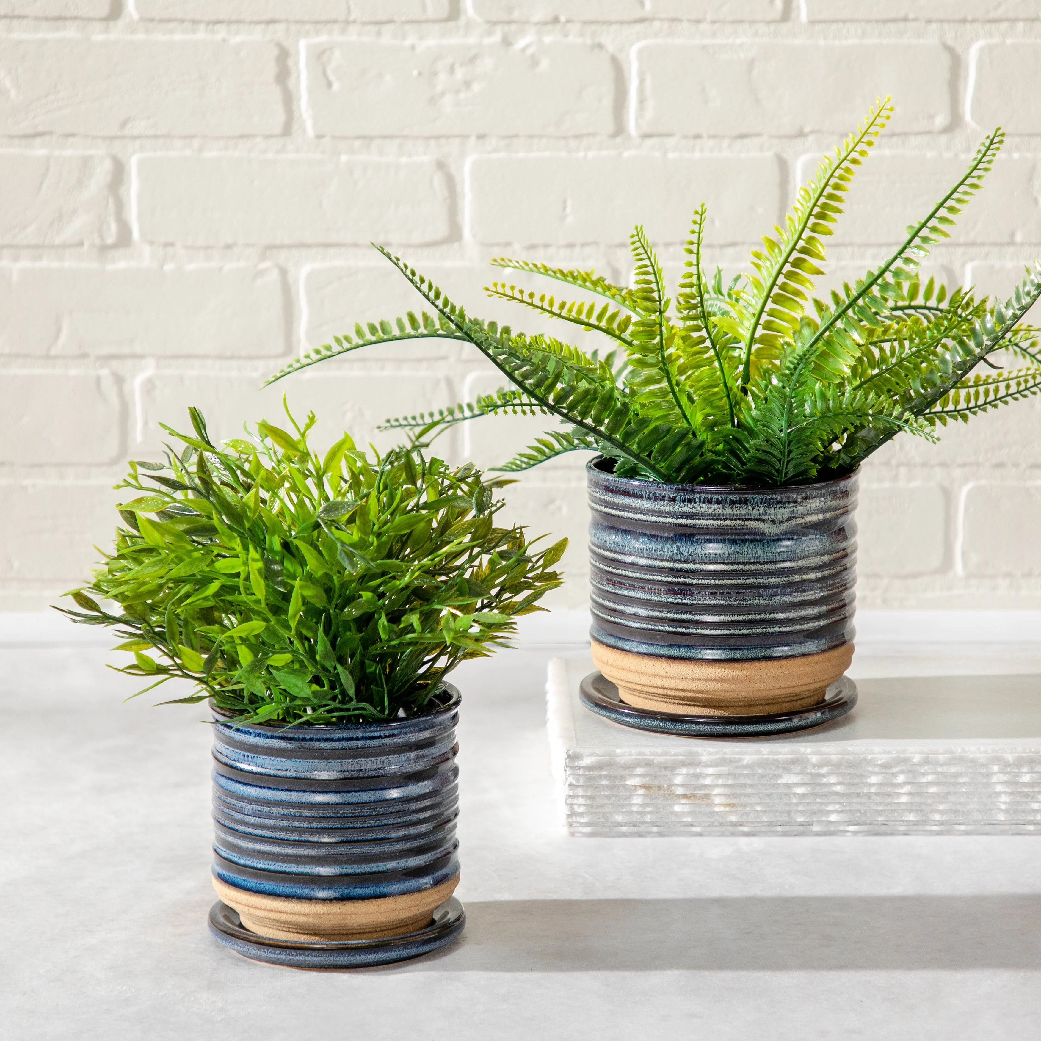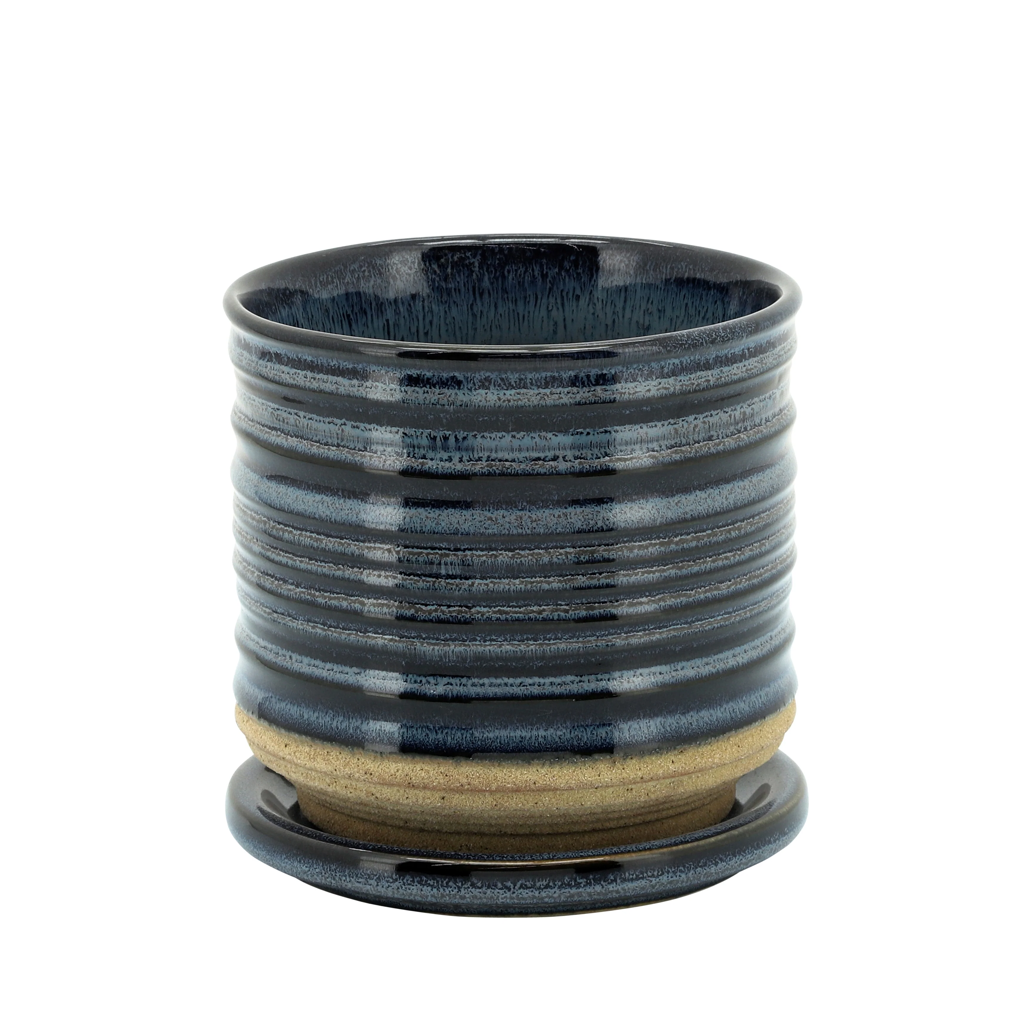 Sagebrook Home 5" Planter Ceramic Blue Planter with Contemporary Textured Ridged Design Indoor or Outdoor - 5" x 5" x 5"