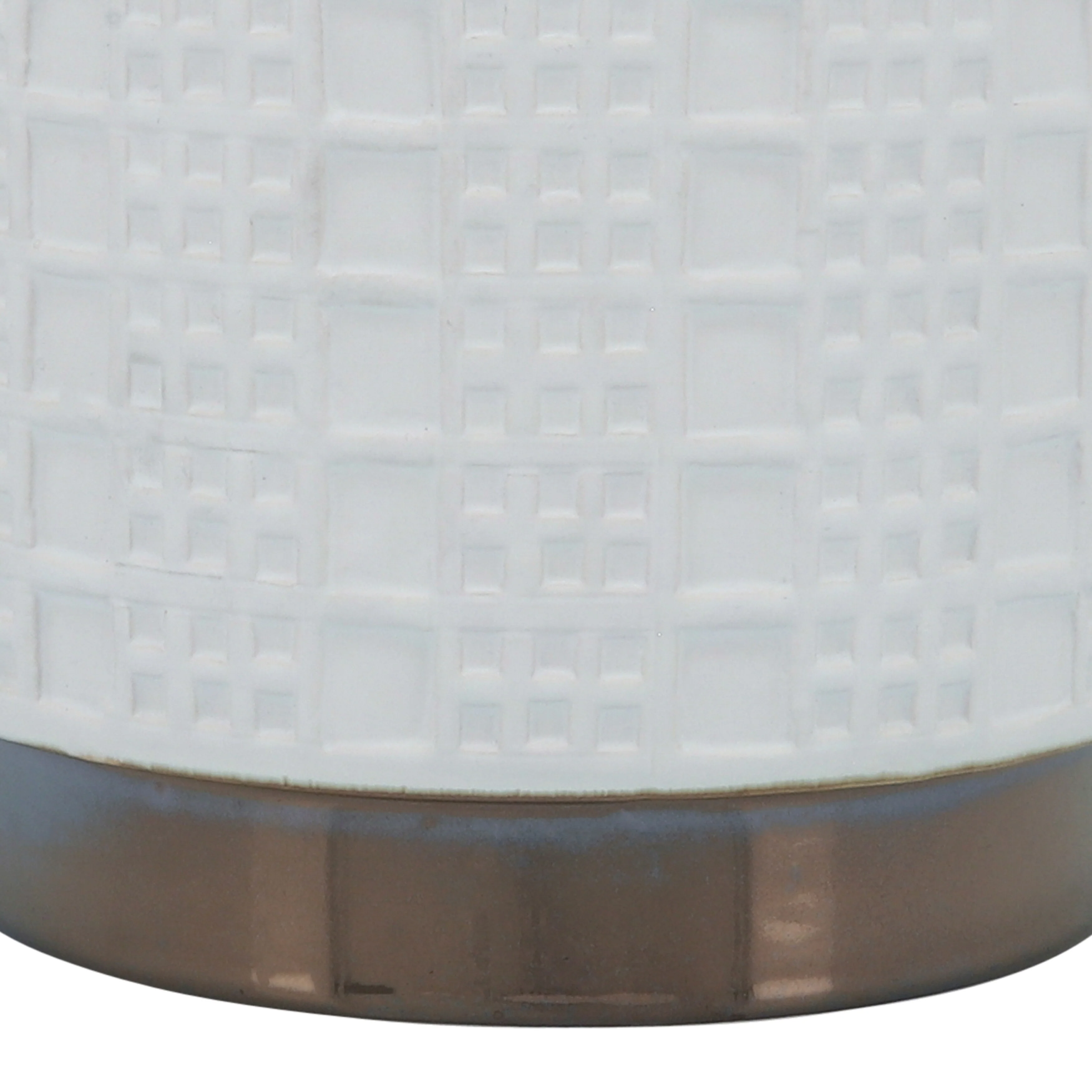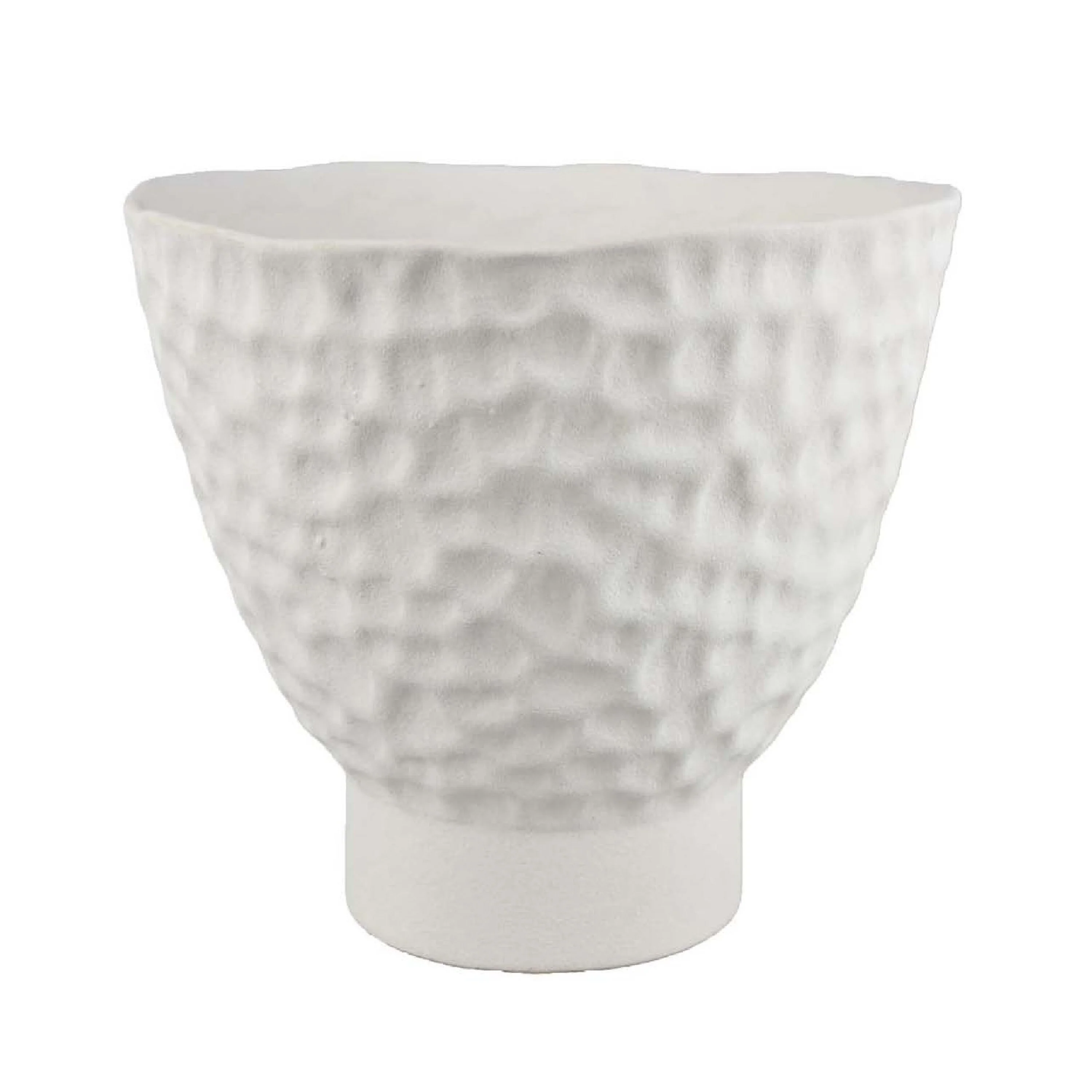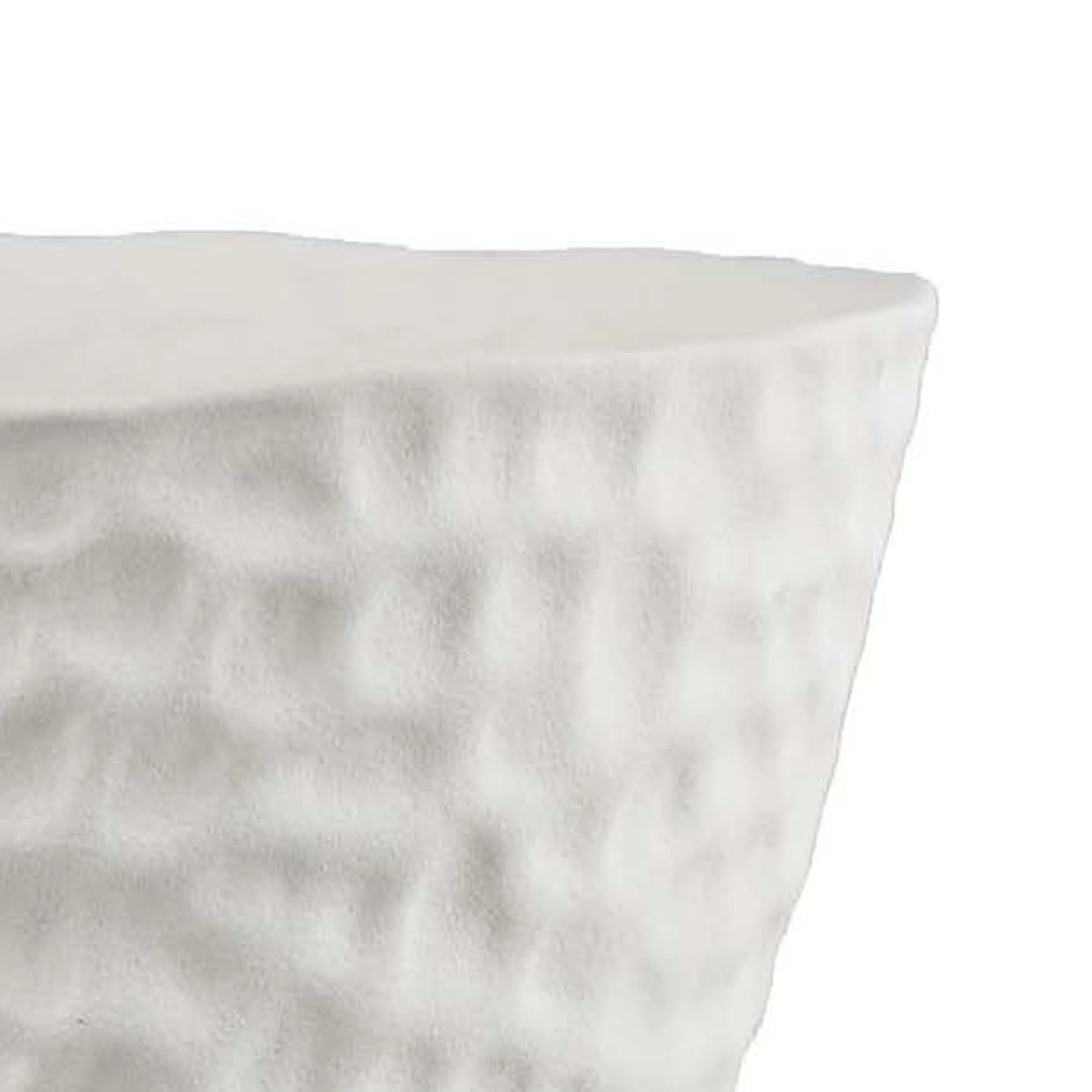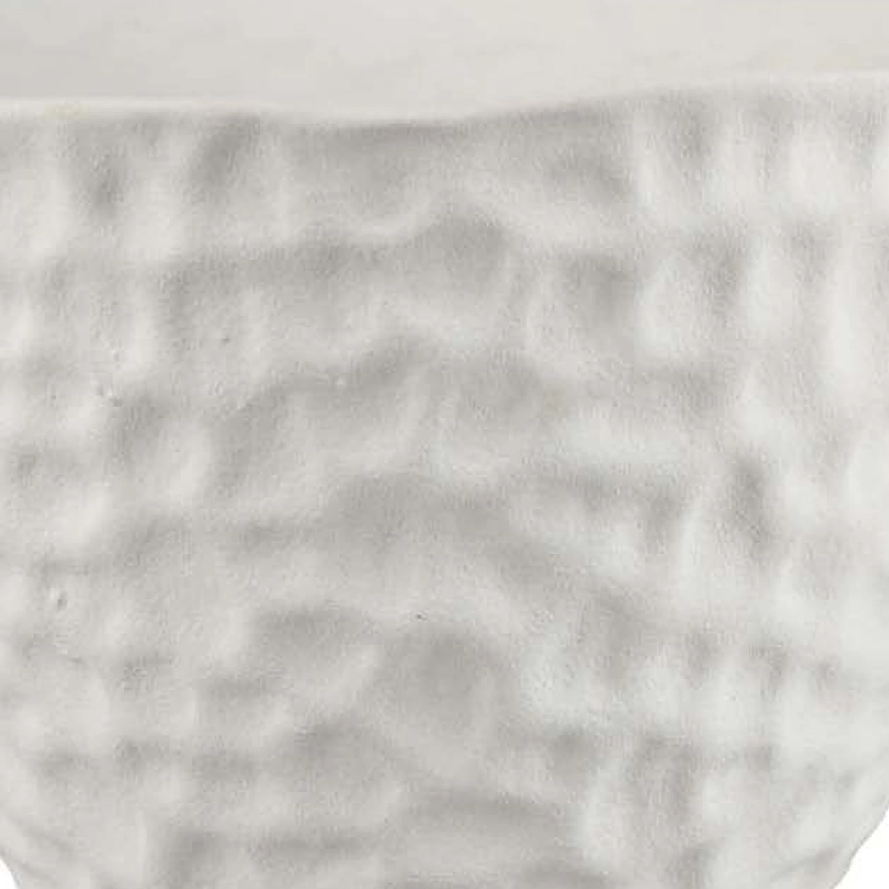 Decorative Bowl Shaped Planter, Hammered White Ceramic 12 Inch