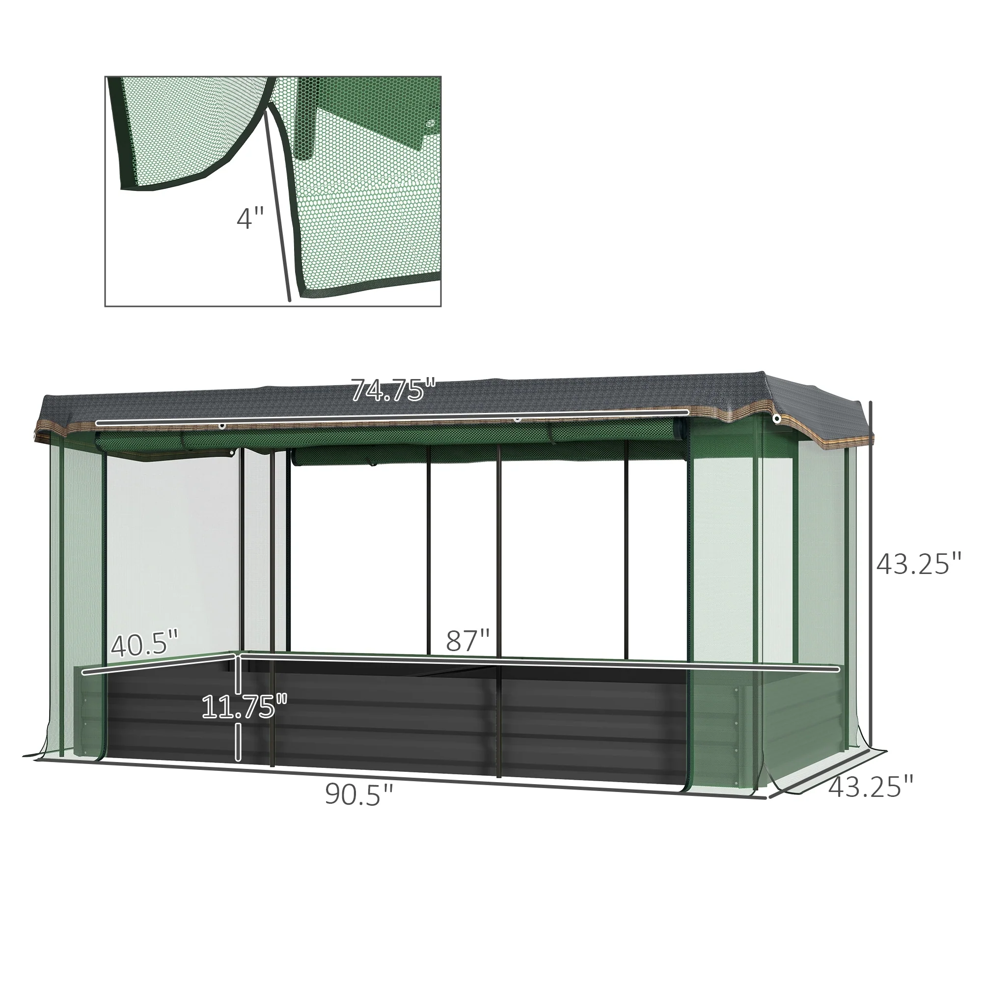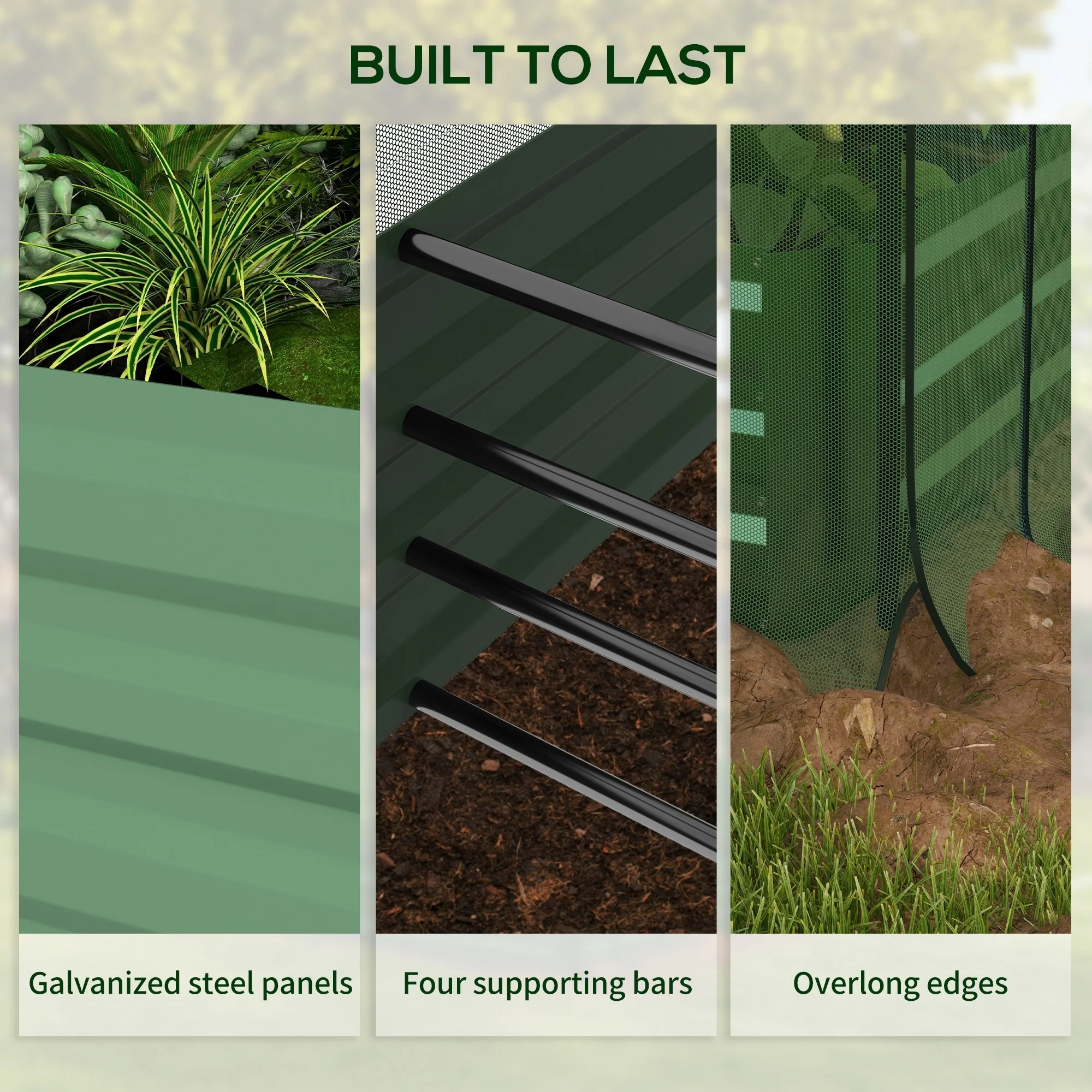 Outsunny Galvanized Raised Garden Bed with Crop Cage Plant Protection Net and Shade Cloth, Metal Planter Box