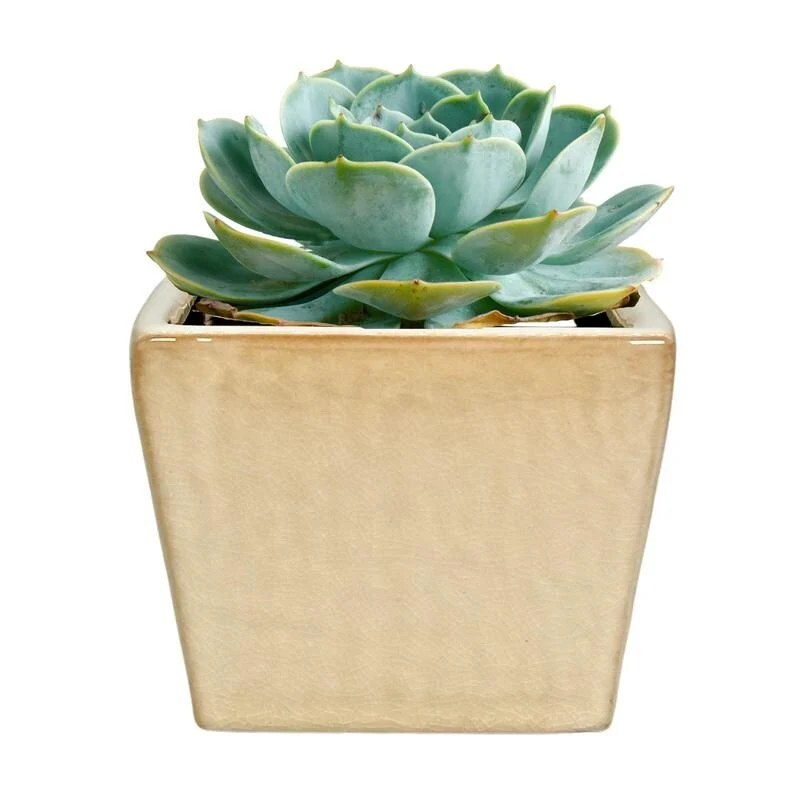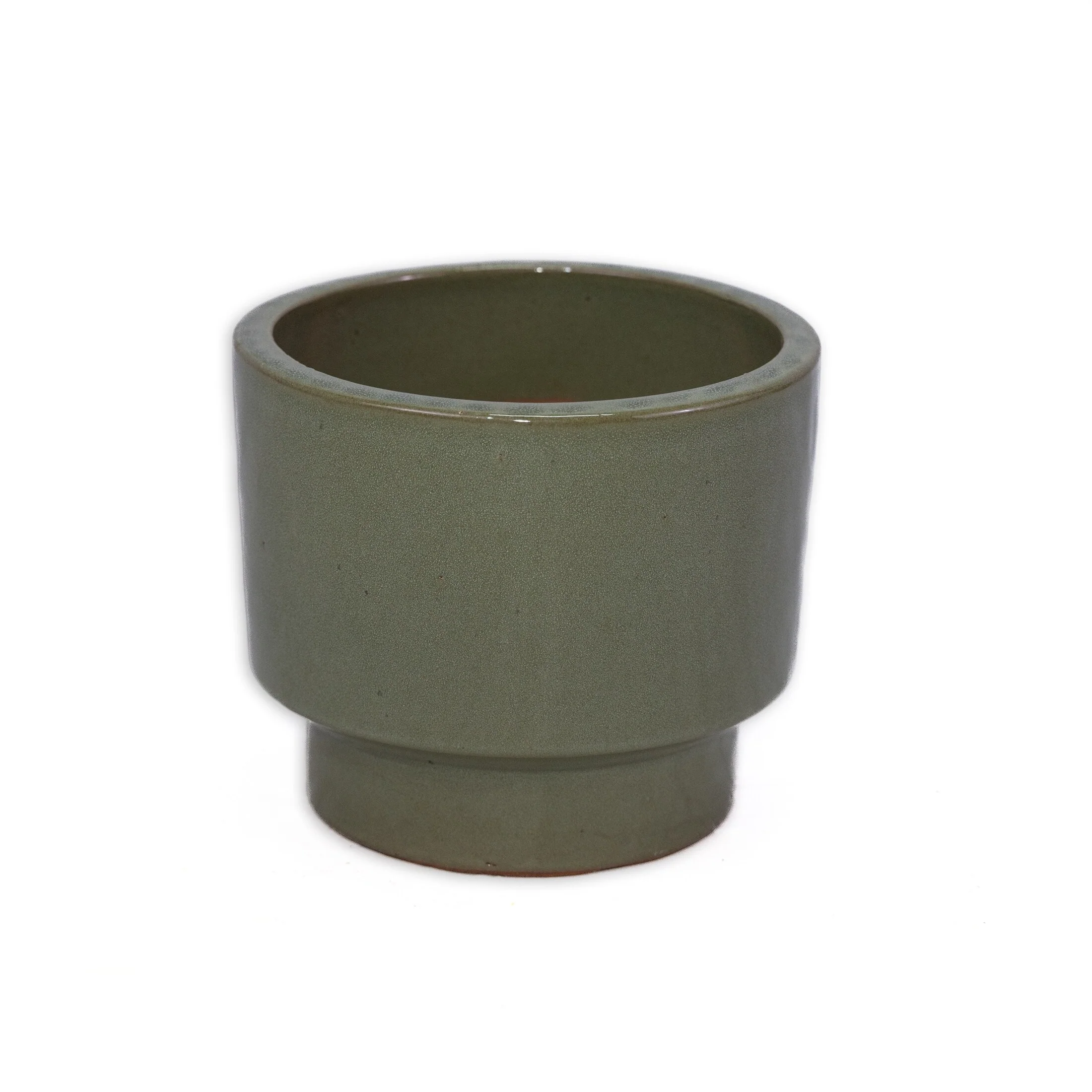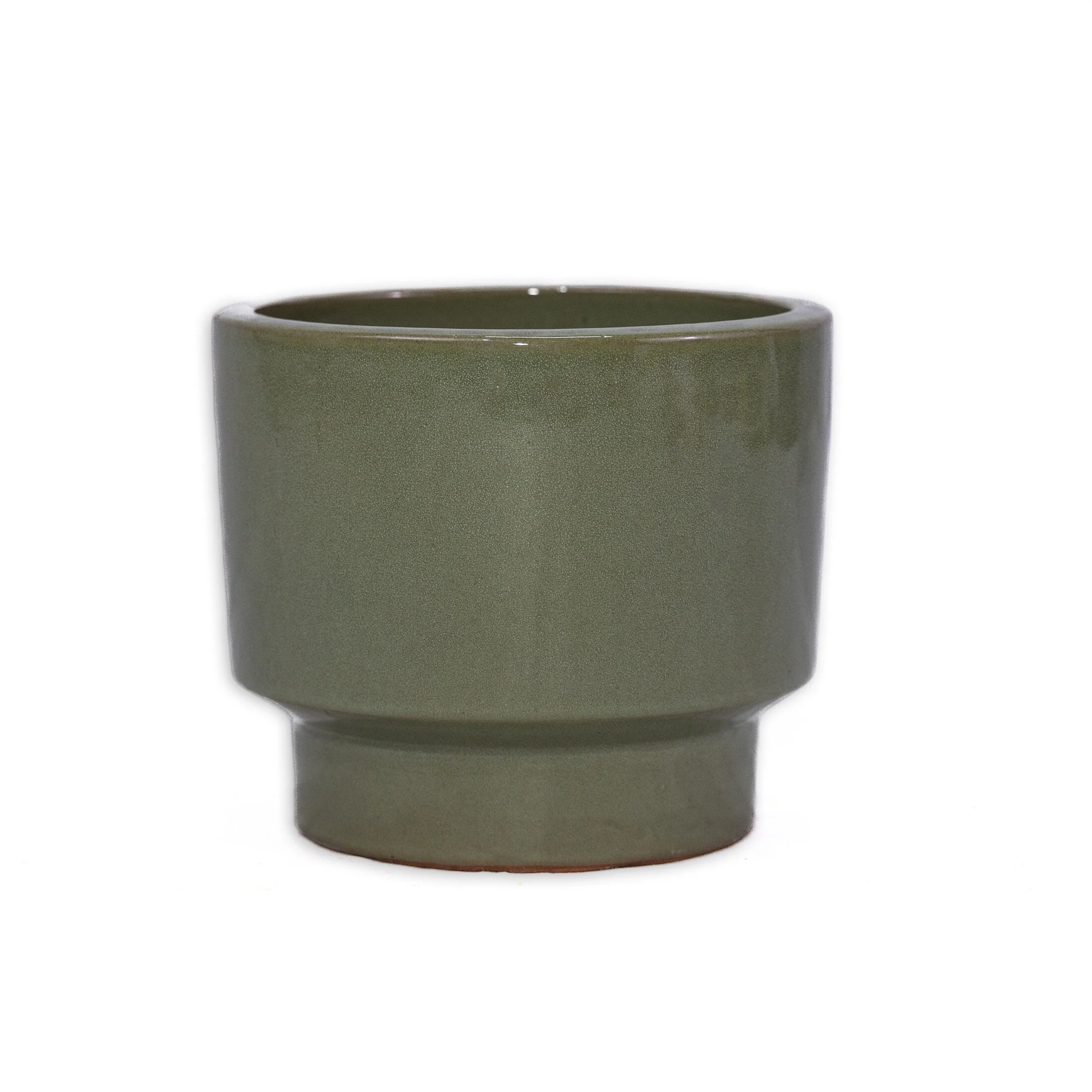 Modern Antique Green Ceramic Planter Set 15" Square Thick Outdoor Pots with Drainage Hole
