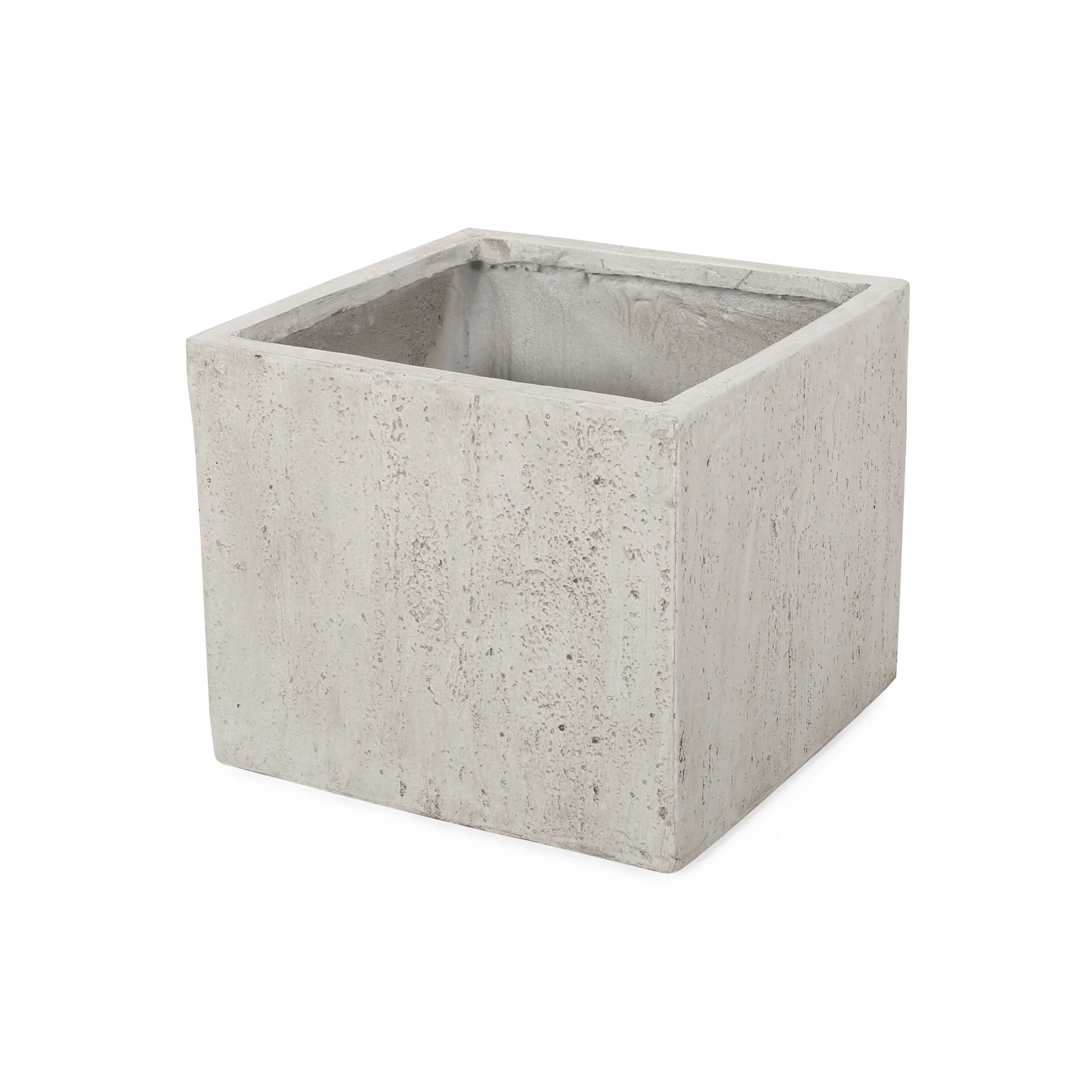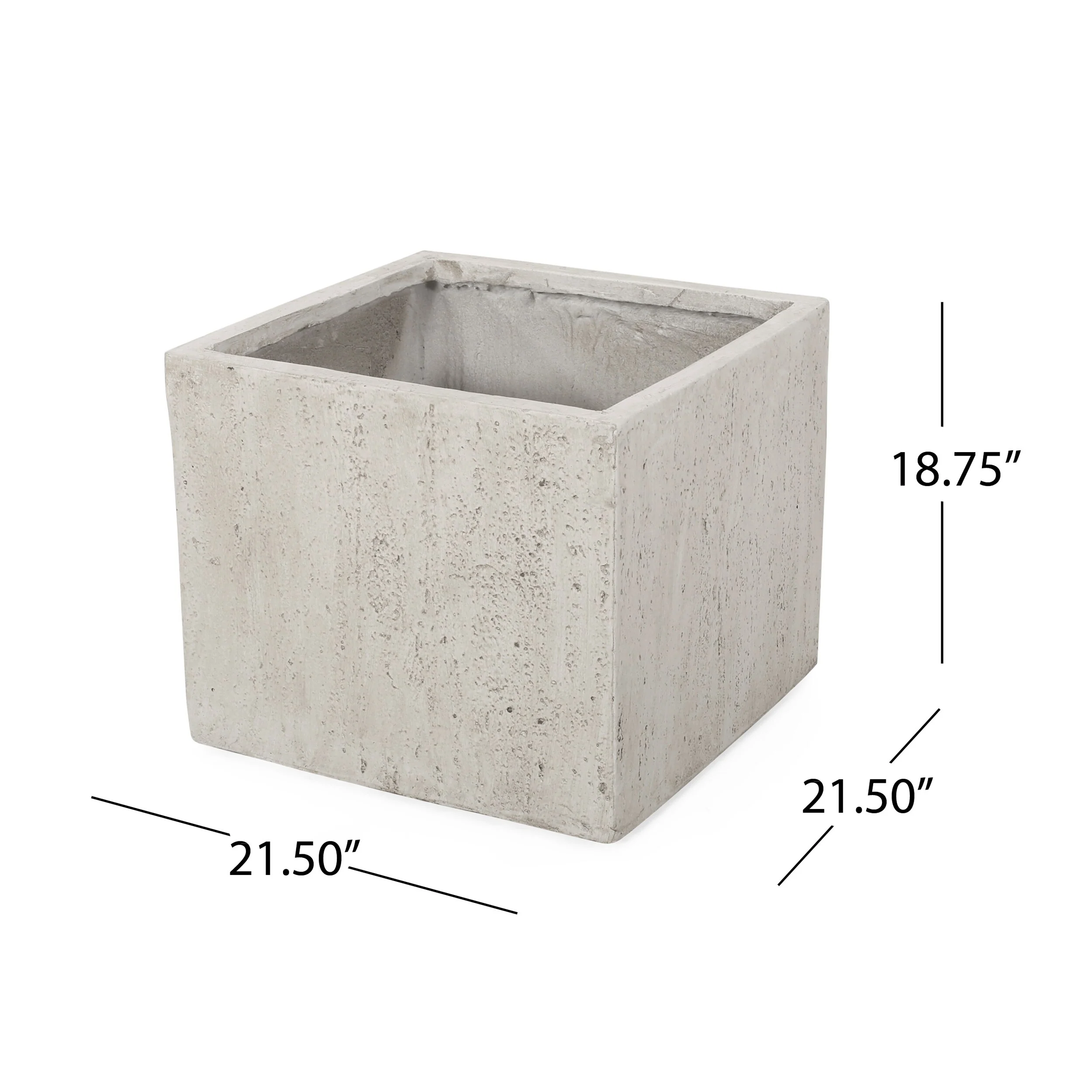 "ELLA MGO L 22 White Magnesium Oxide Planter 21.5x21.5x18.75 Inch Square Outdoor Lightweight Concrete Garden Decor