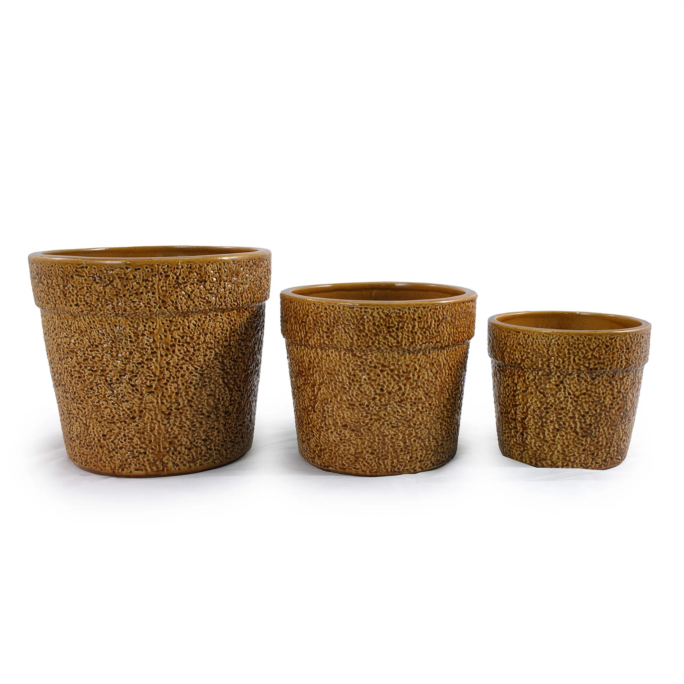 3pc Durable Ceramic Pots with Weatherproof Coating