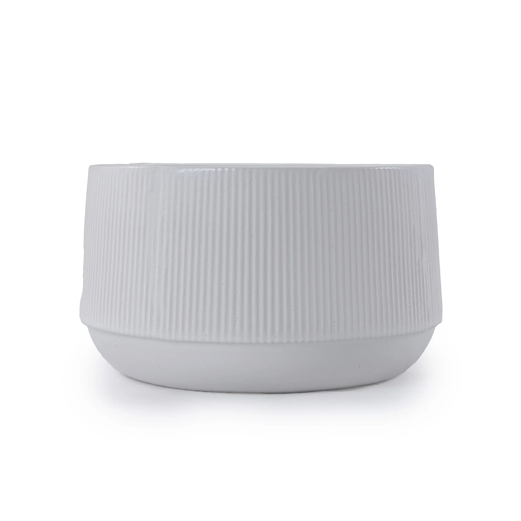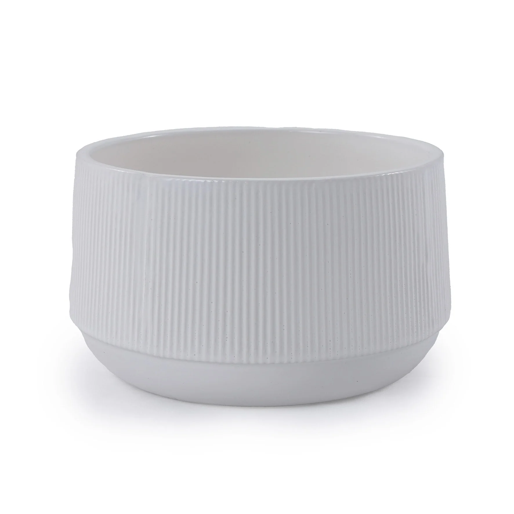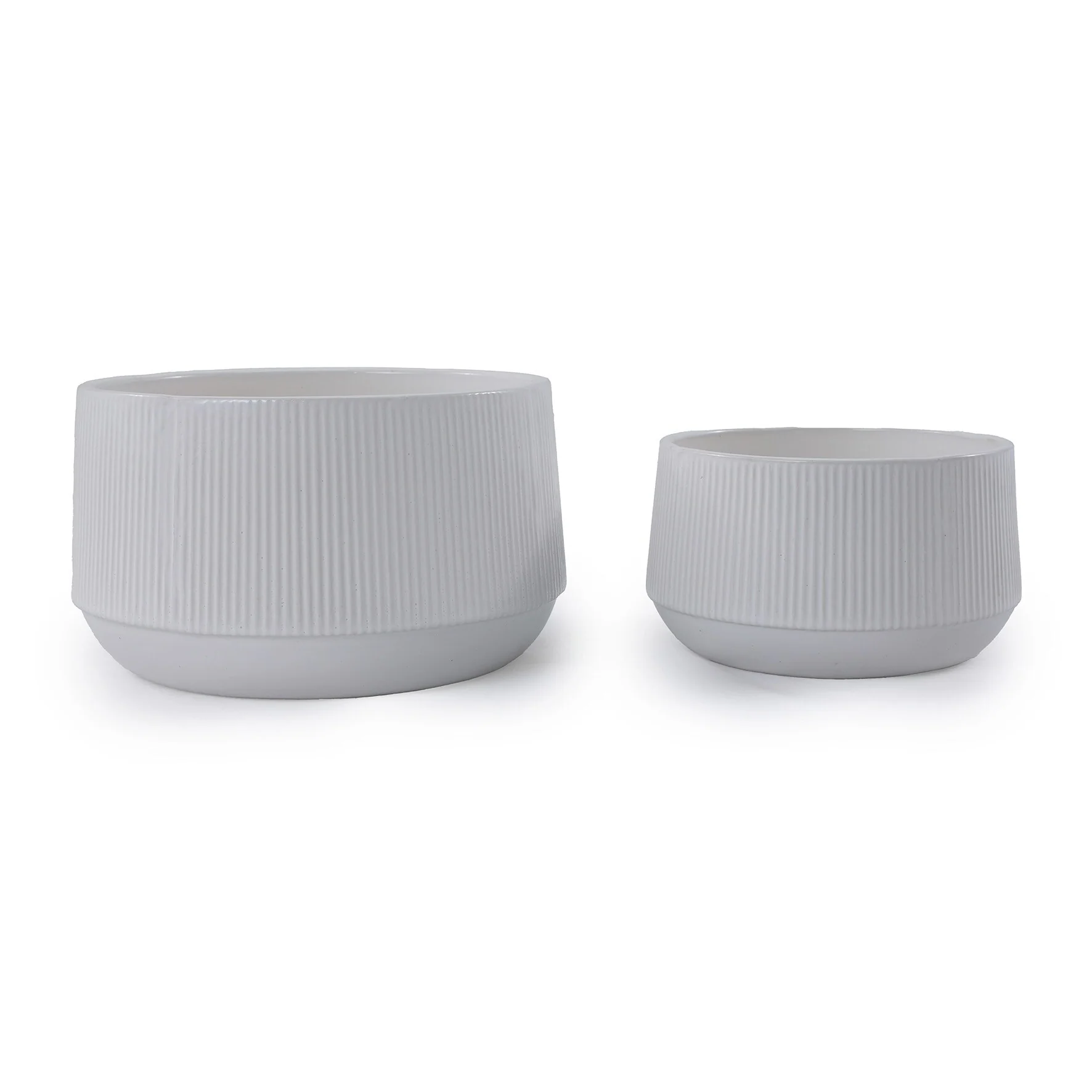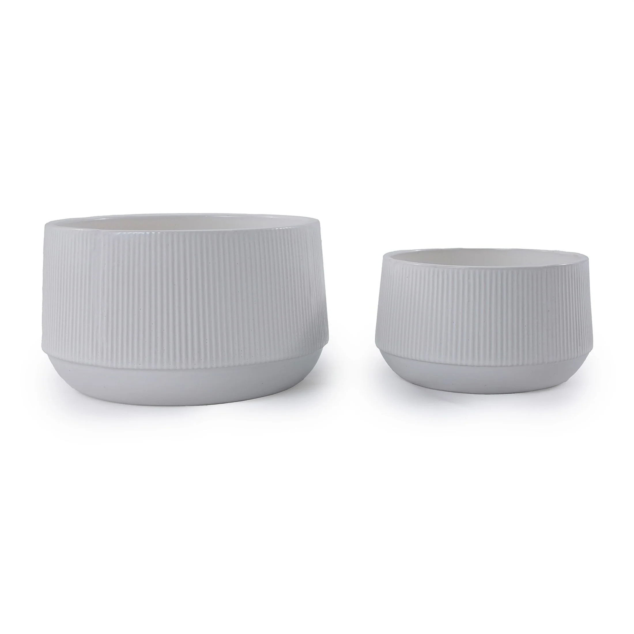 Zeri 3pc Planter Set, Ribbed Grooved White Terracotta, 8,10,12 Inch