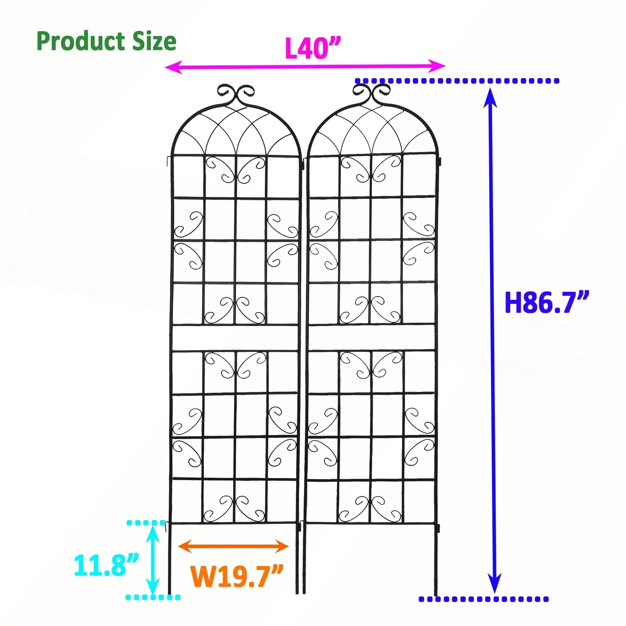 2 Pack Metal Garden Trellis 86.7in x 19.7in Rustproof Trellis