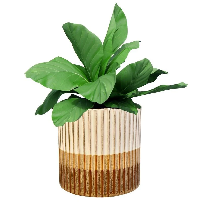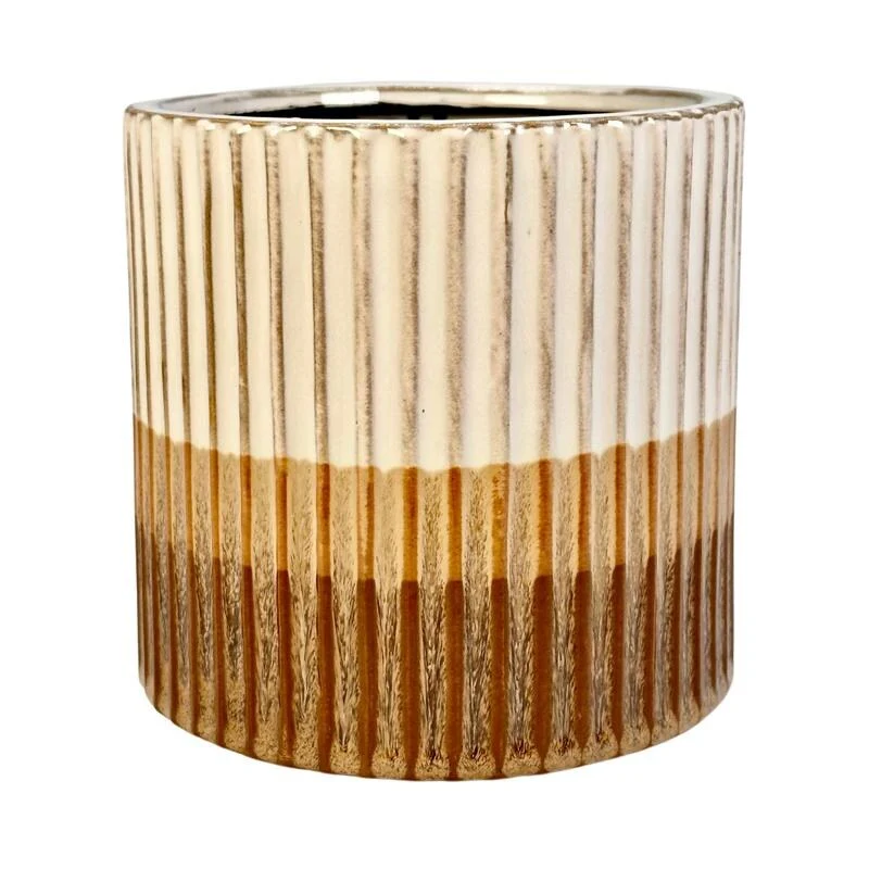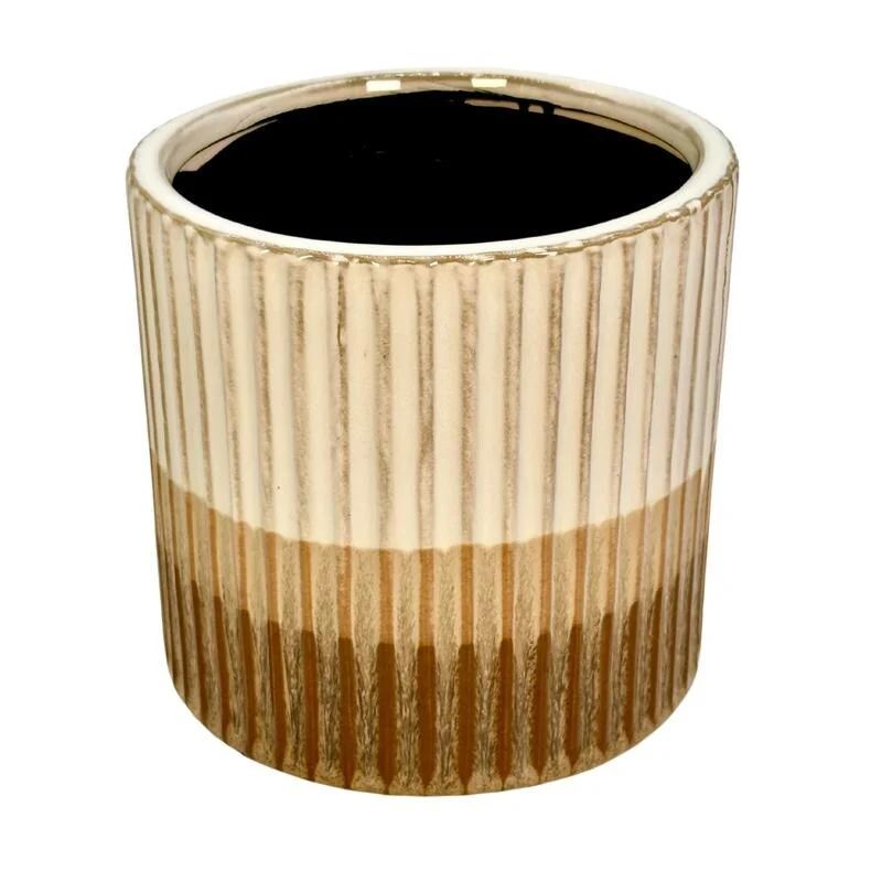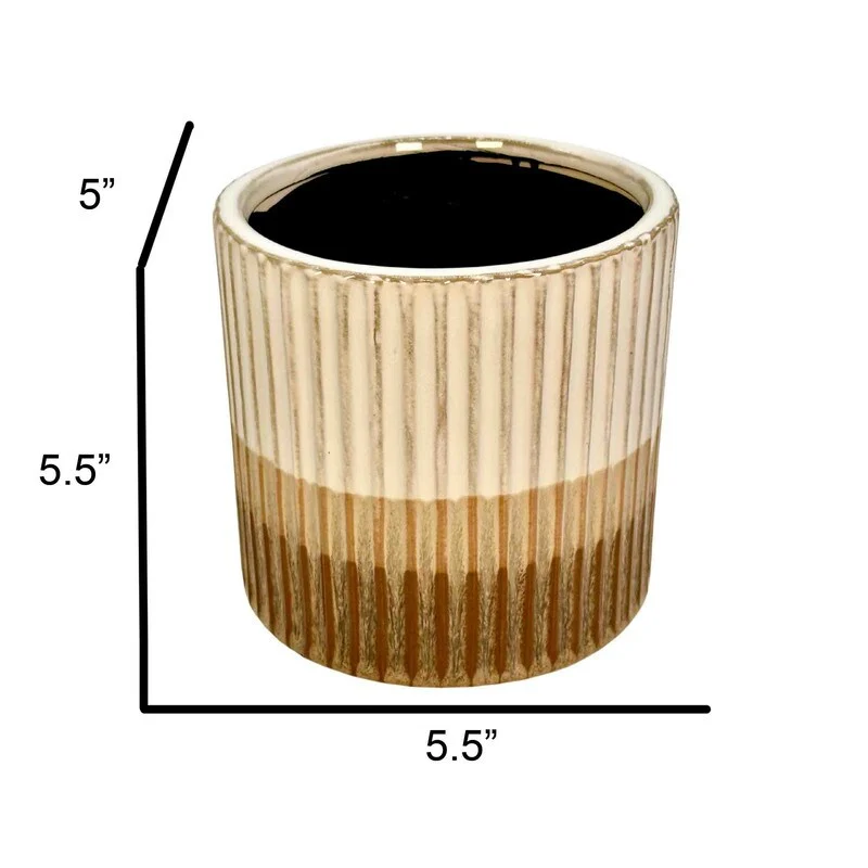 Modern Striped Planters Glossy Ceramic Pots for Indoor/Outdoor Decorate (2pc)