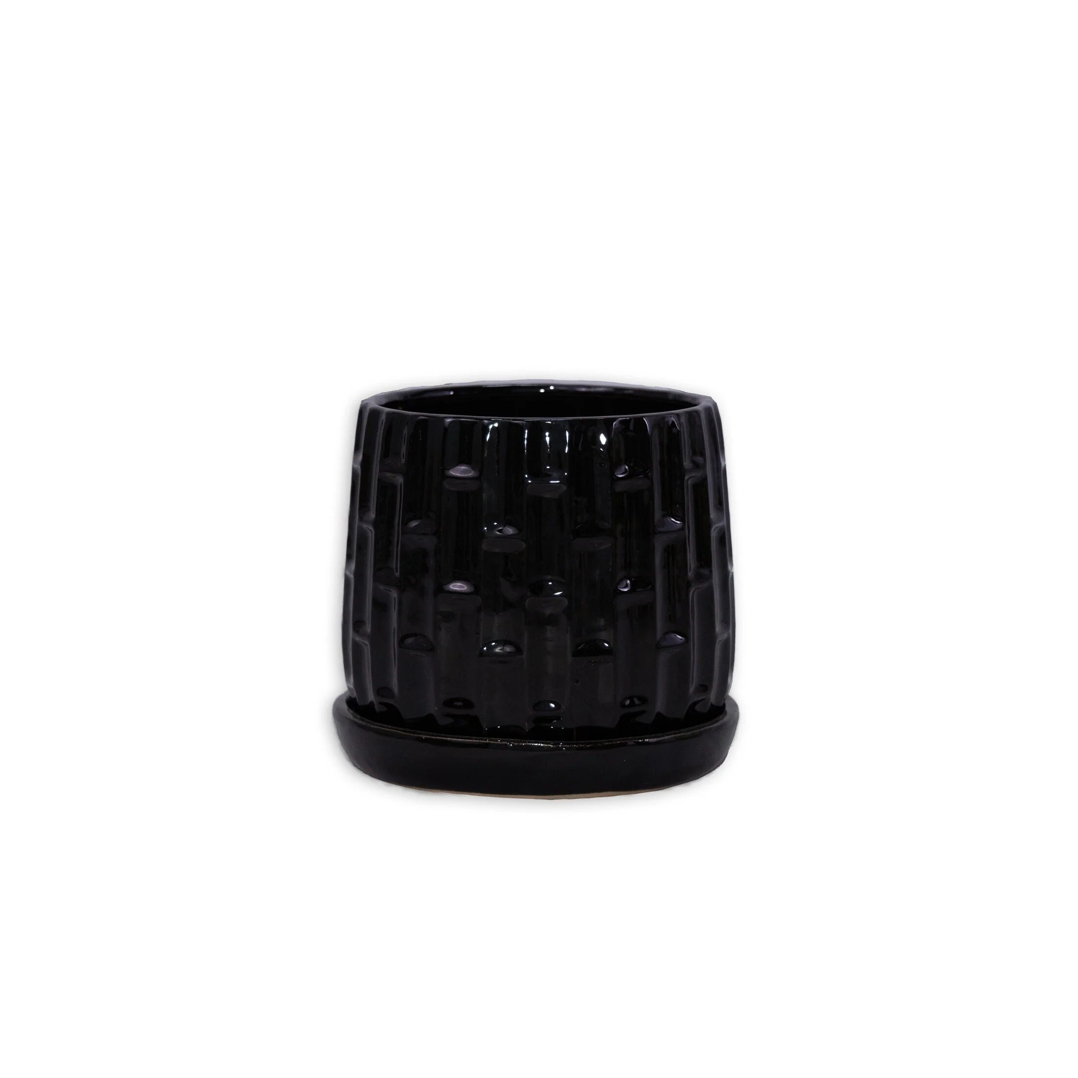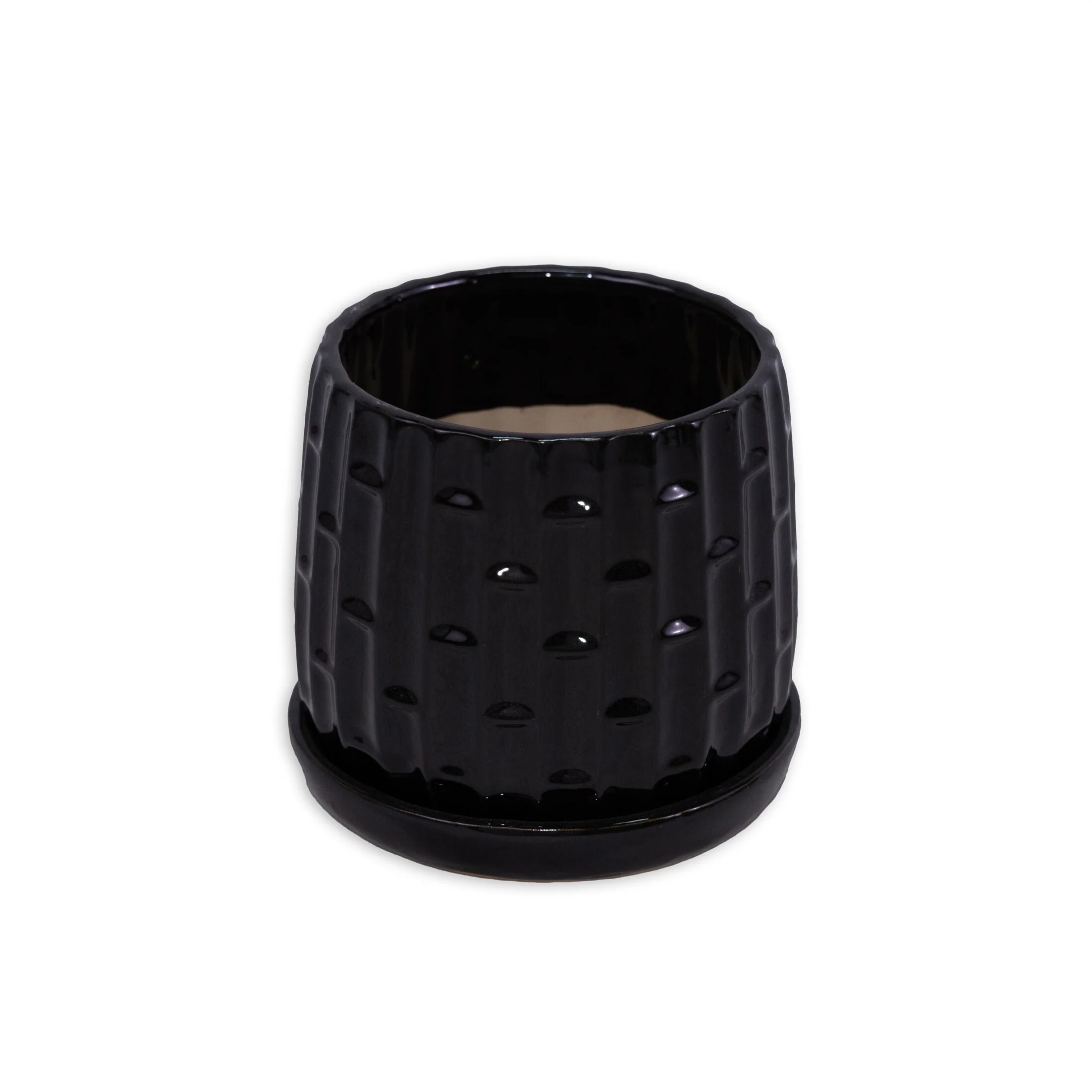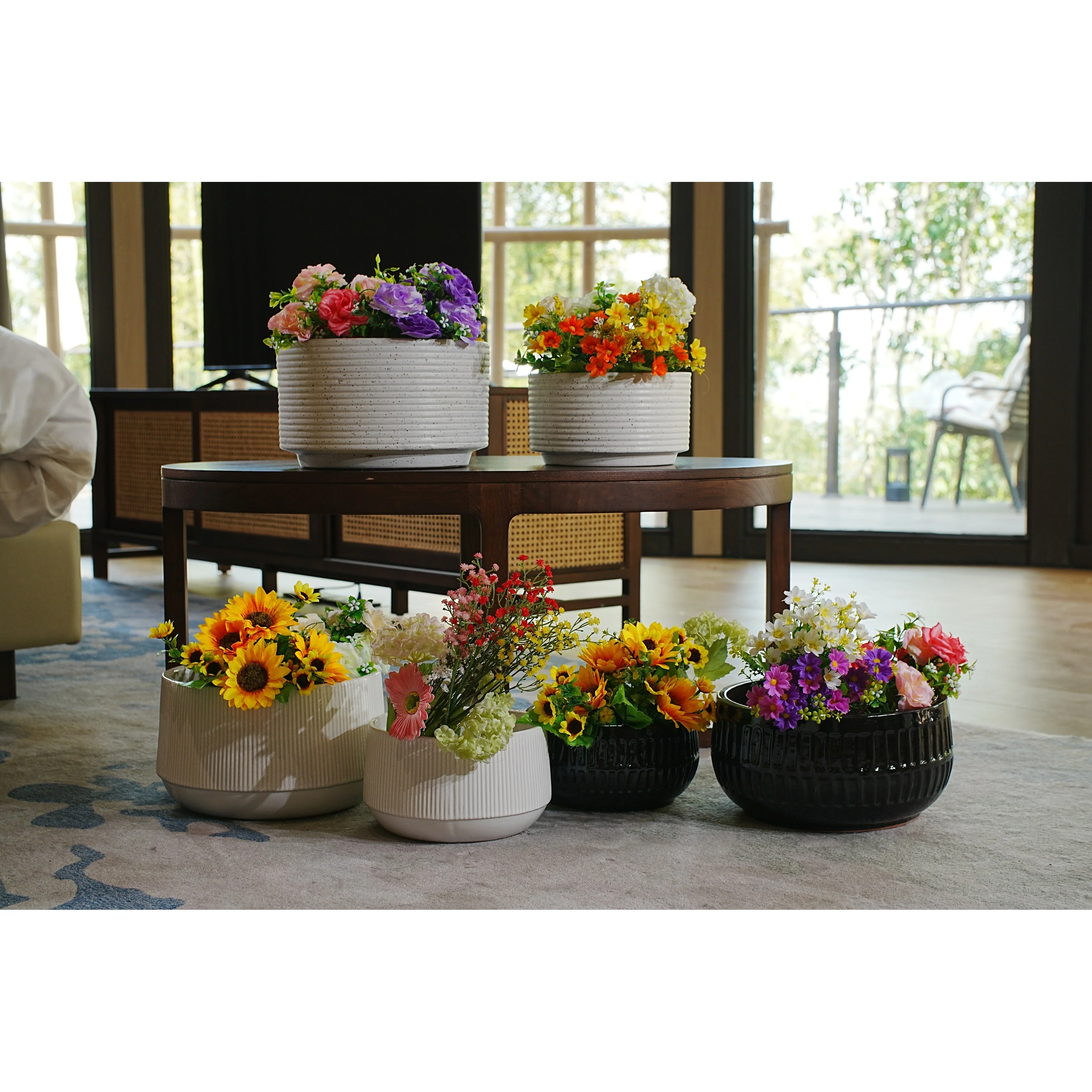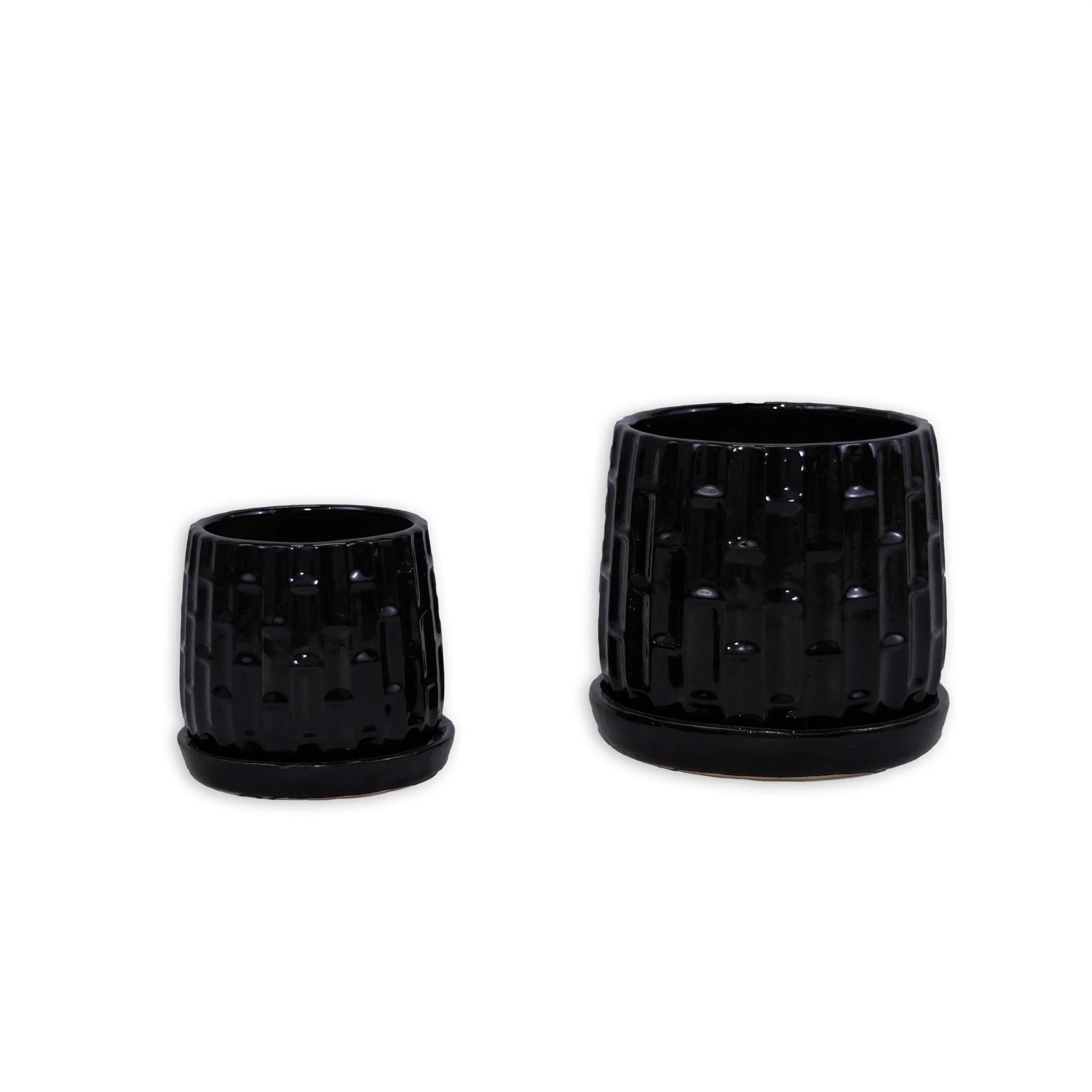 Premium Ceramic Planter Set Sleek Striped Design 3-Piece