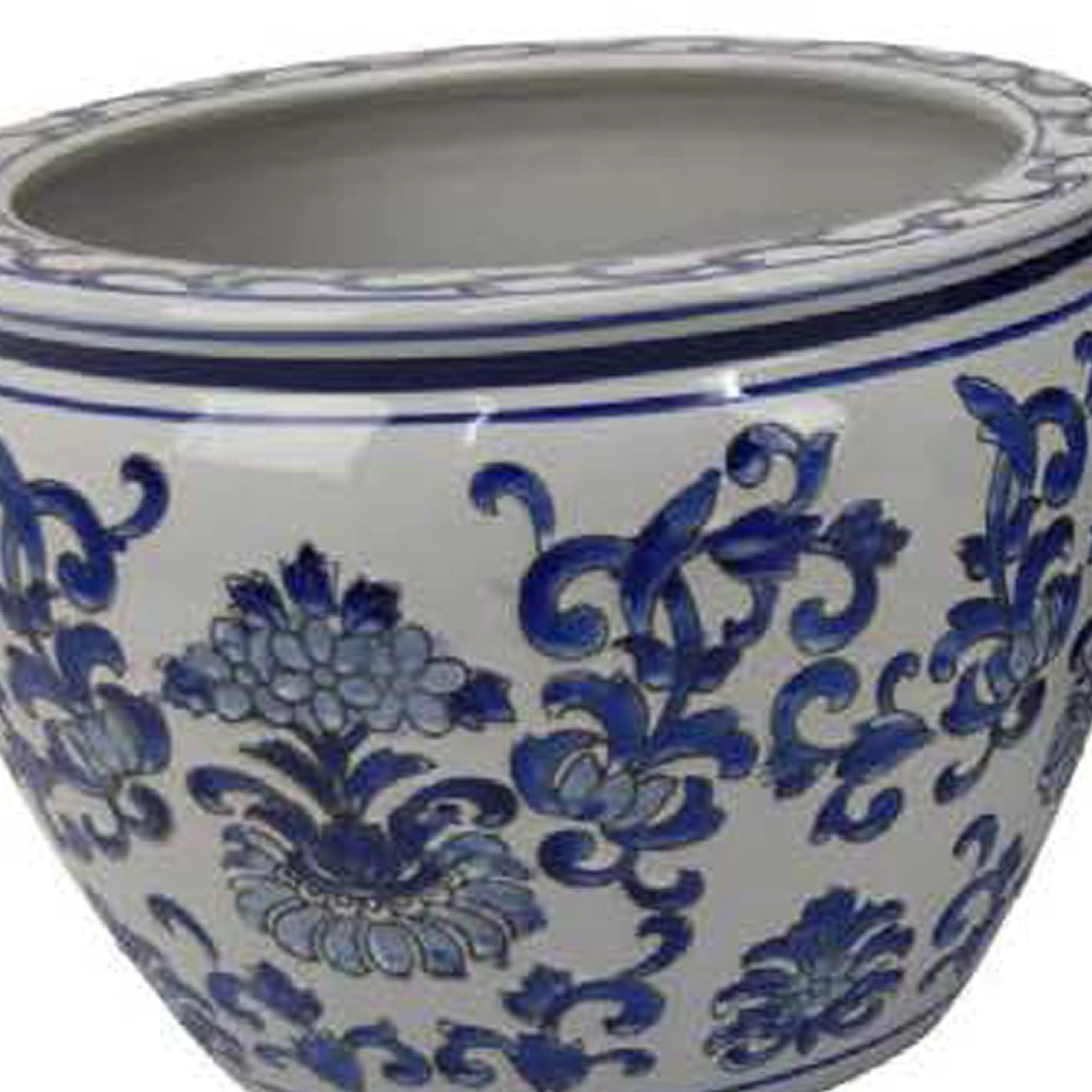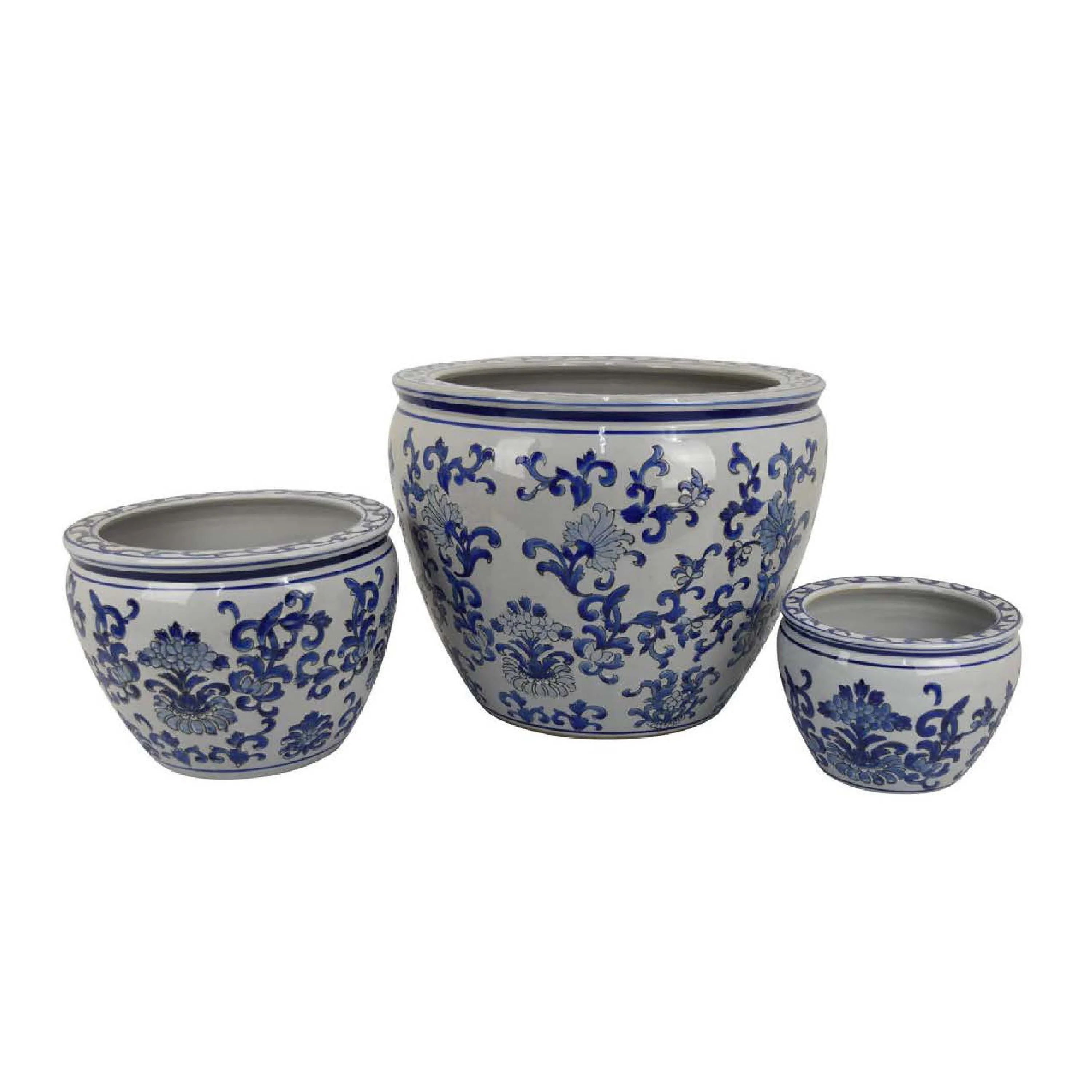 Hely 3 Planter Set, Blue Floral Vine Off White Ceramic 20, 14, 10 Inch