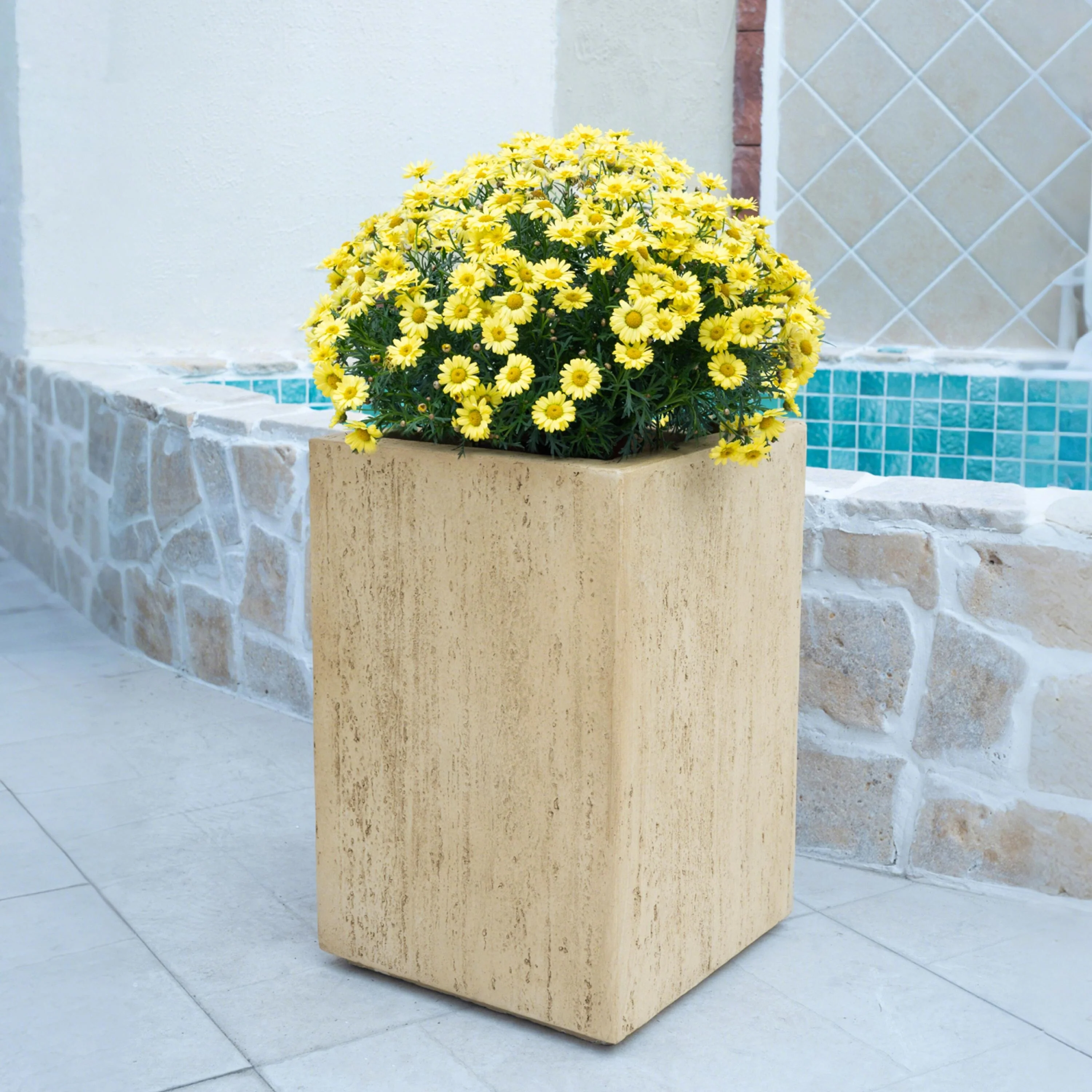 MGO Handmade Rectangle Planter Box, 19.75" Height, Travertine Finish