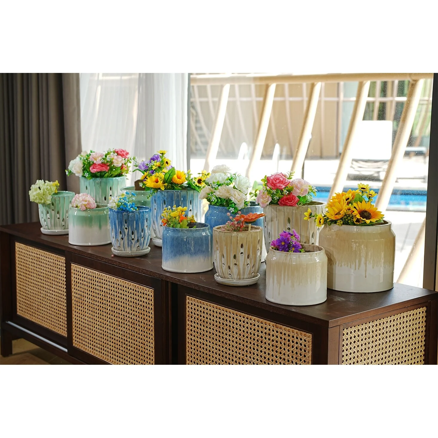 Glossy Reinforced Ceramic Planters Indoor/Outdoor Decorate (Set of 2)