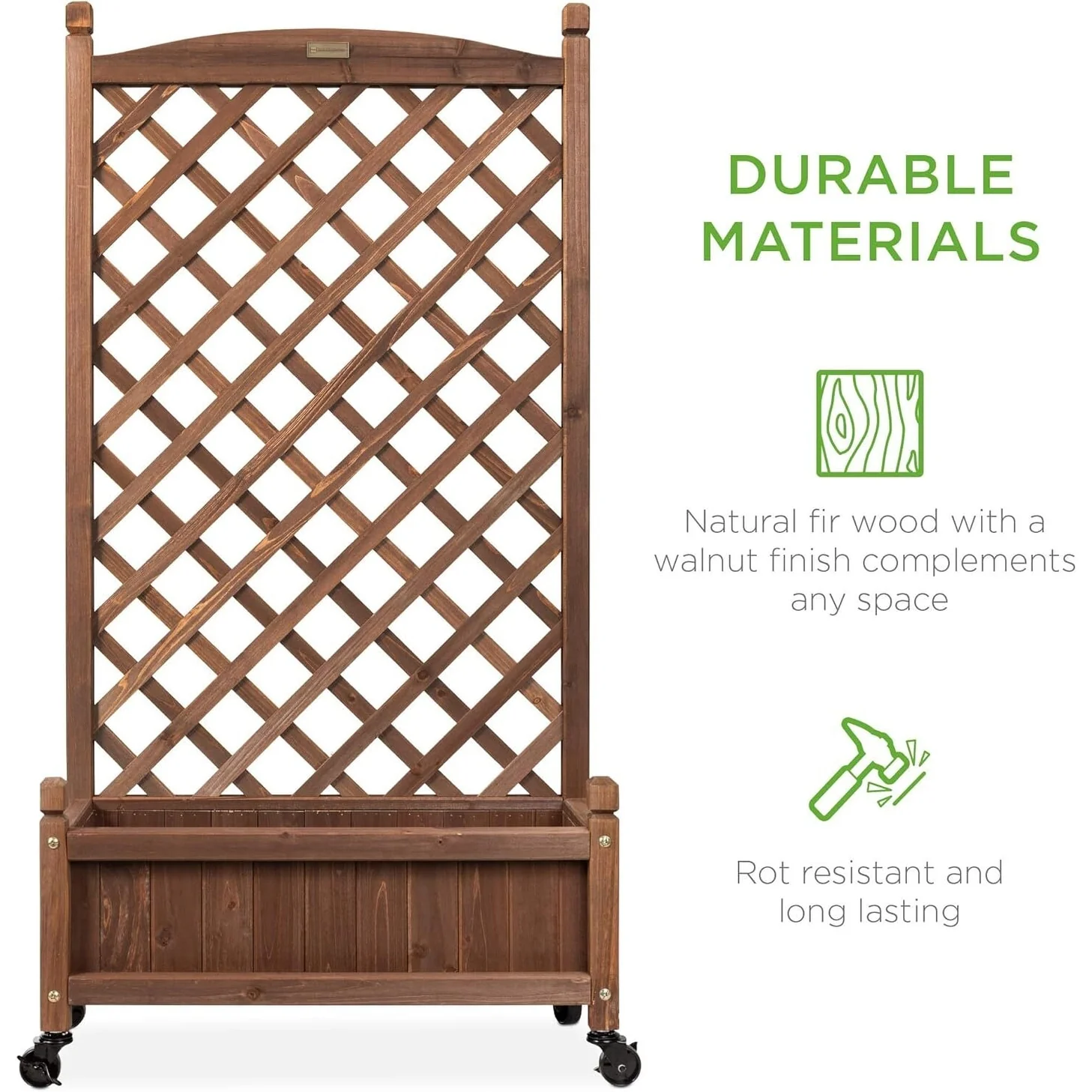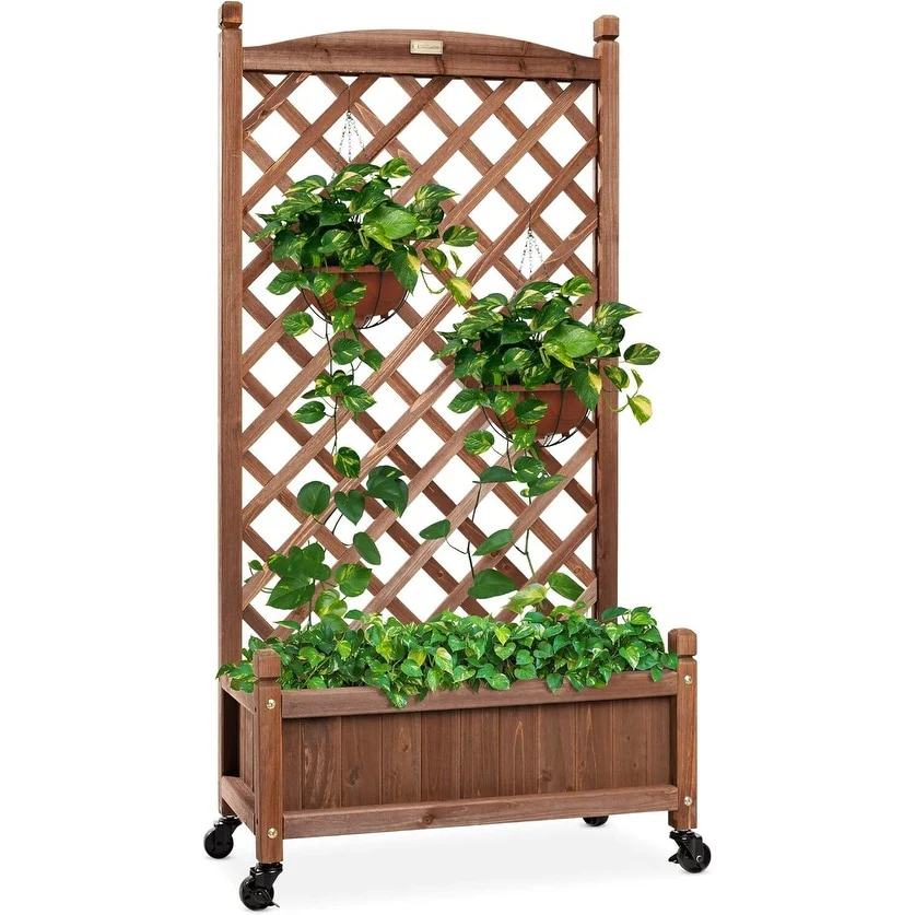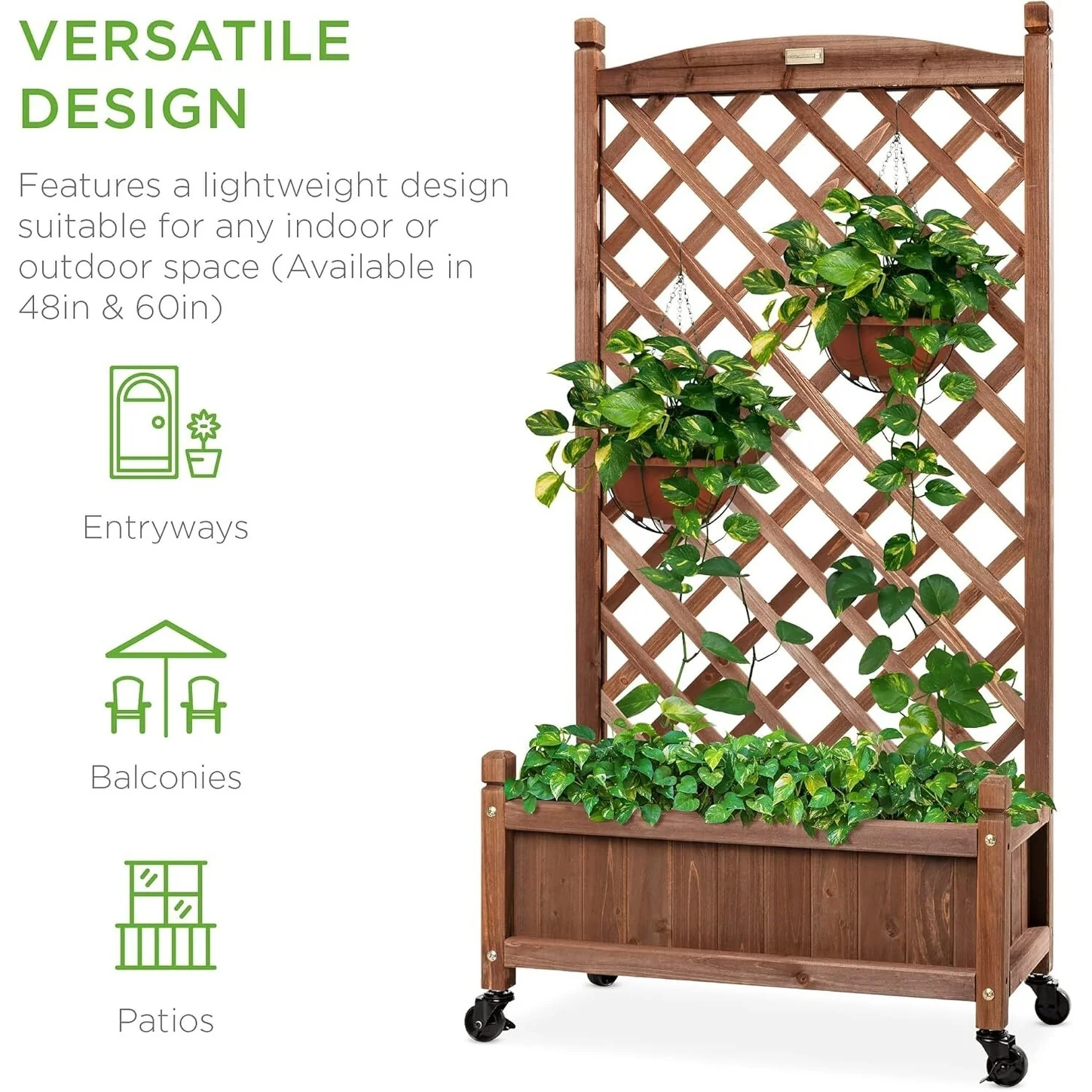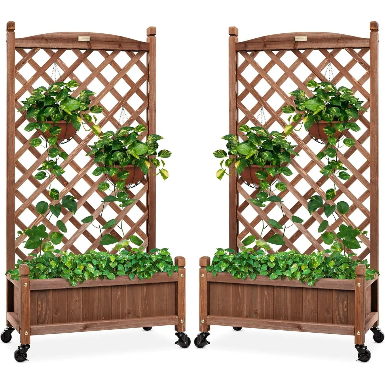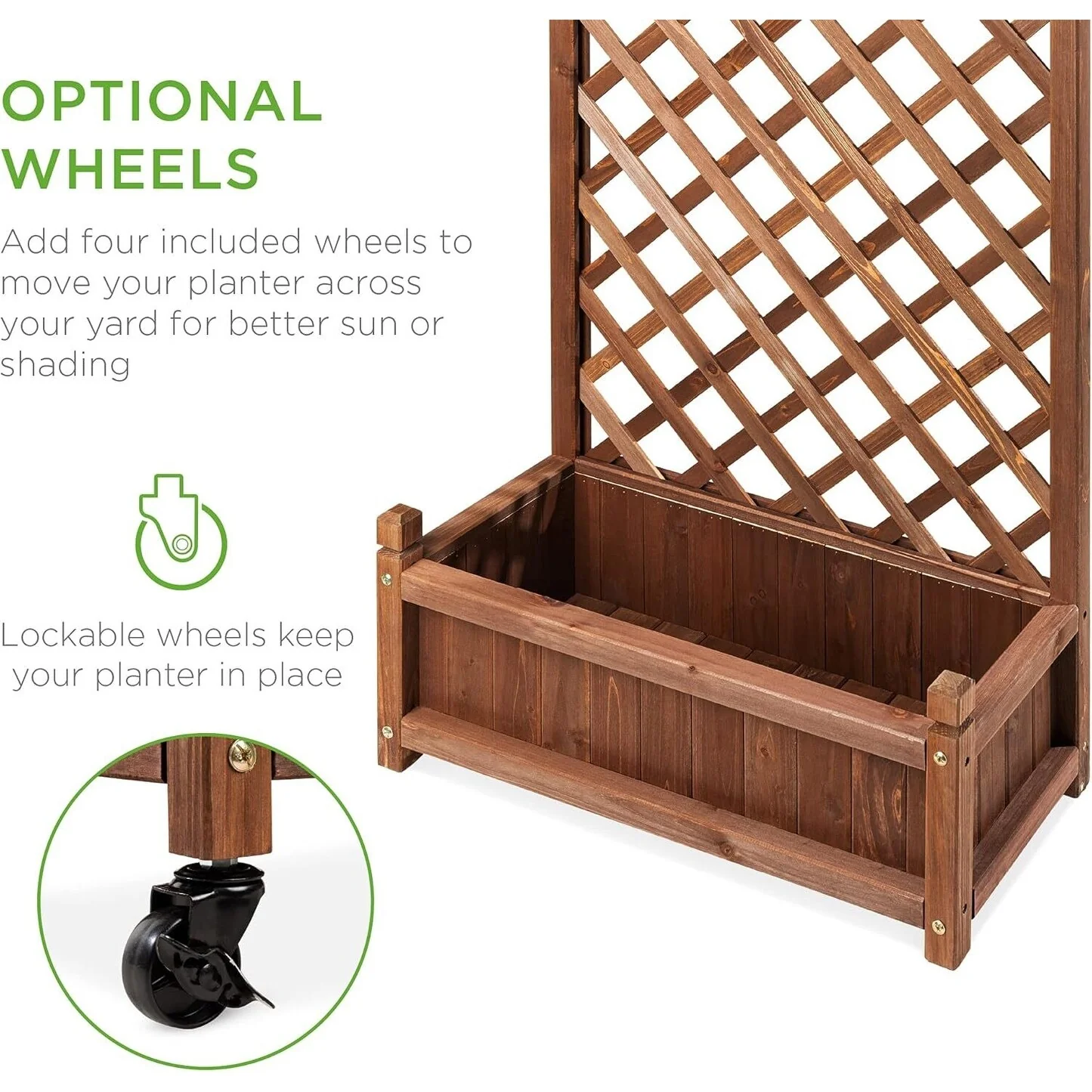 Set of 2 48in Wood Planter Box & Diamond Lattice Trellis