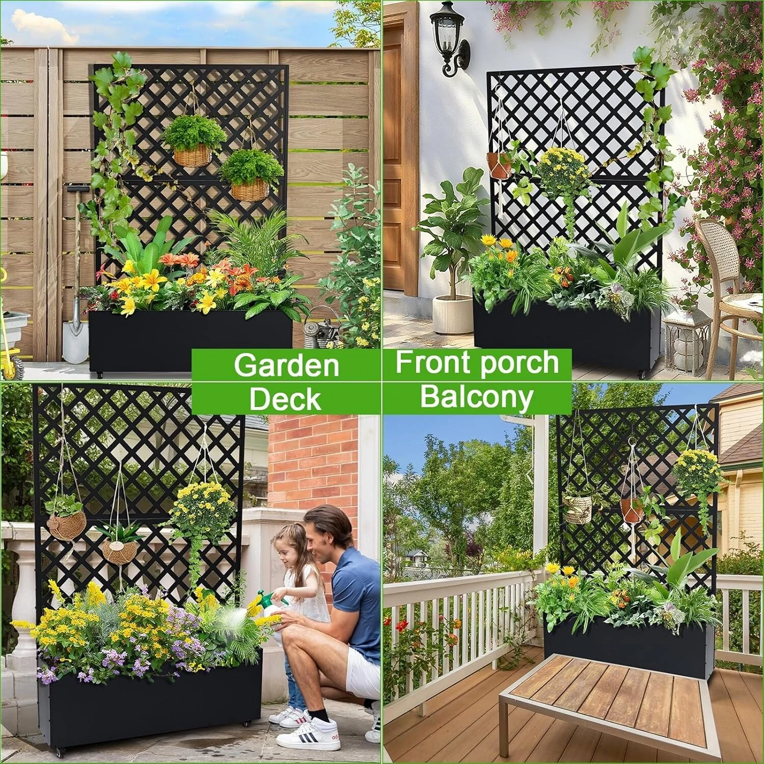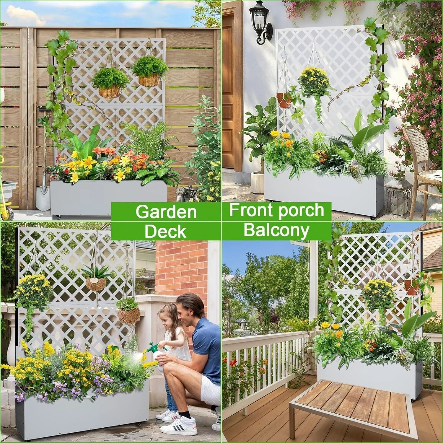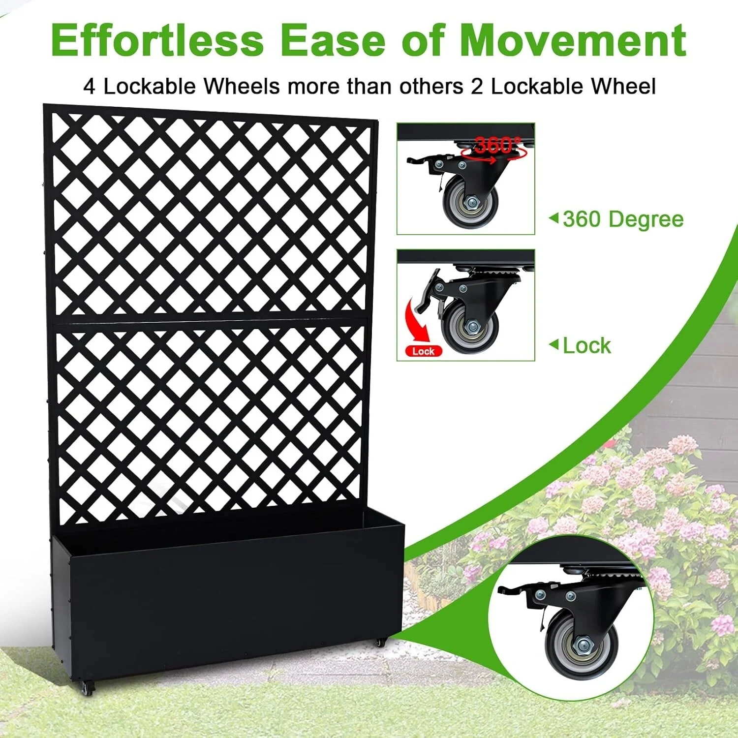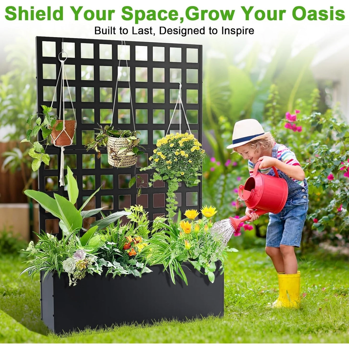 Set of 2 48in Wood Planter Box & Diamond Lattice Trellis