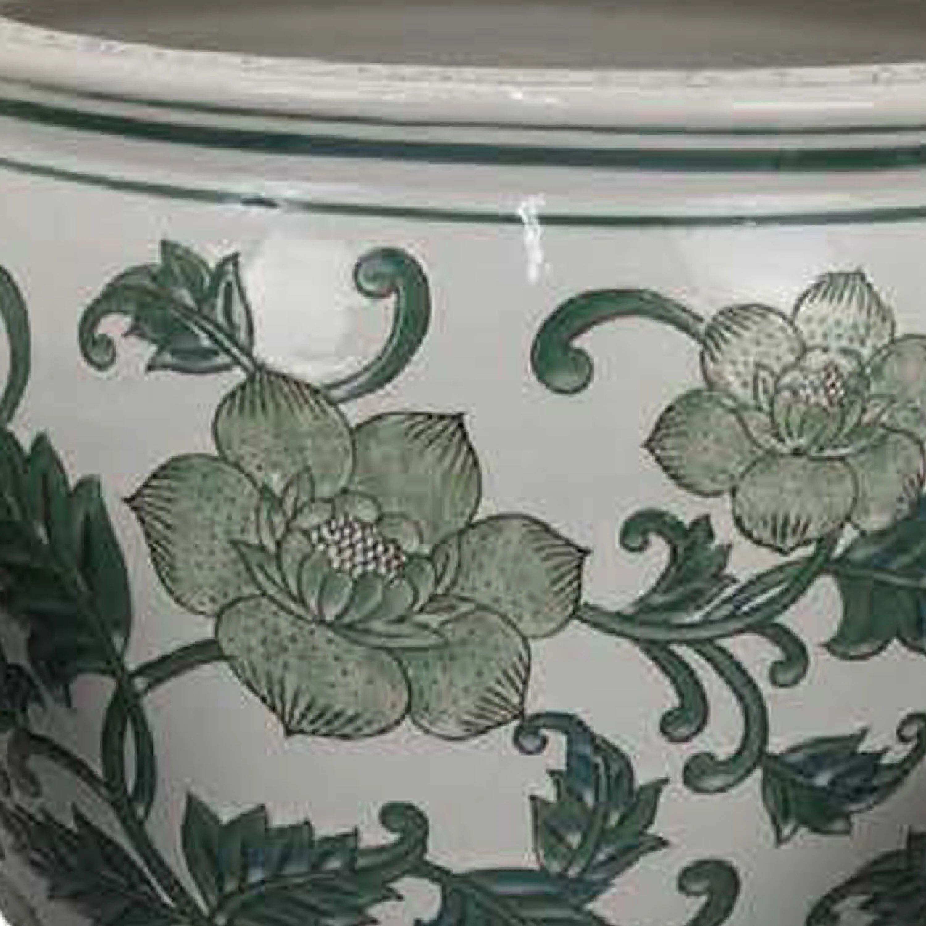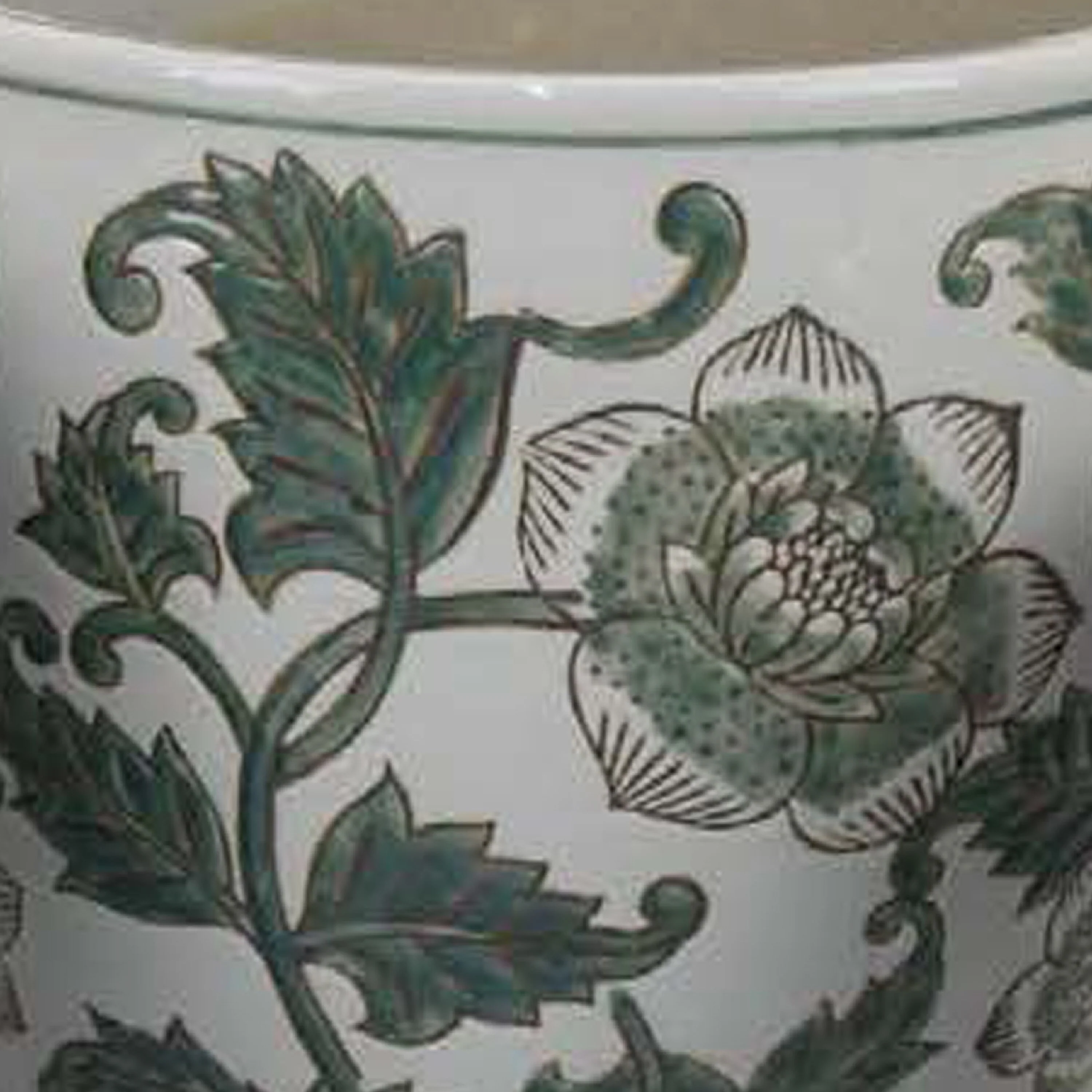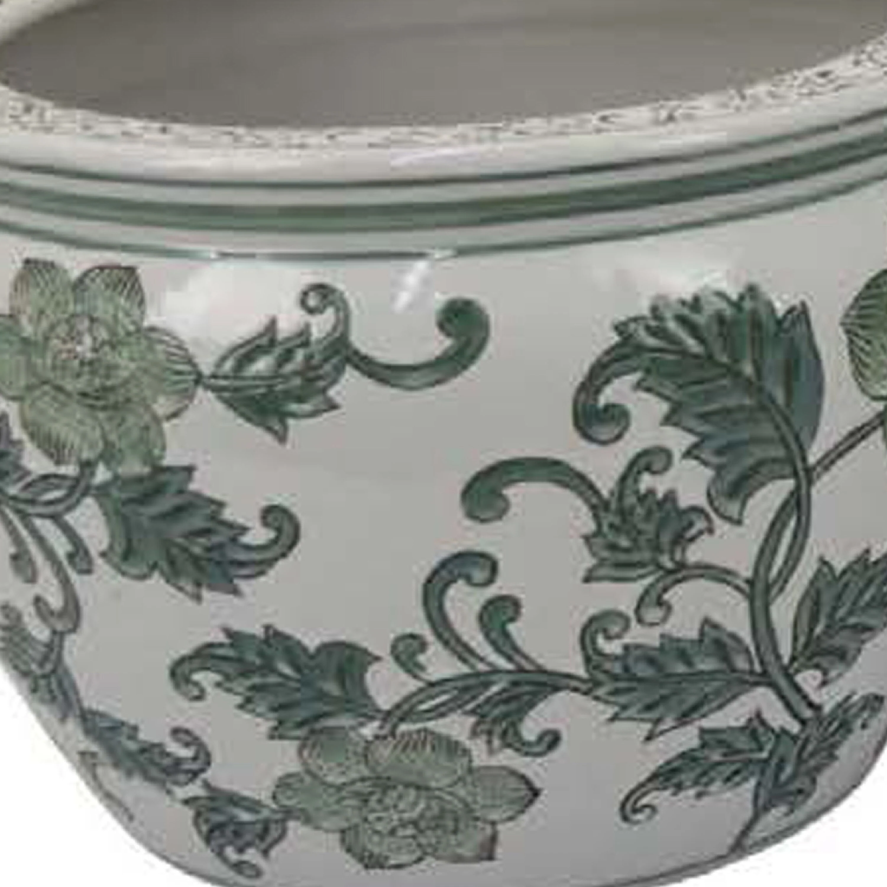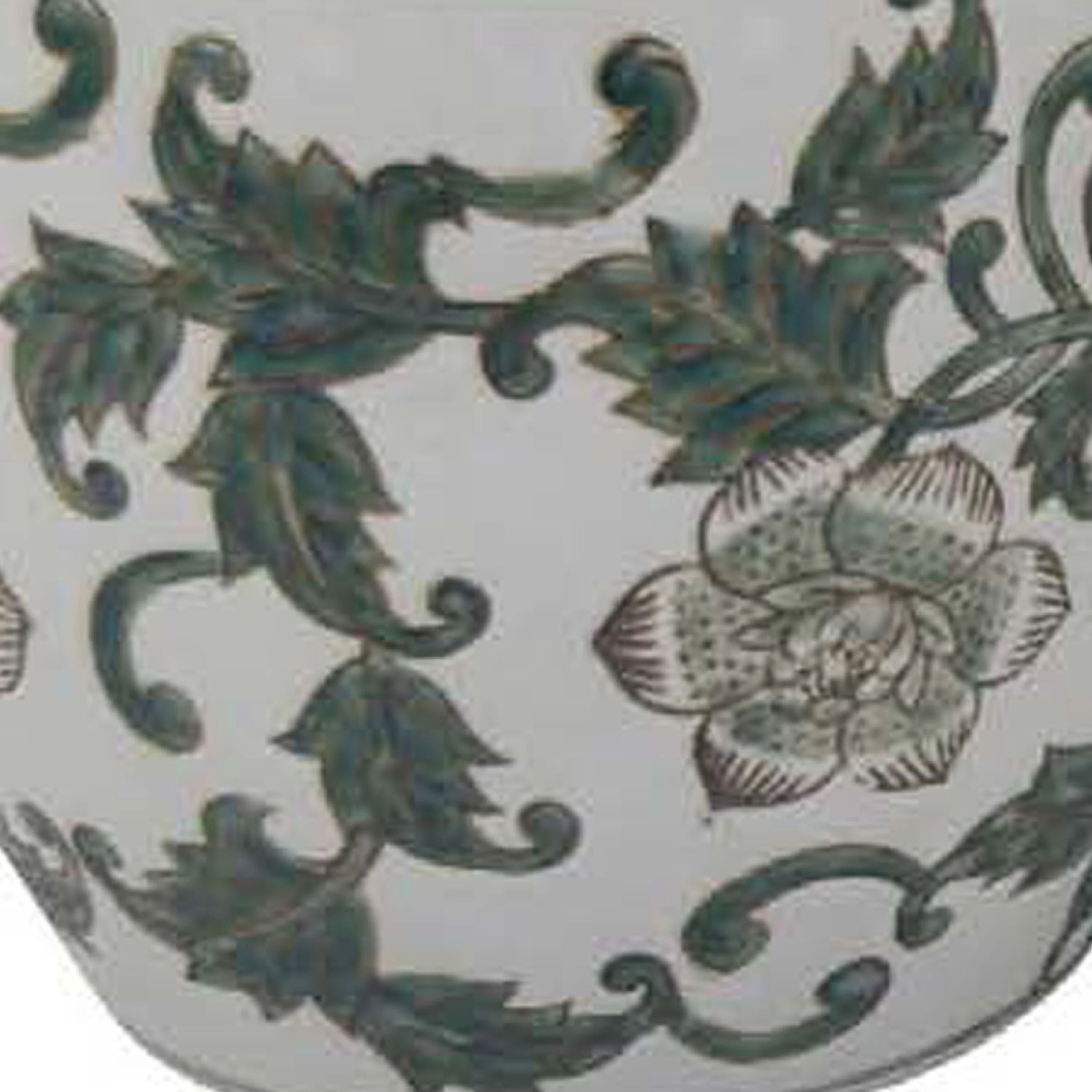 Hely 3 Planter Set, Green White Floral Glazed Ceramic 16, 12, 8 Inch