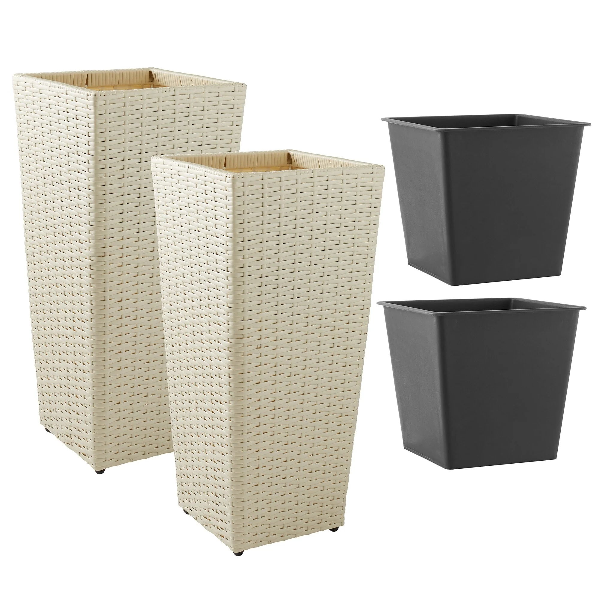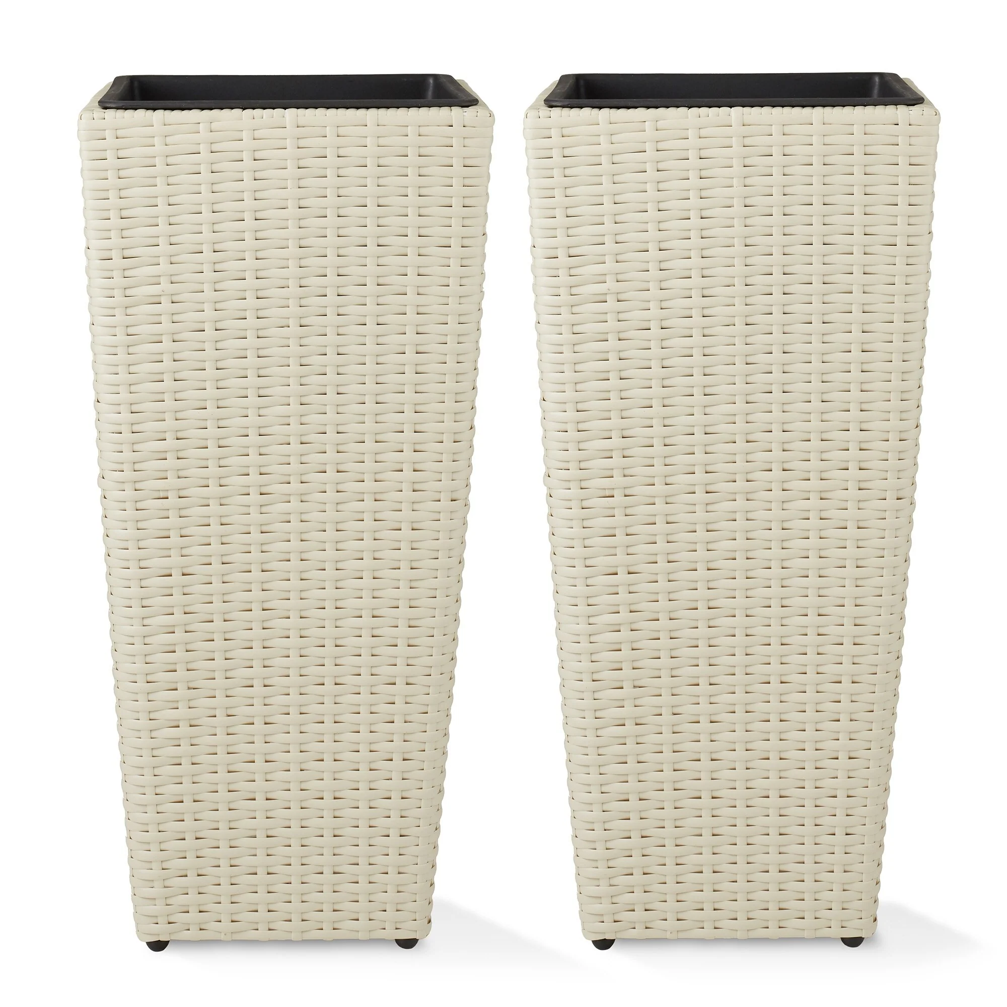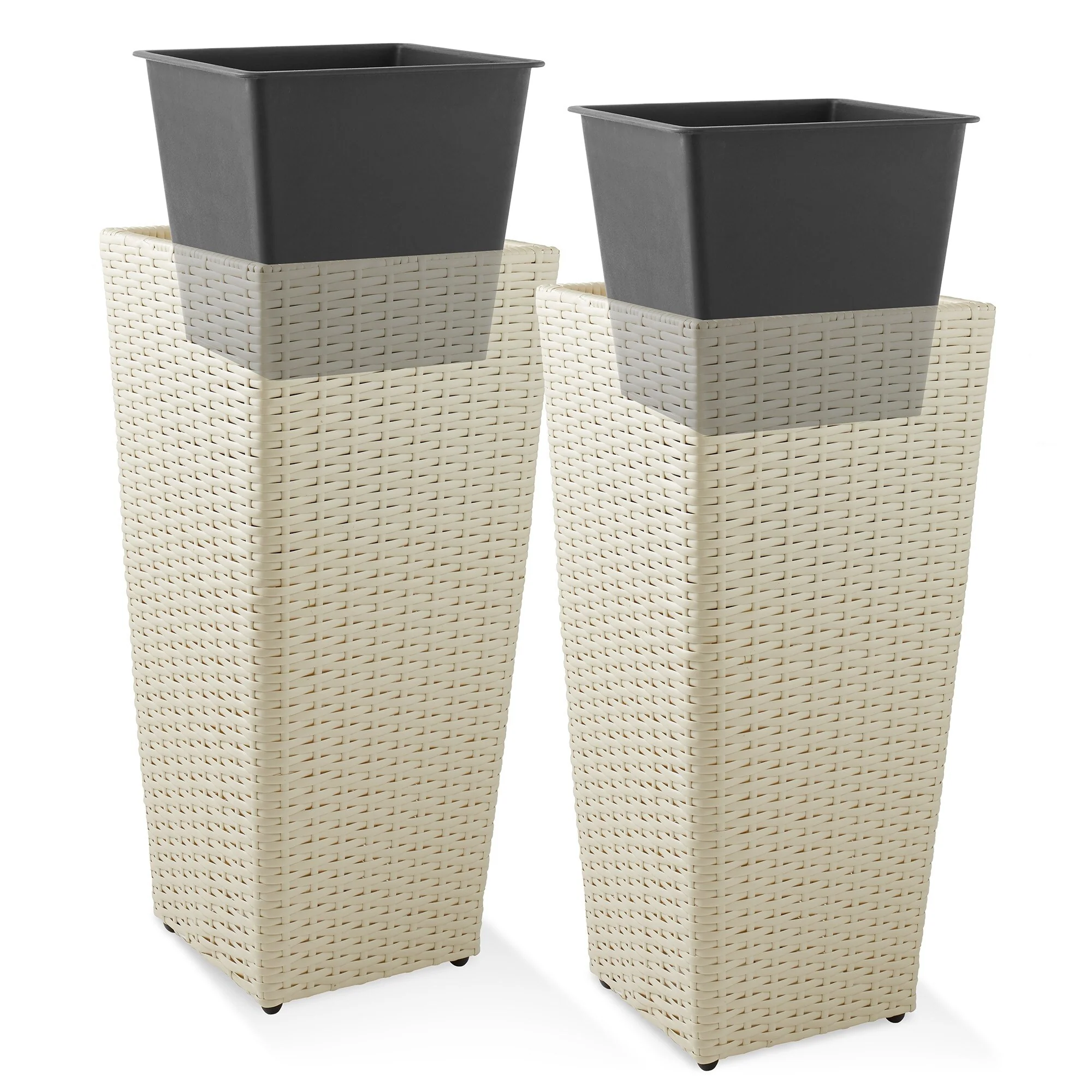 Set of 2 Tall Outdoor Planters with Removable Flower Pot Liners Brown