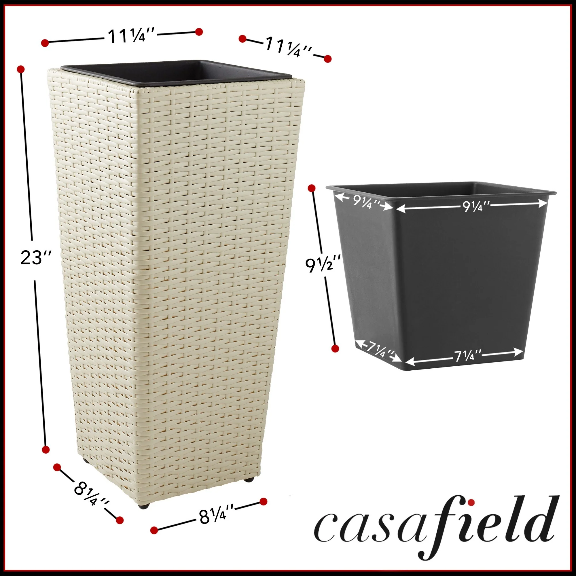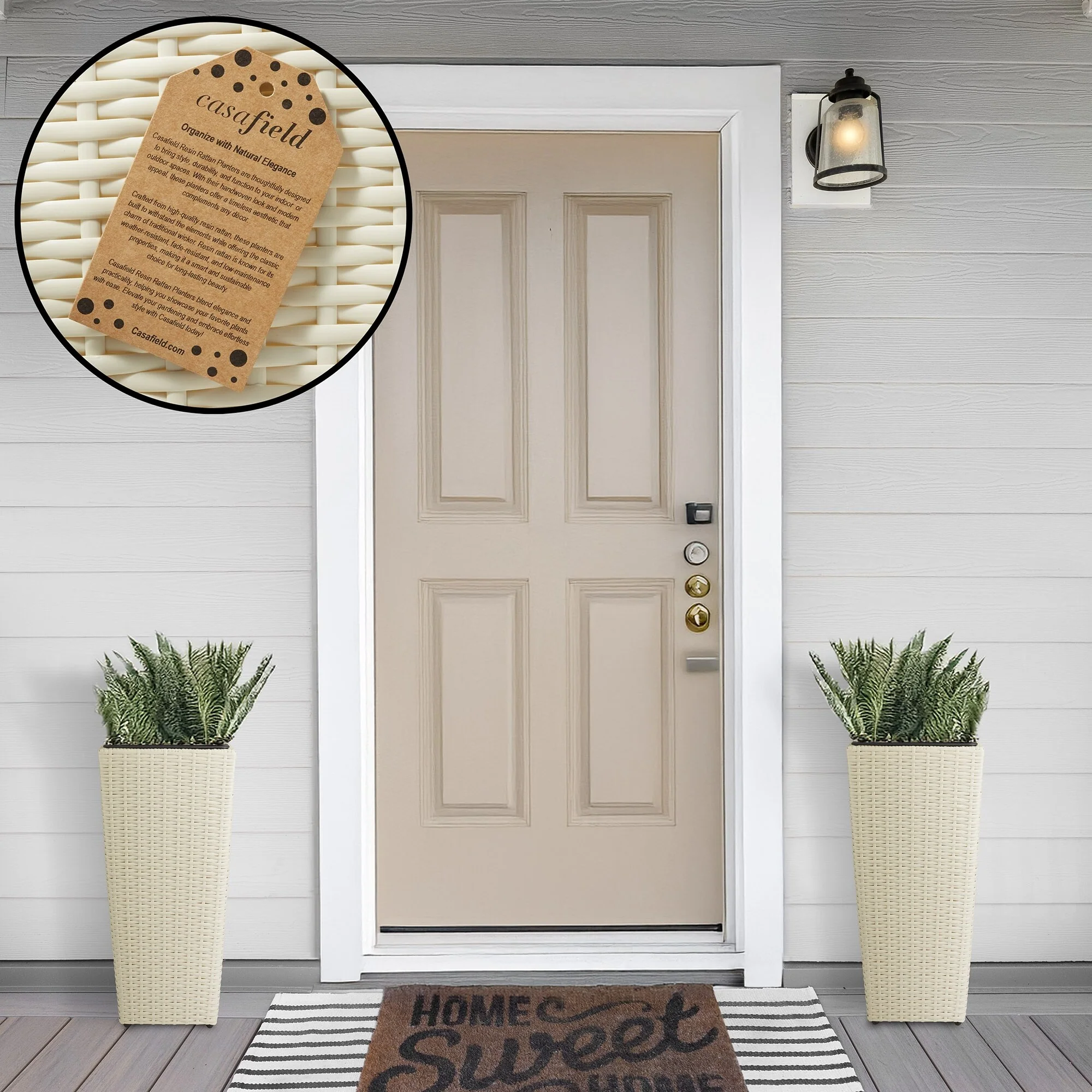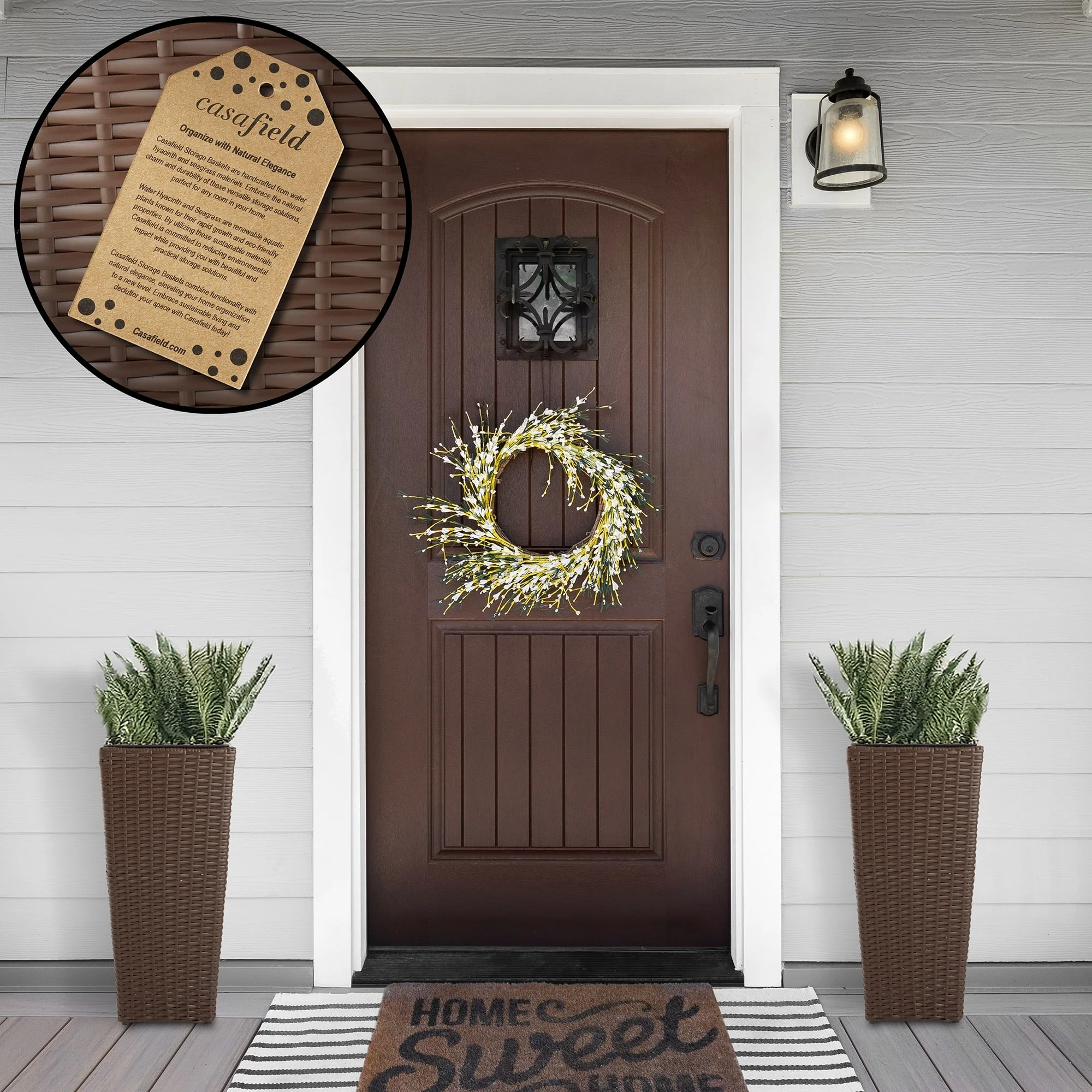 Set of 2 Tall Outdoor Planters with Removable Flower Pot Liners Brown