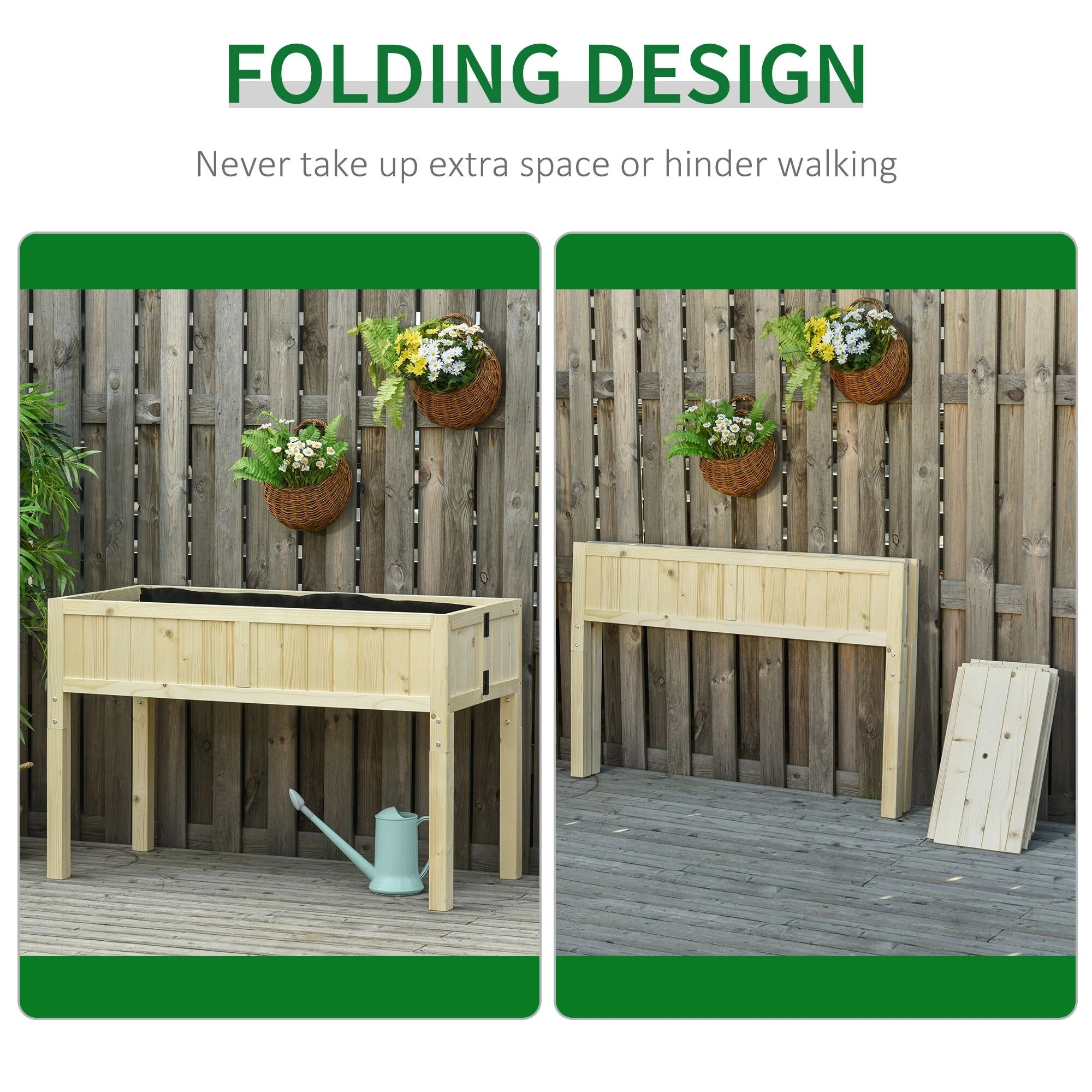 Outsunny Elevated Wood Foldable Raised Garden Bed with Drainage Hole, Outdoor Workstation with Legs, Space Saving Design