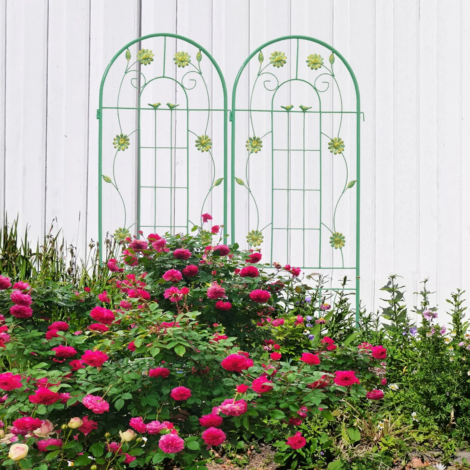 2-Pack Green Metal Garden Trellis, Rustproof Retro Plant Trellis for Climbing Plants, Outdoor Flower Stand