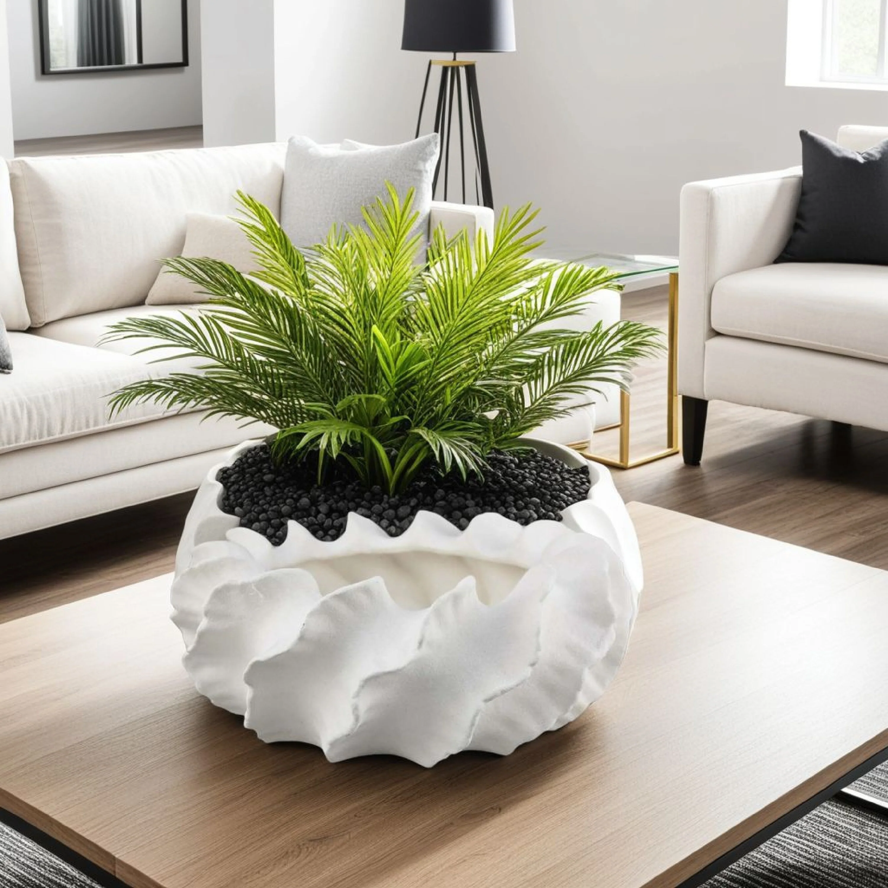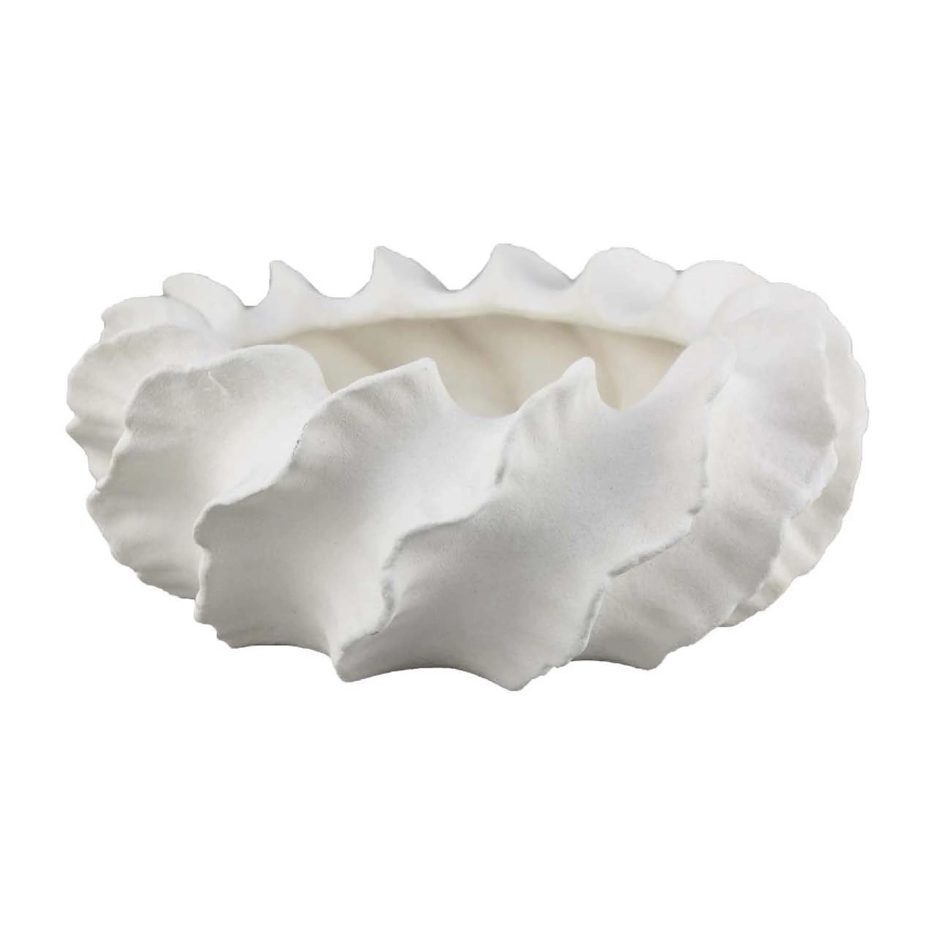 Velz Decorative Planter, 16 Inch Wavy Edge, Matte White Ceramic