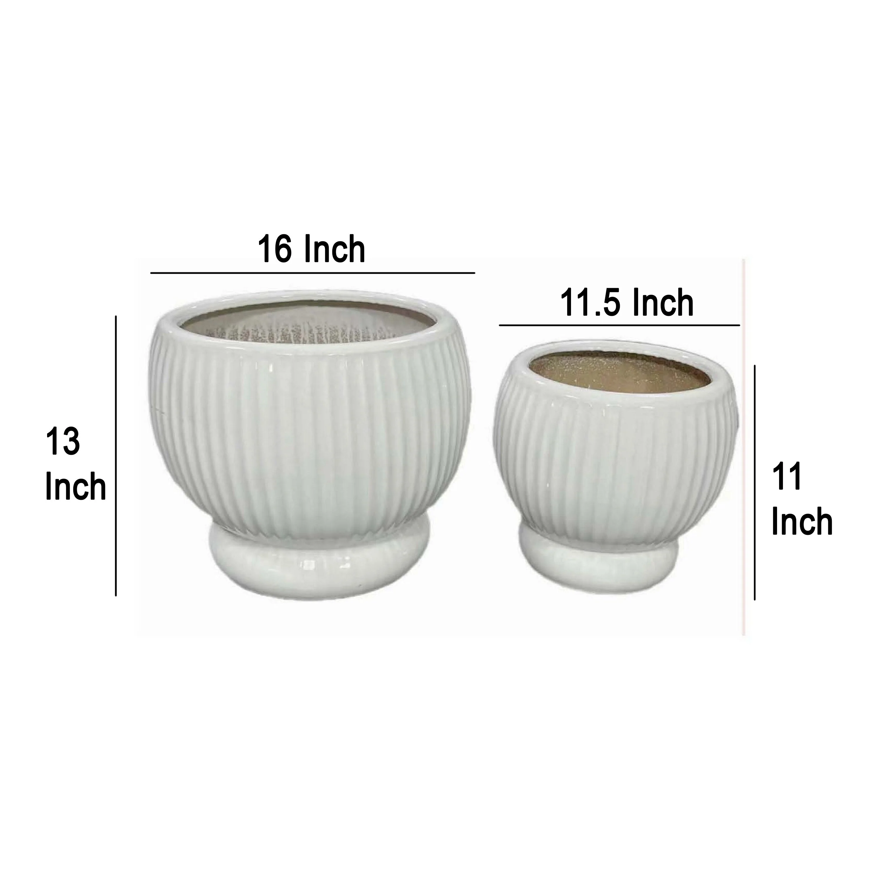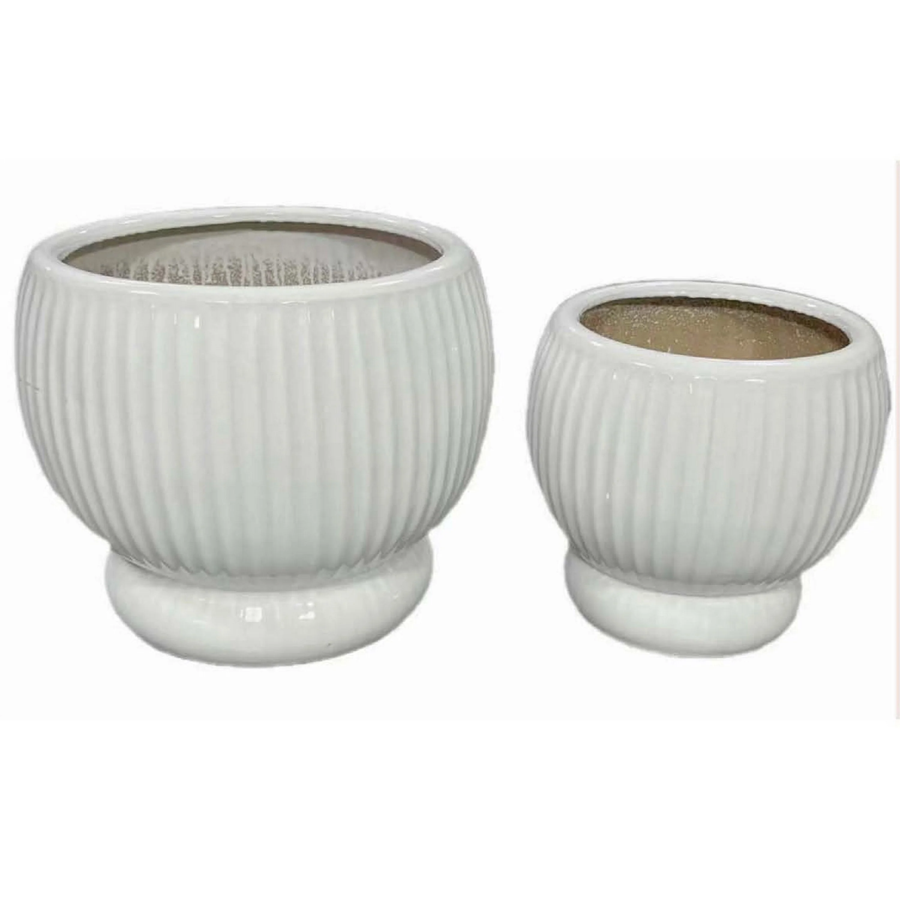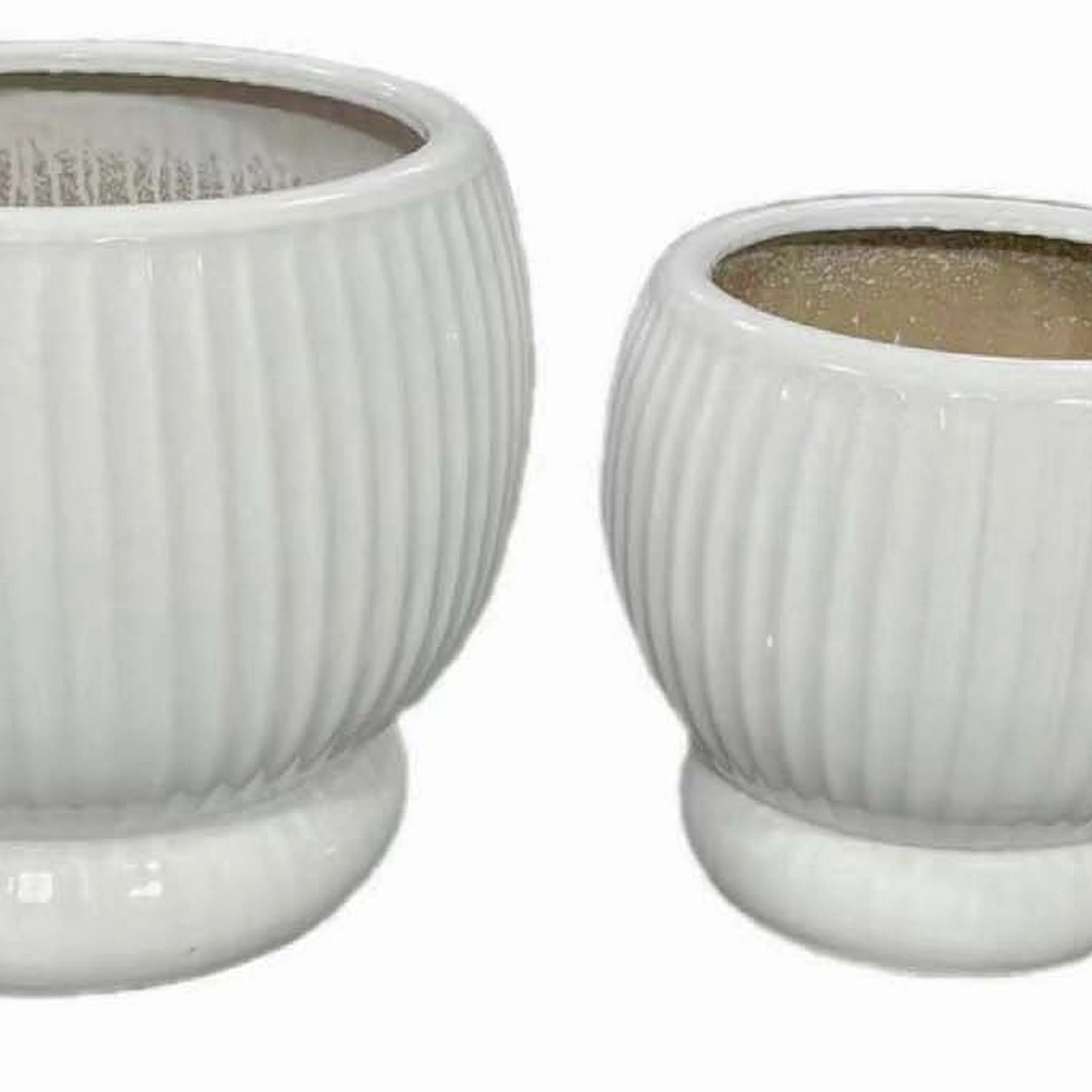Garden Planter Set of 2, Modern Bowl Shaped Brilliant White Ceramic