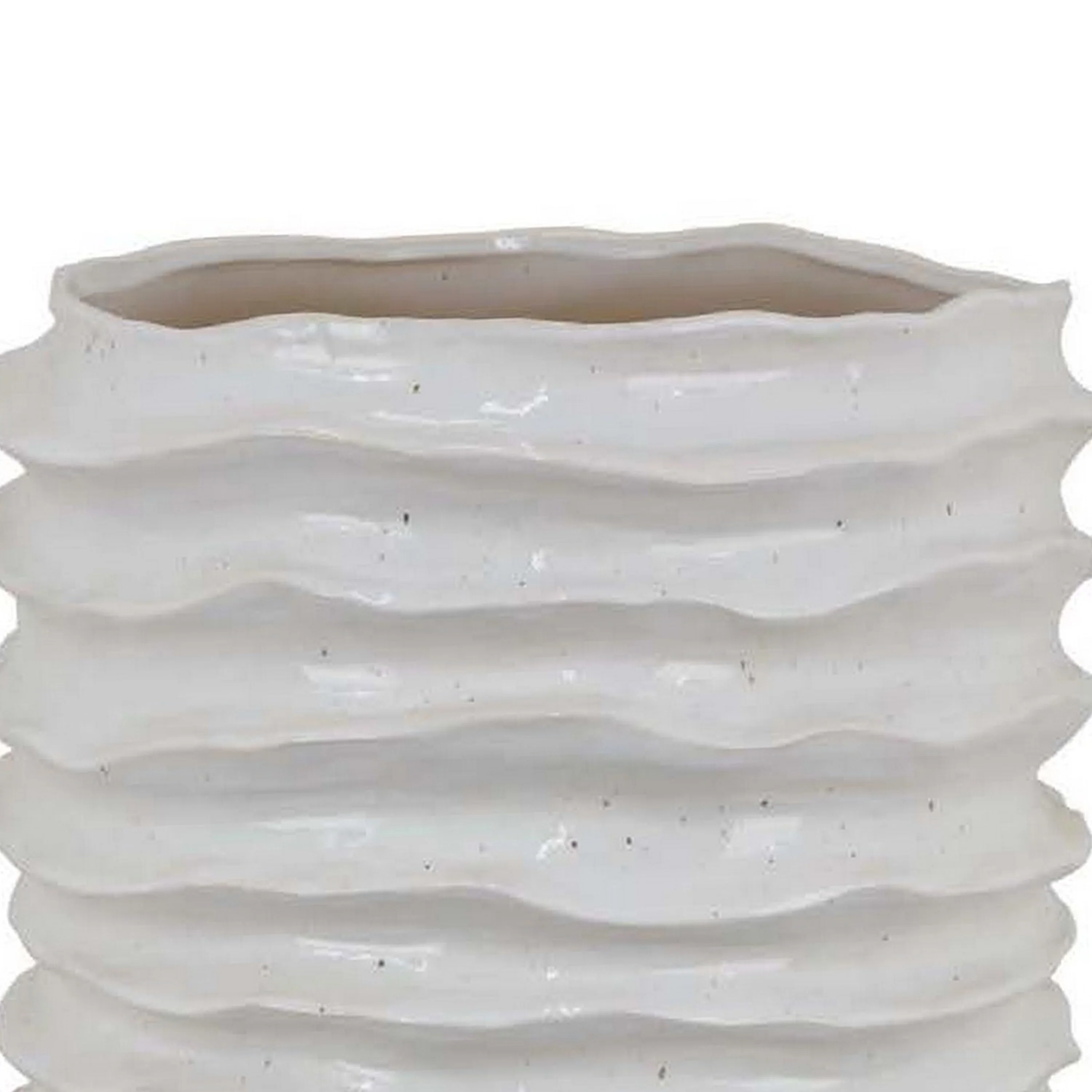 Accent Planter, Abstract Wave Coastal Design, 22 Inch White Ceramic