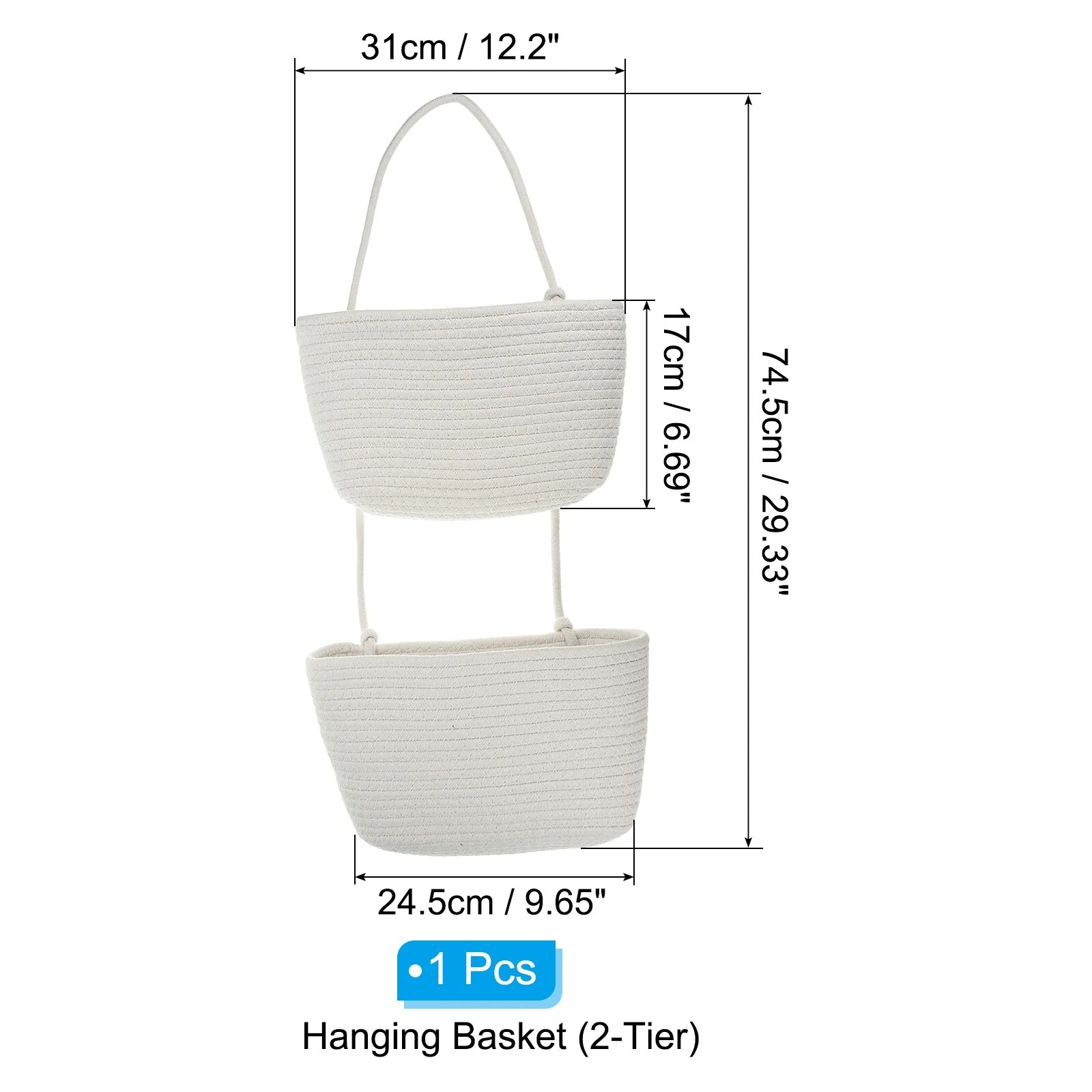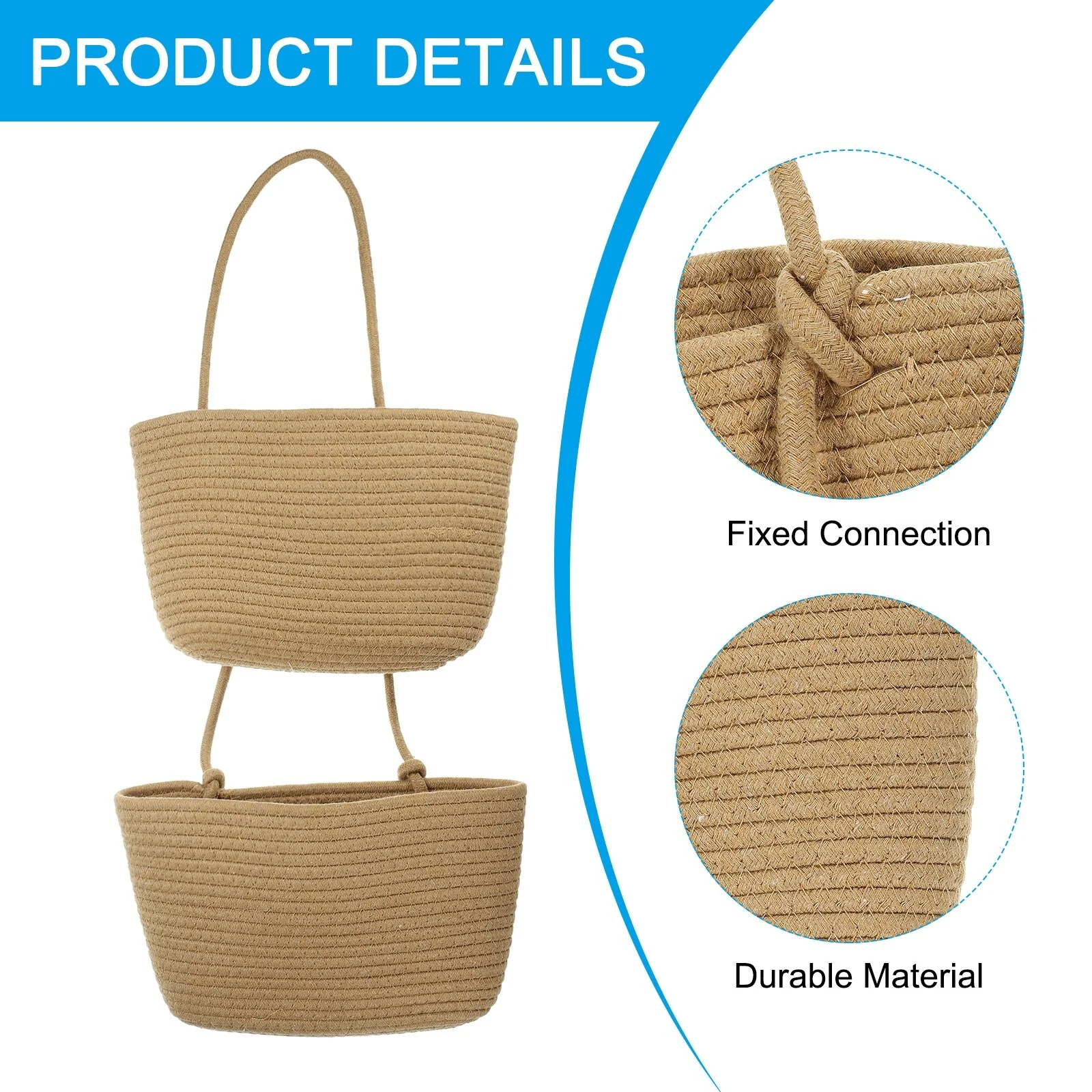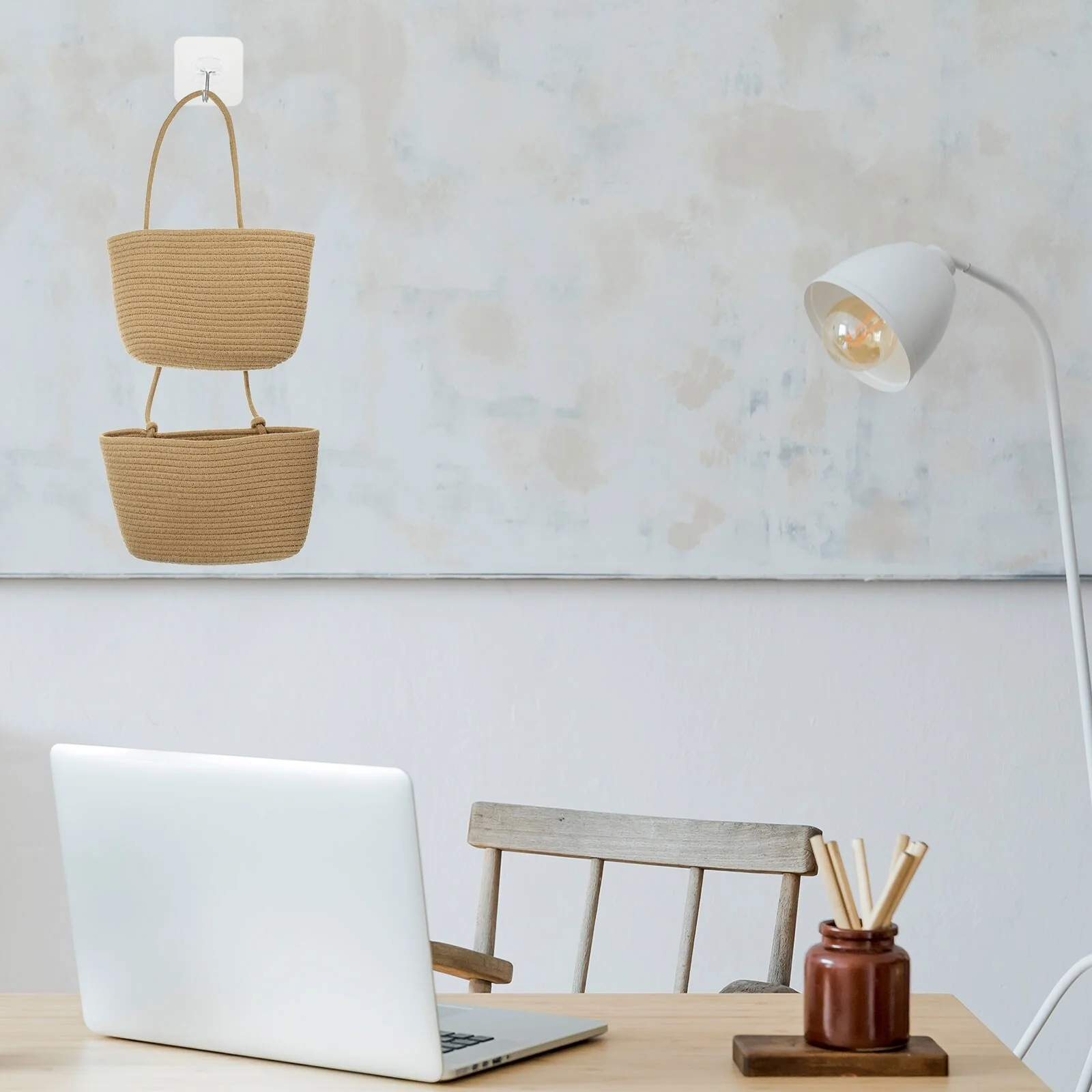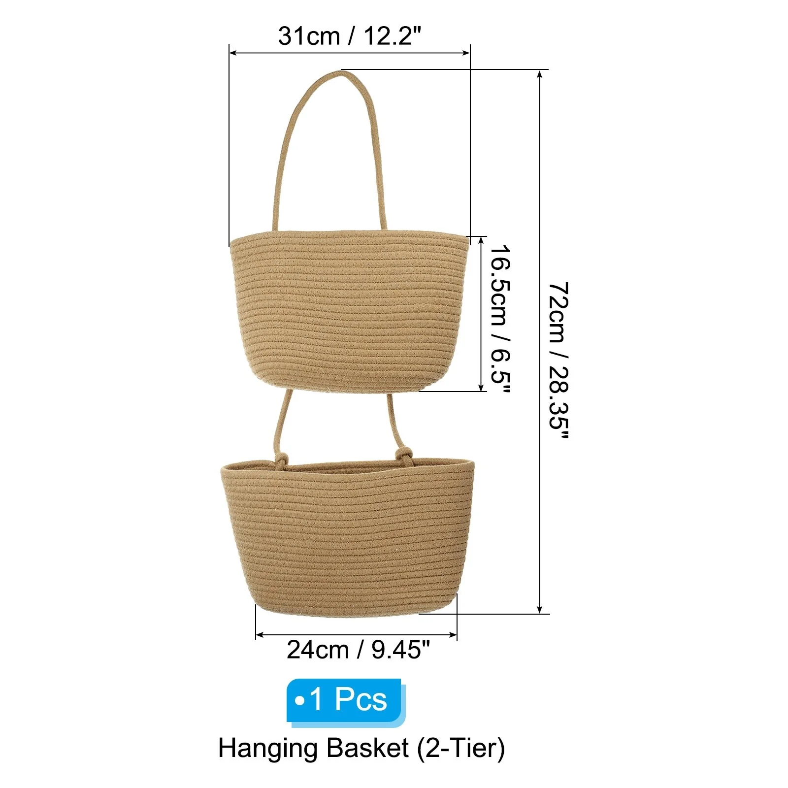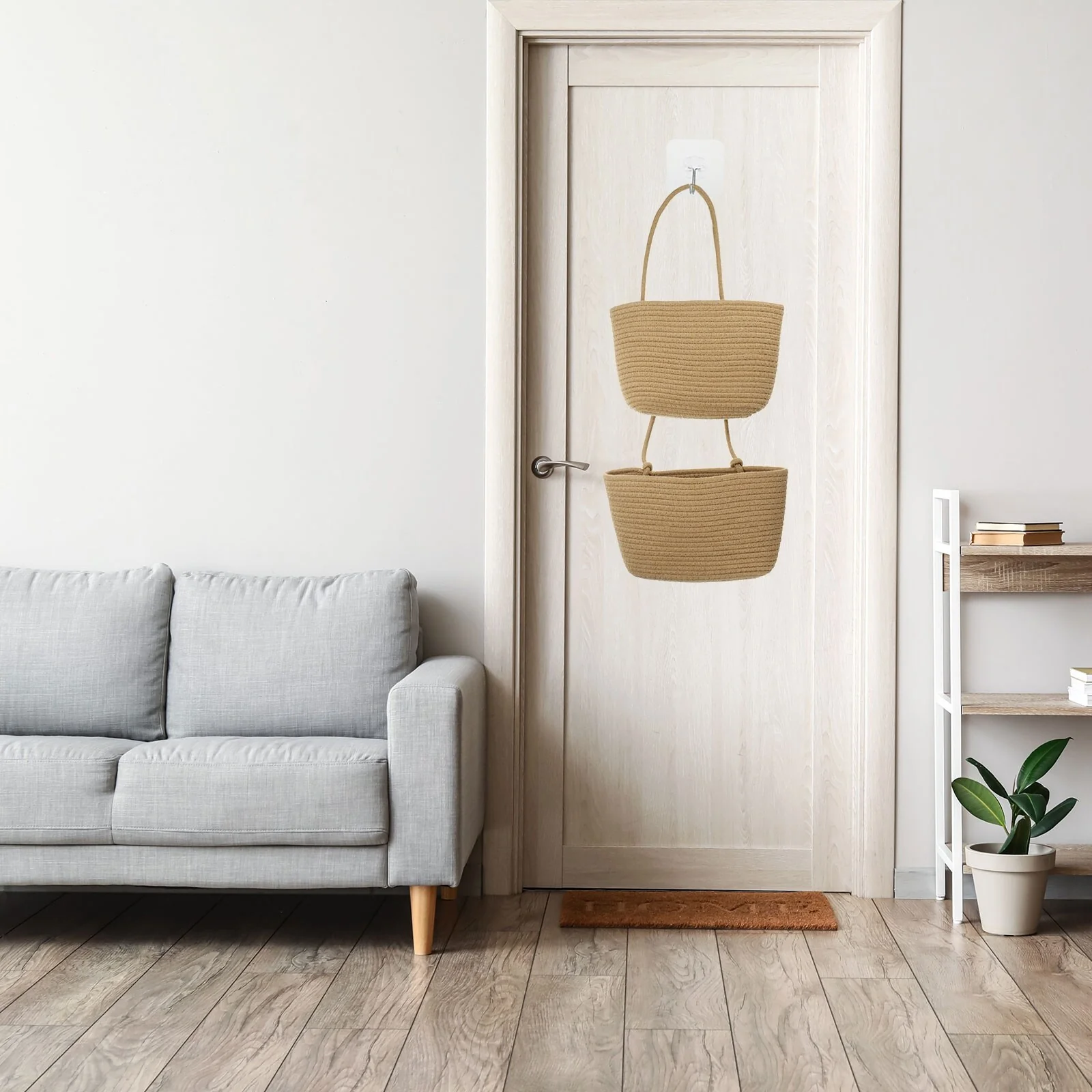 Hanging Basket Over the Door, 2-Tier Hanging Woven Cotton Rope Baskets