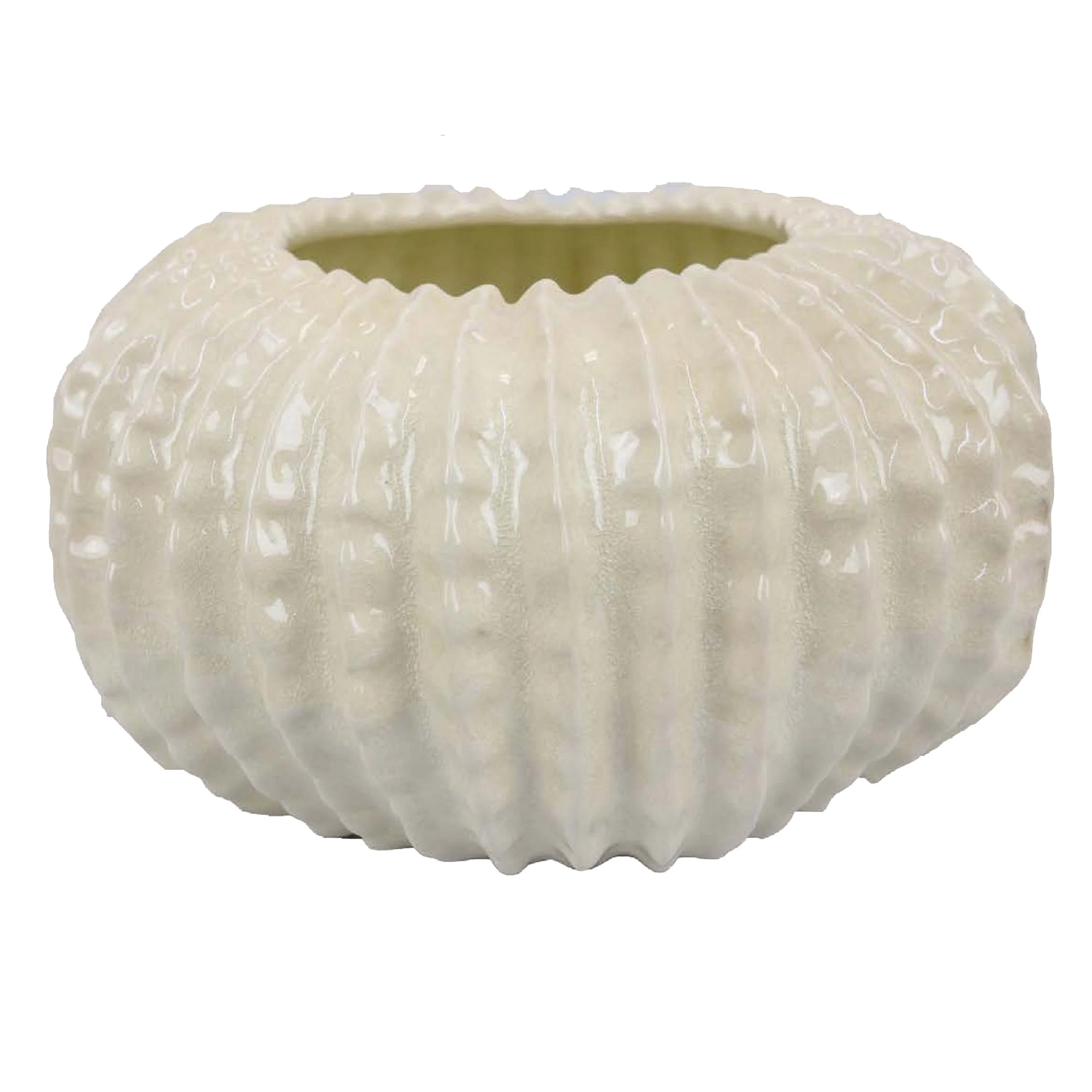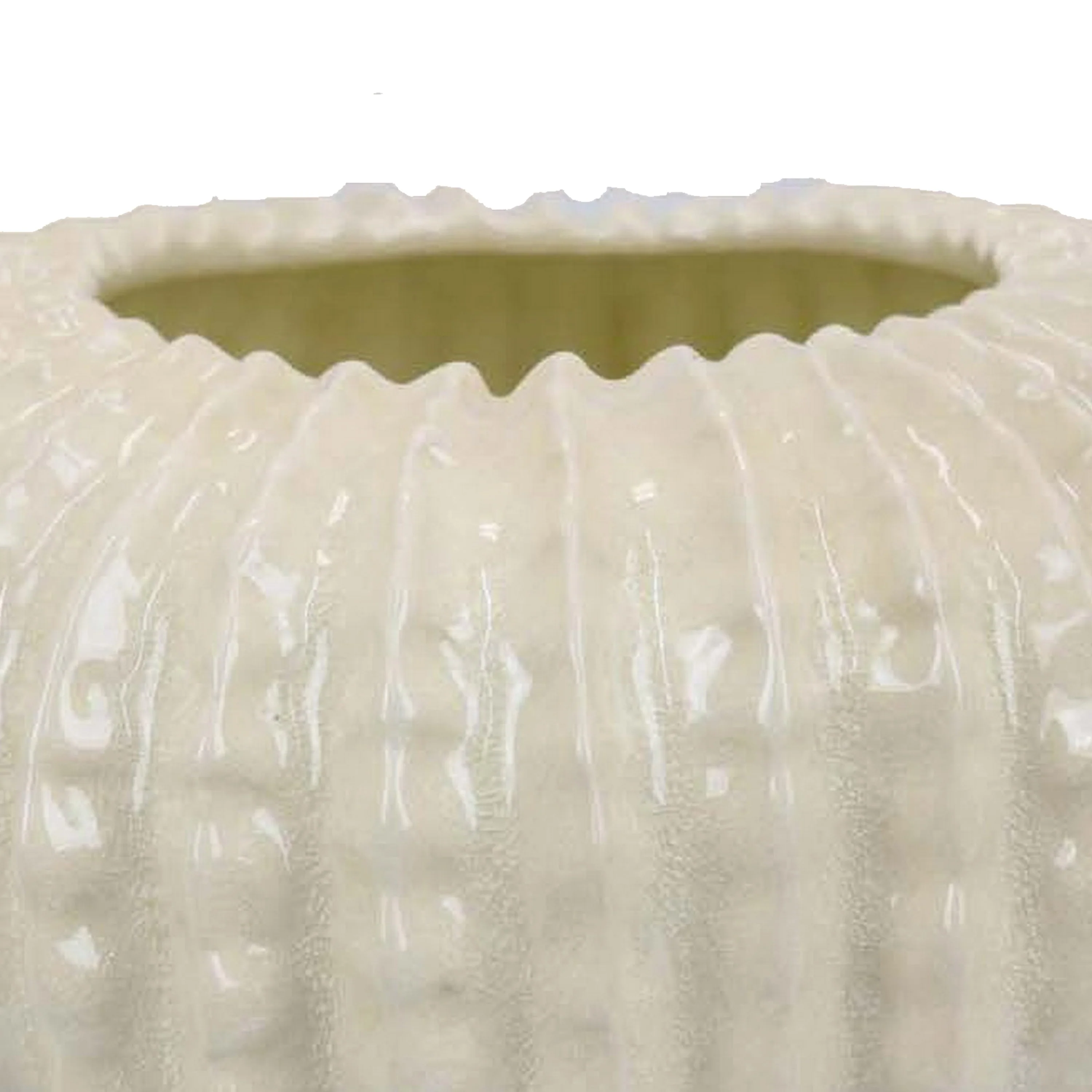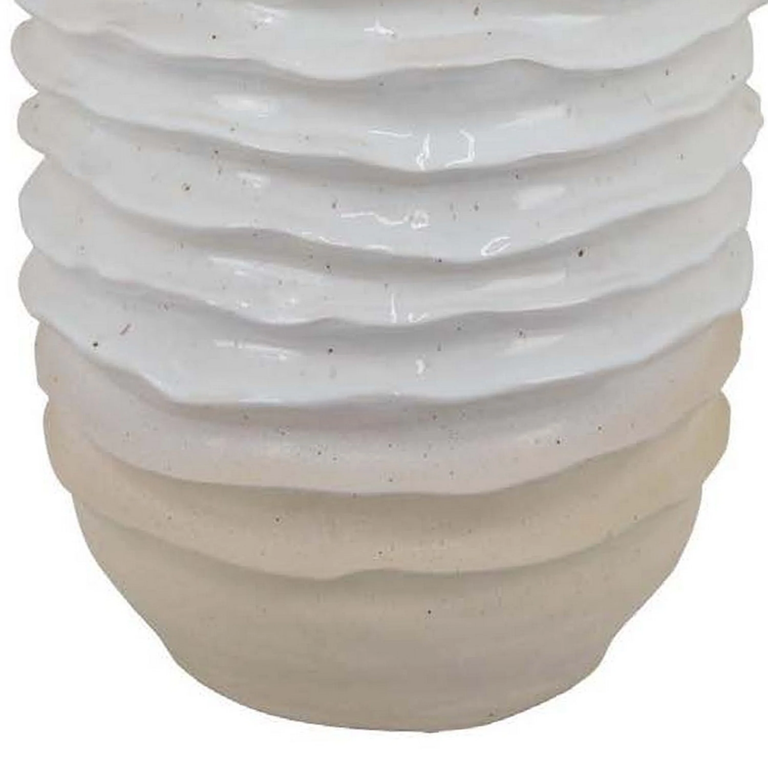 Lezlee Accent Planter, Beige Terracotta, Ridged Textured Urn, 13 Inch