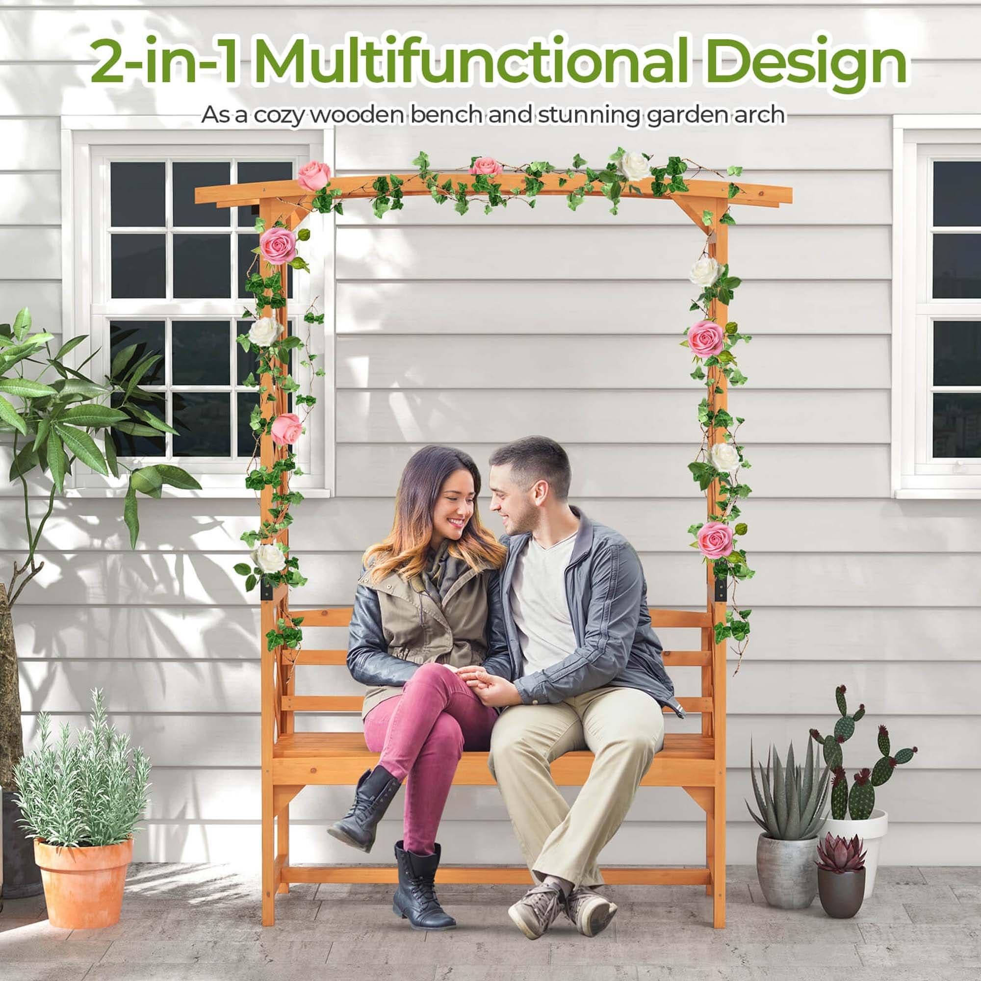 Costway 6.5 FT Tall Patio Garden Arbor with Pergola 2-Seat Bench - See Details