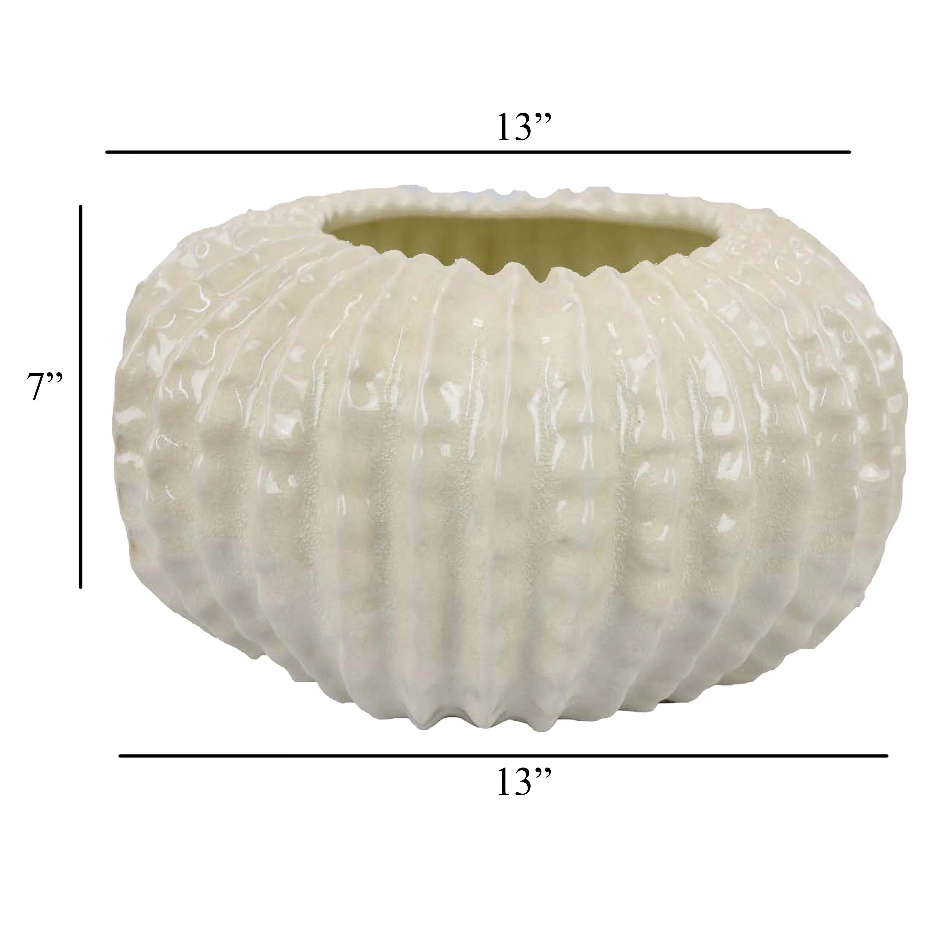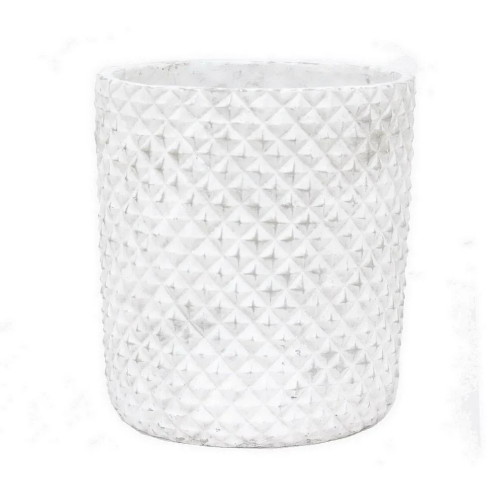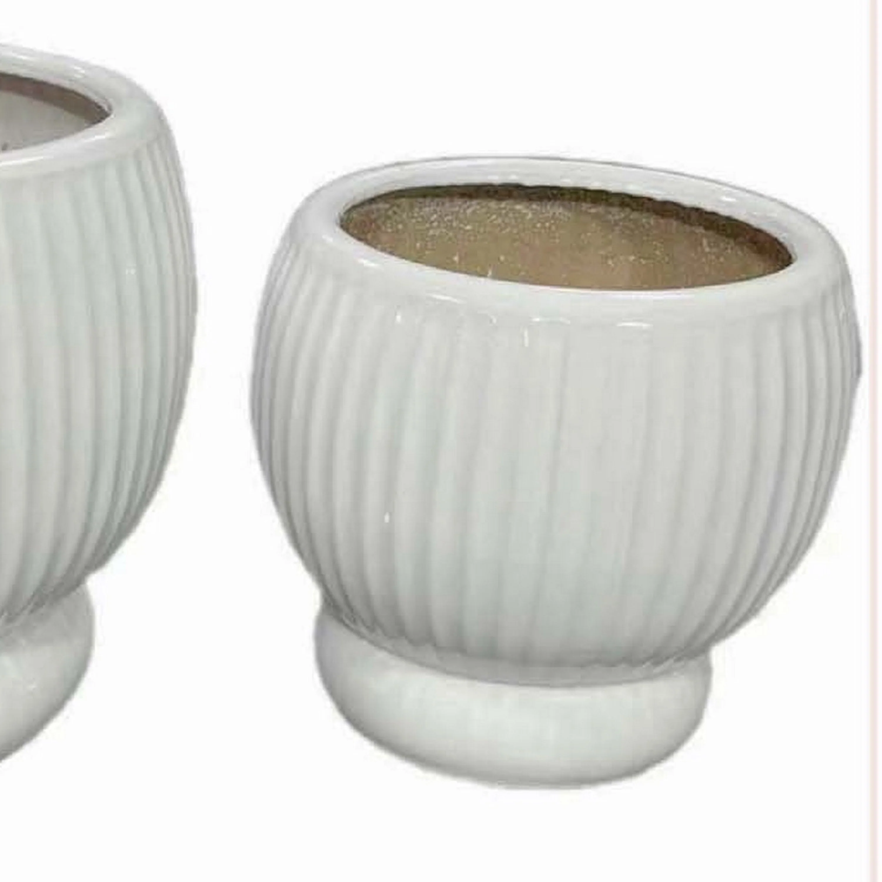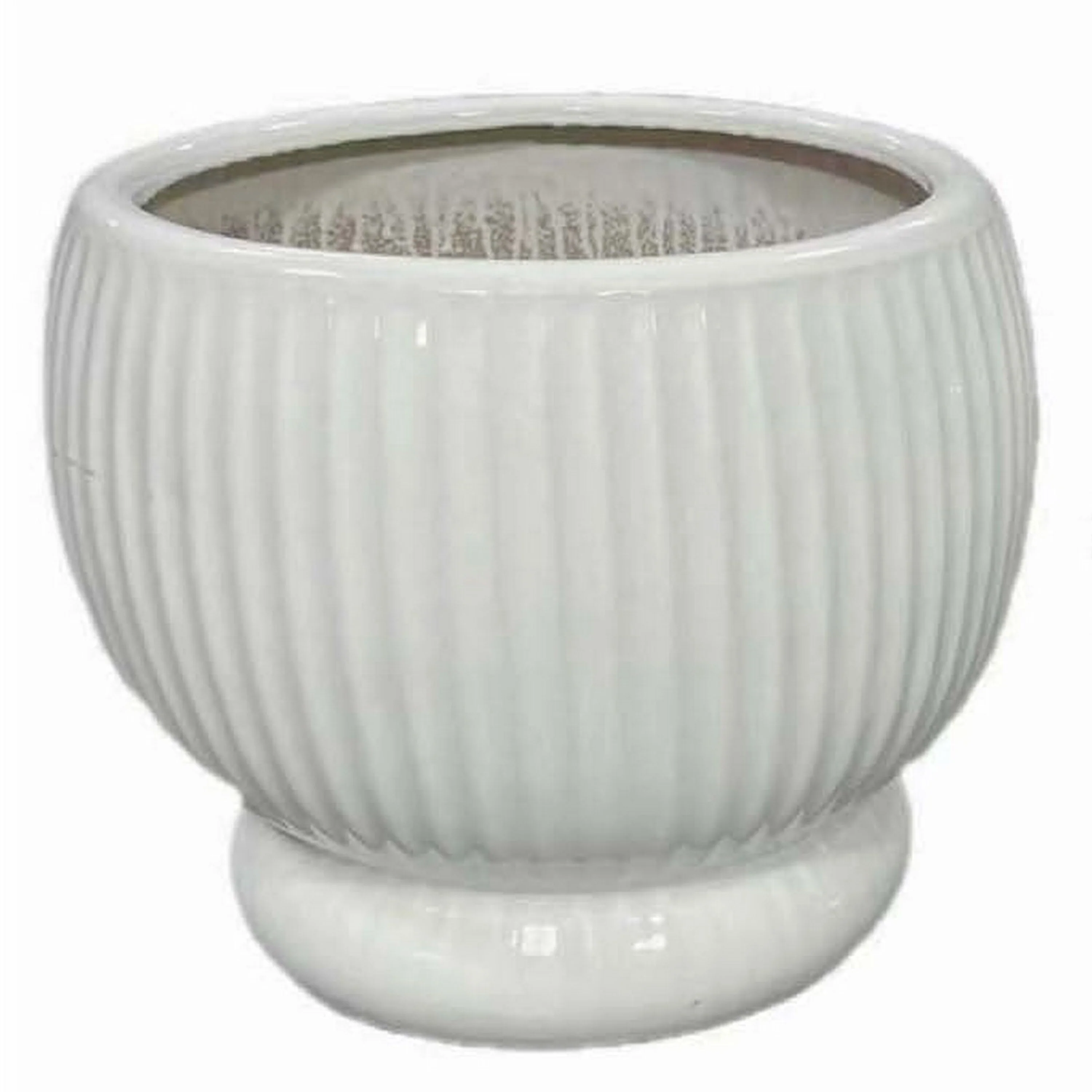 Harry Round Planter with Textured Design, Glossy White Ceramic 13 Inch