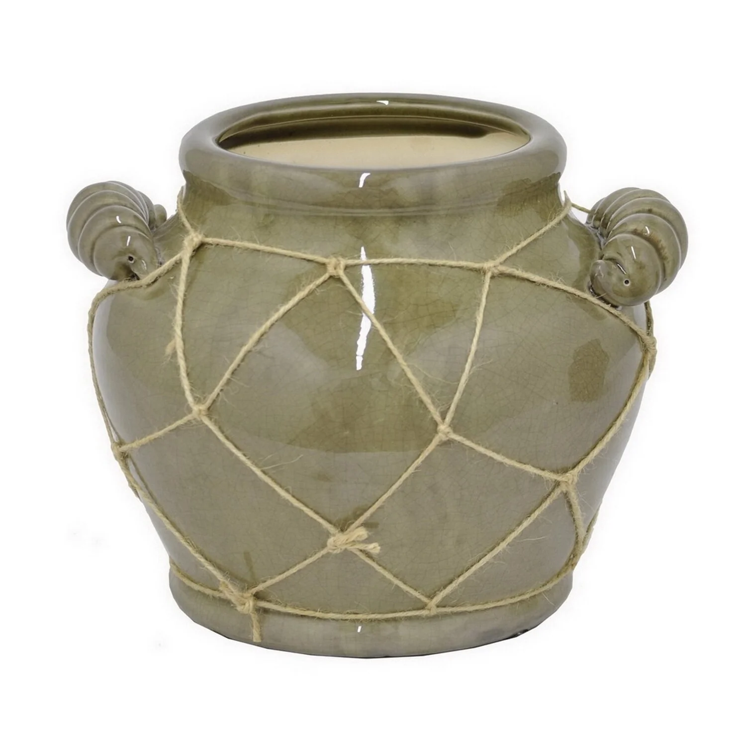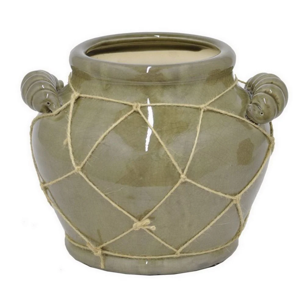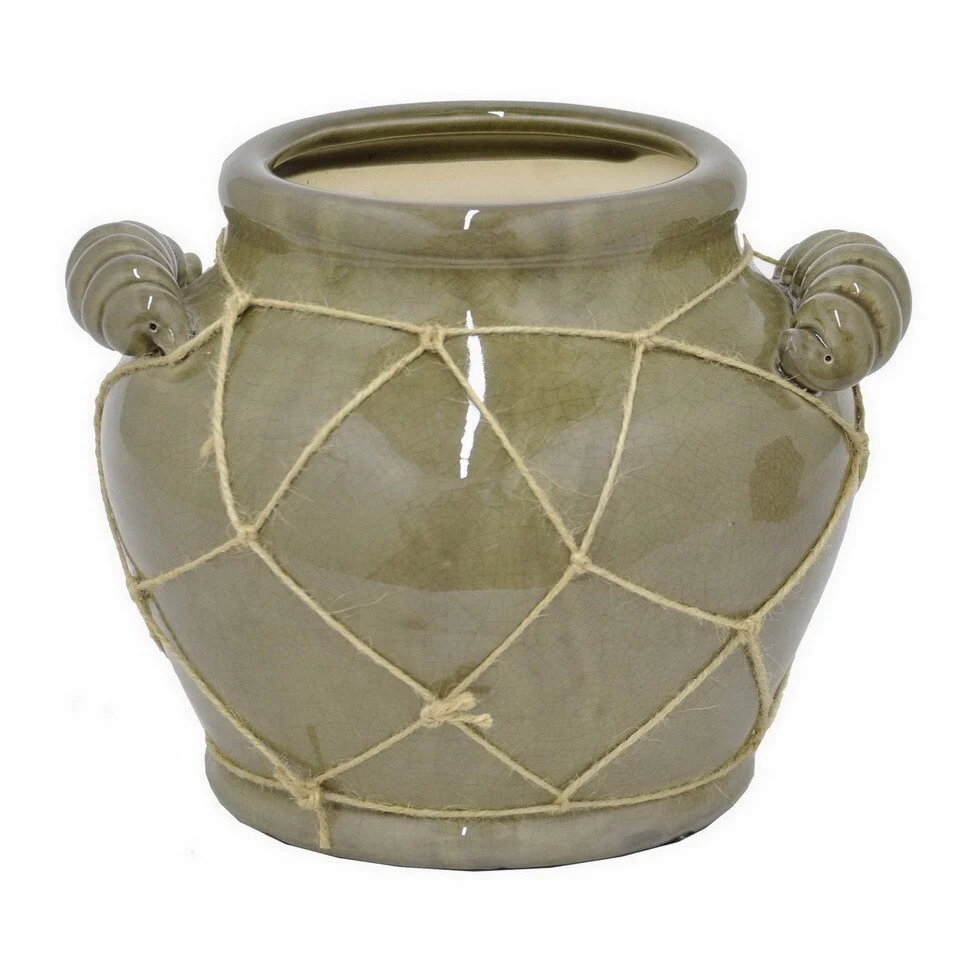 Three Hands Green Ceramic 8-Inch Flower Pot