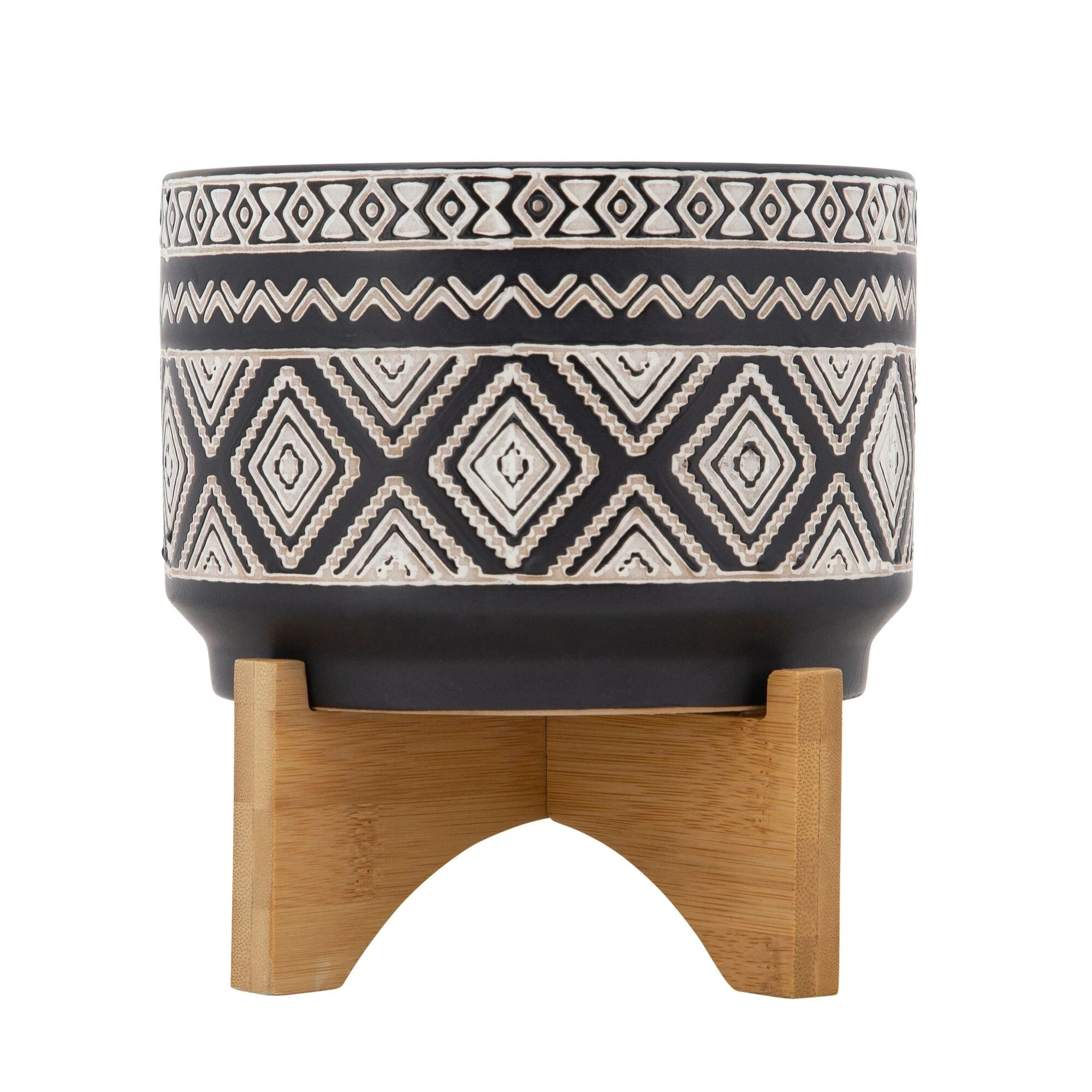Diamond Ceramic Planter on Stand - 8" - Black and Brown