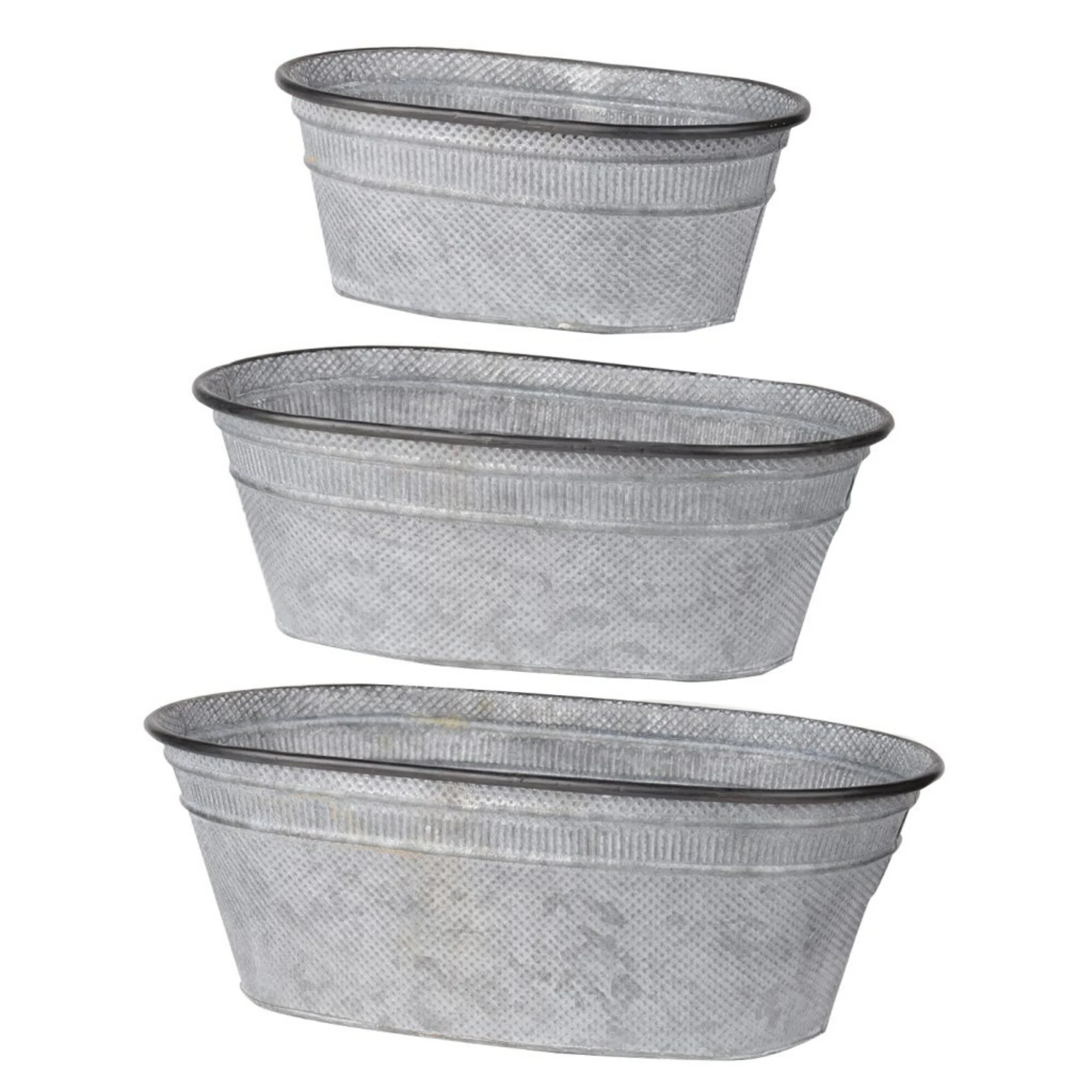 Vintage-Style Oval Metal Tub Planters - 18" - Set of 3