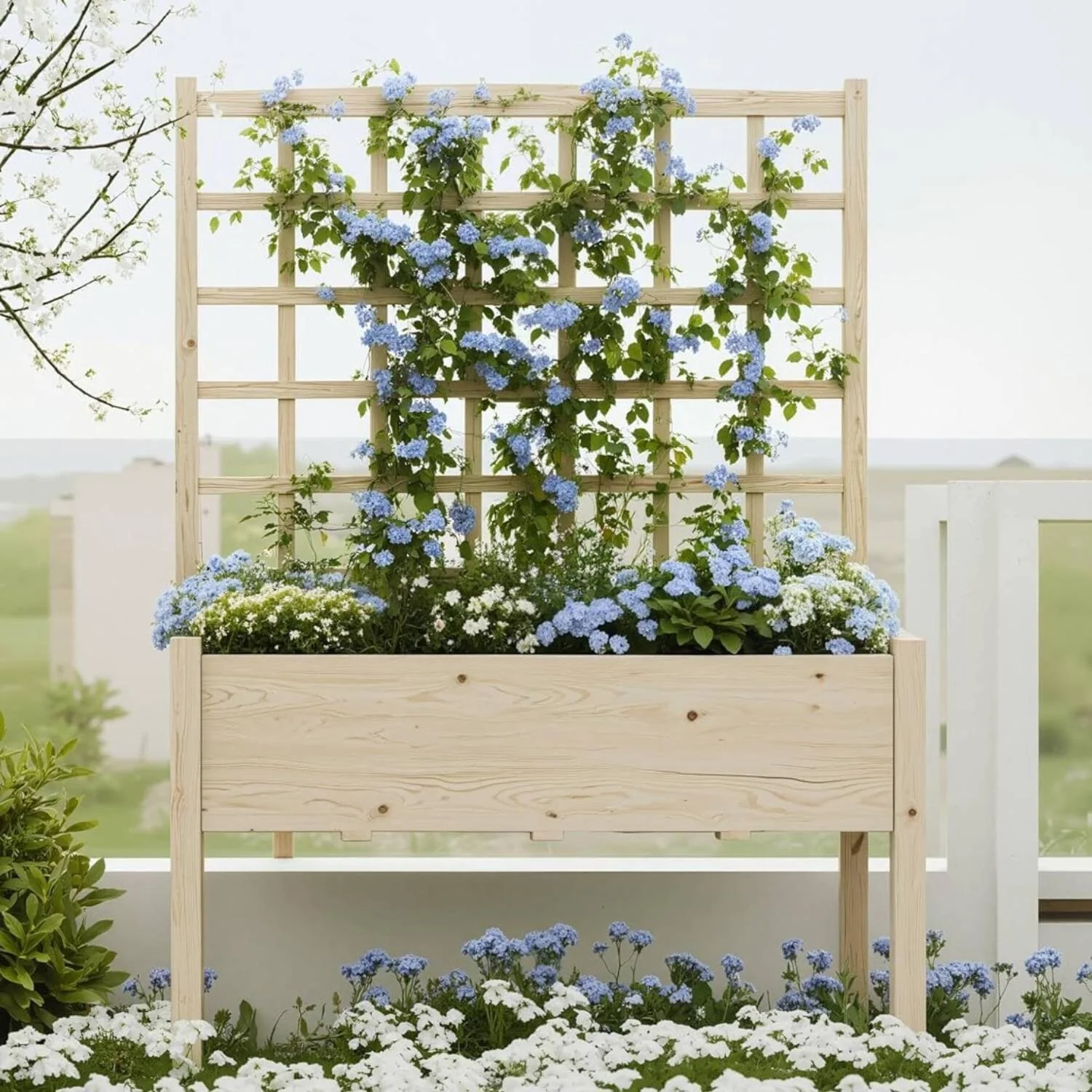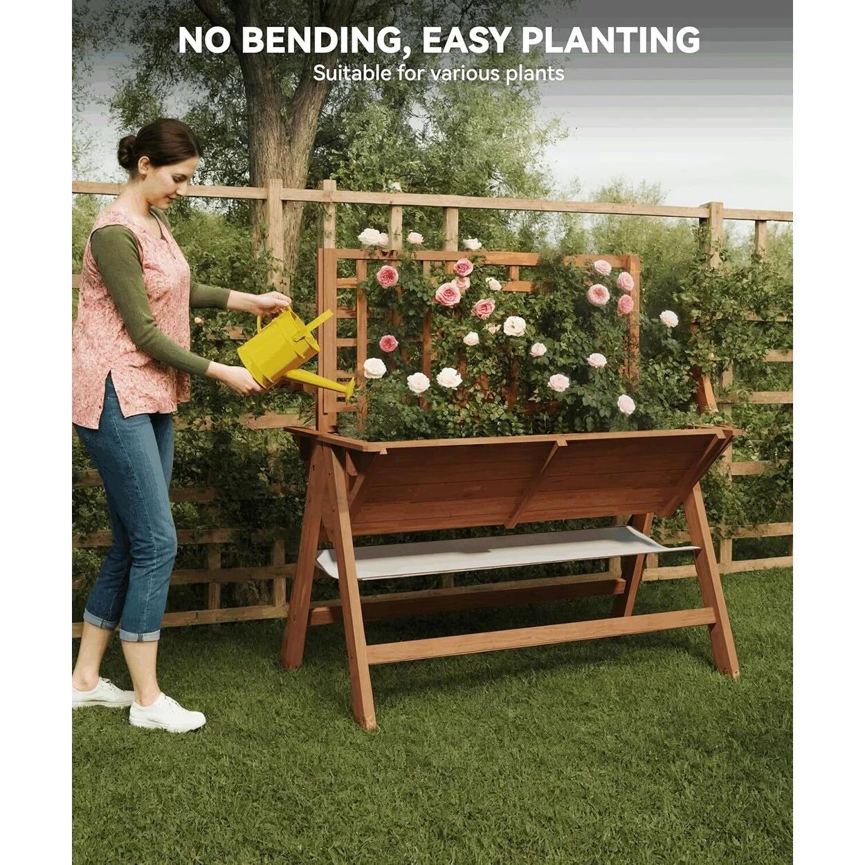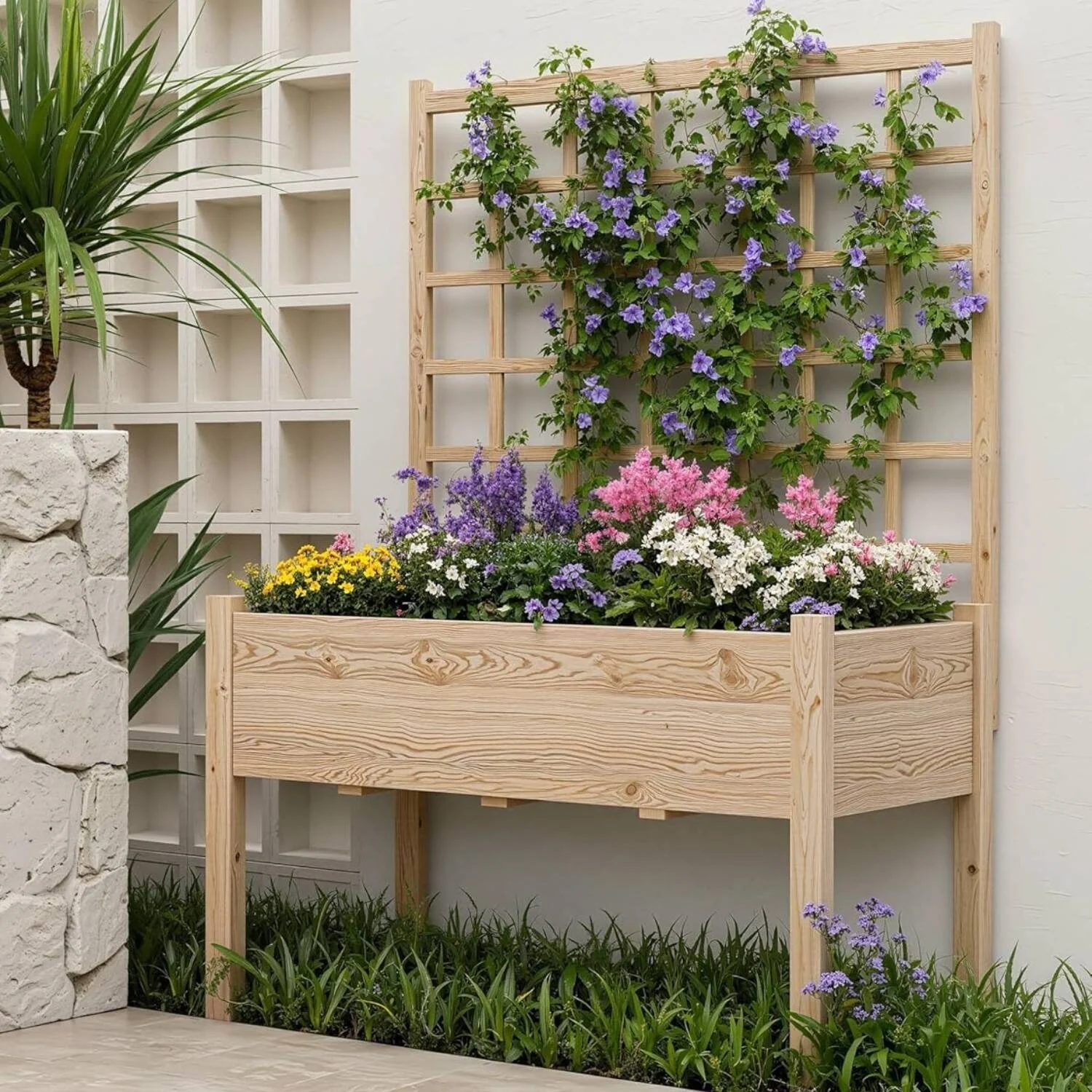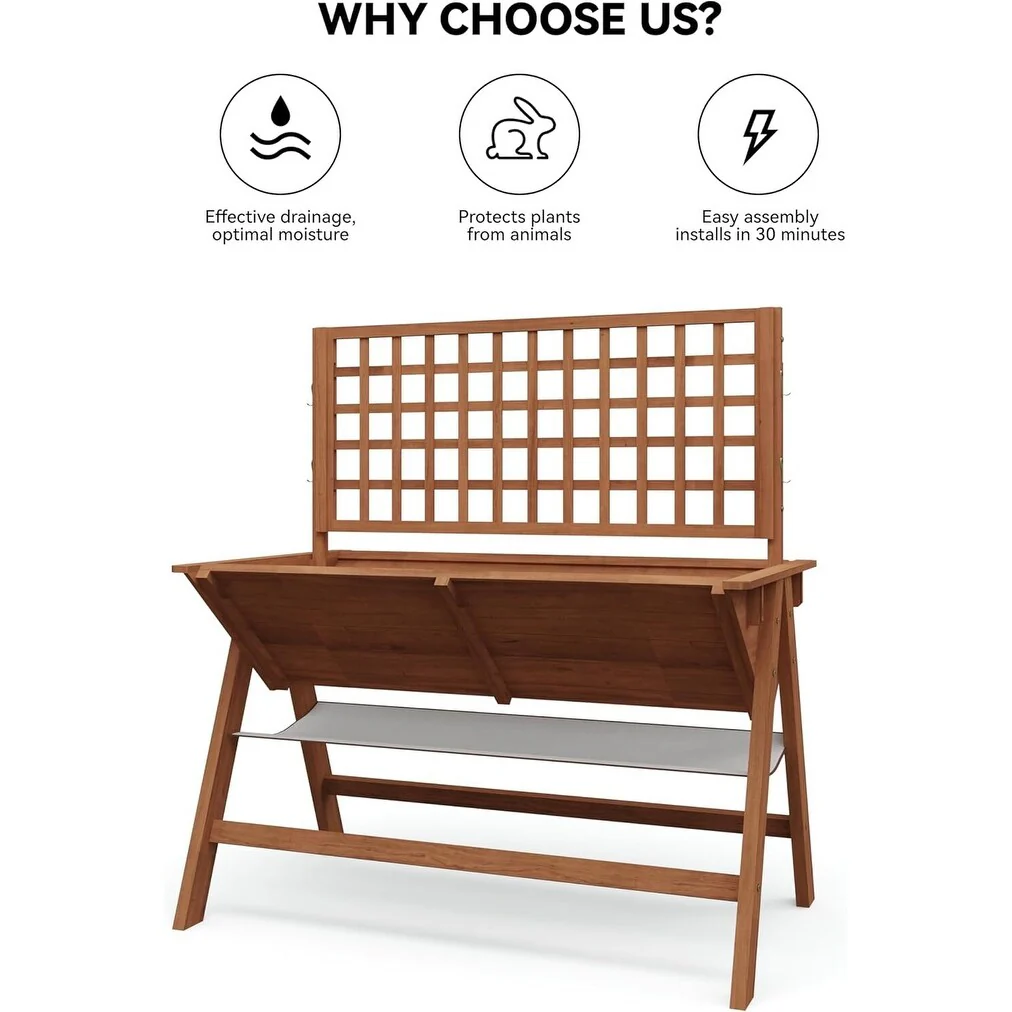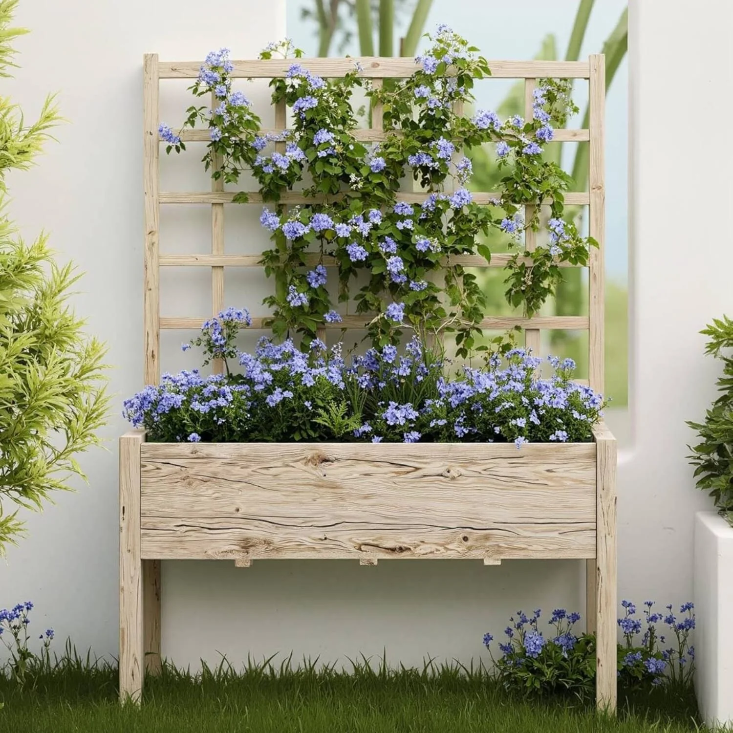 Wooden Garden Planter with Trellis & Stand - 1 PC