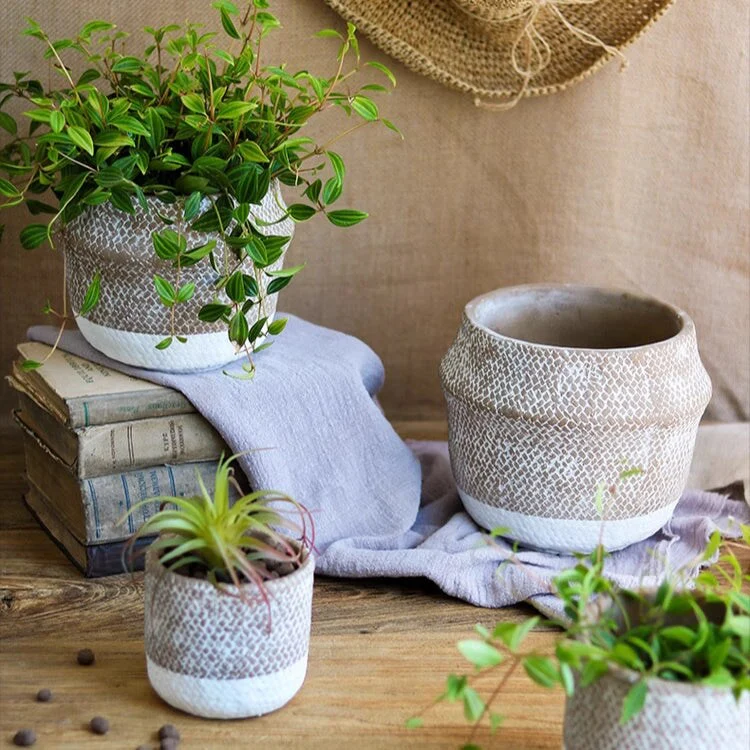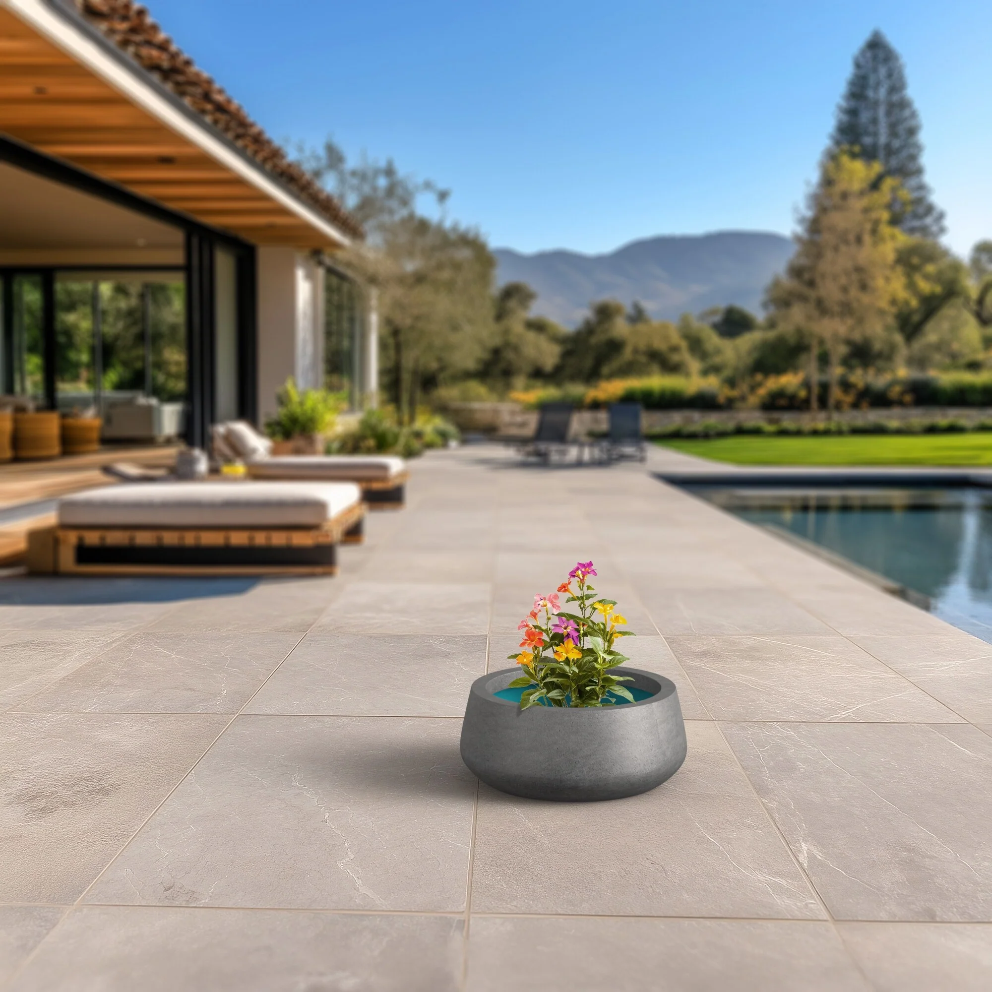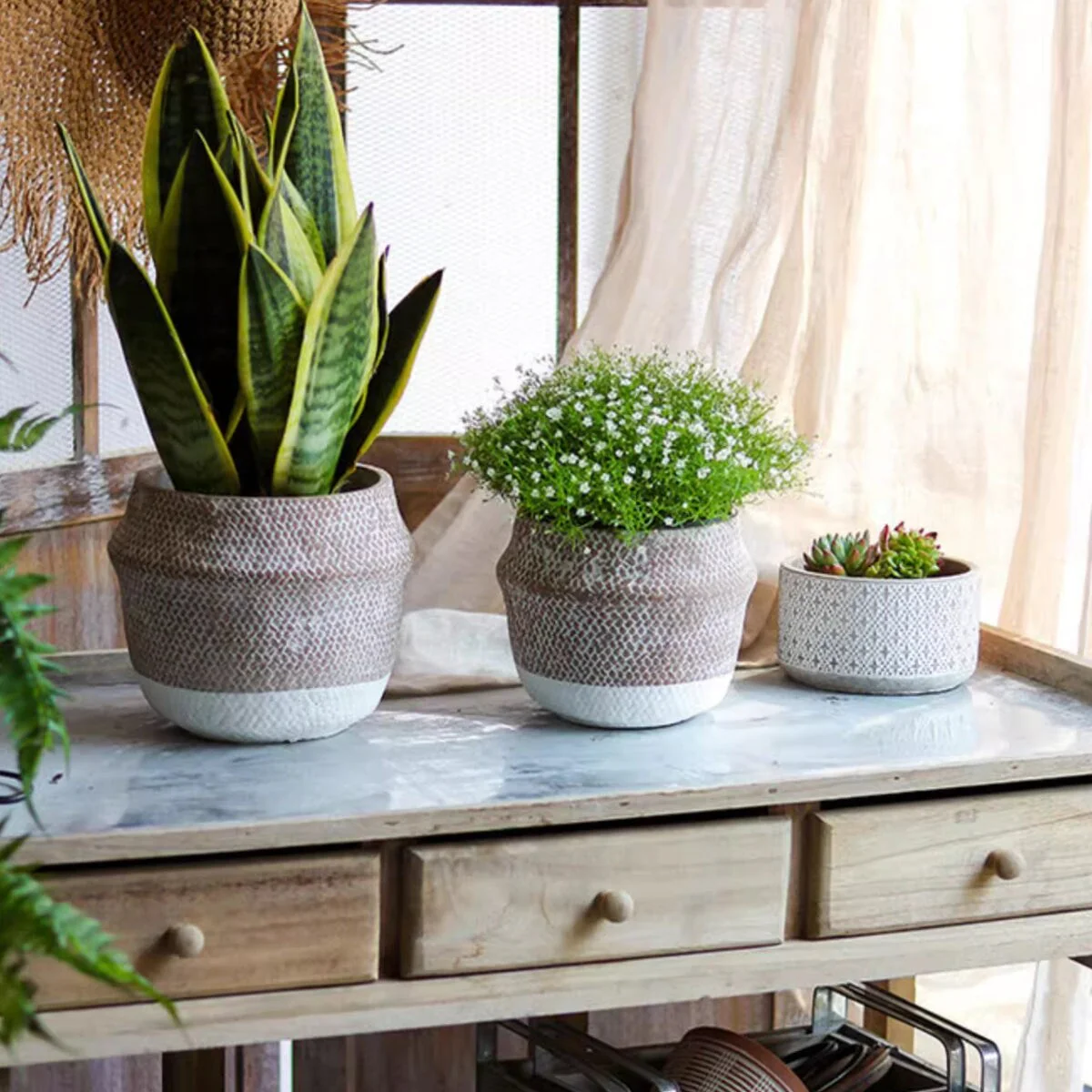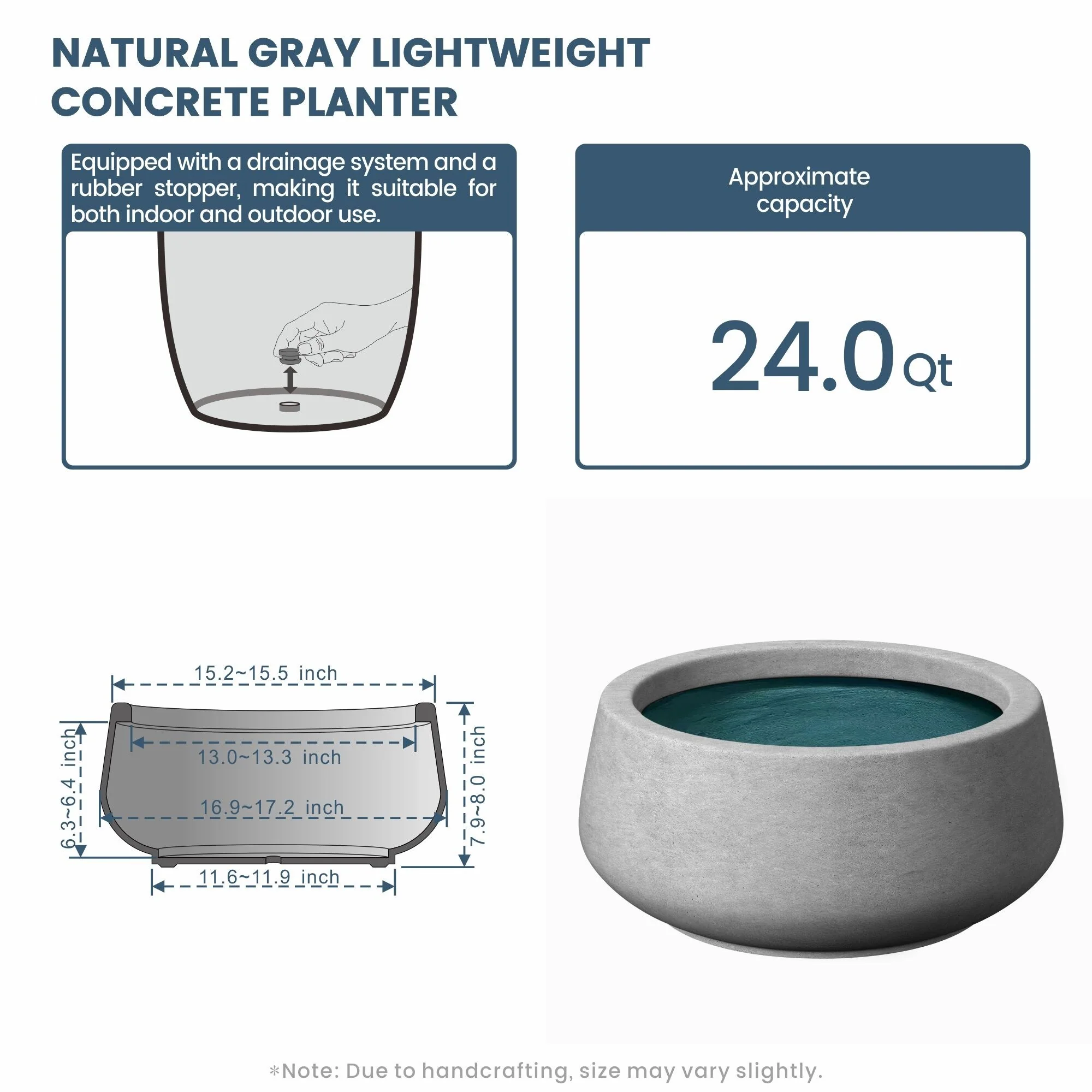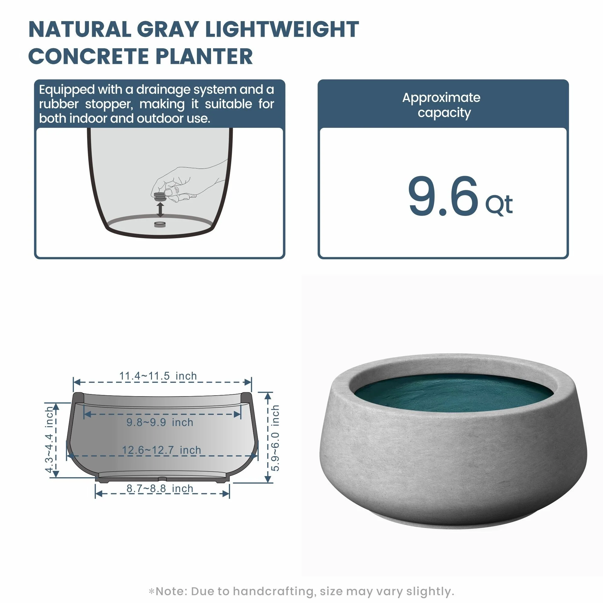 Tall Concrete Round Plant Pots / Large Indoor and Outdoor flower Planters with drainage holes