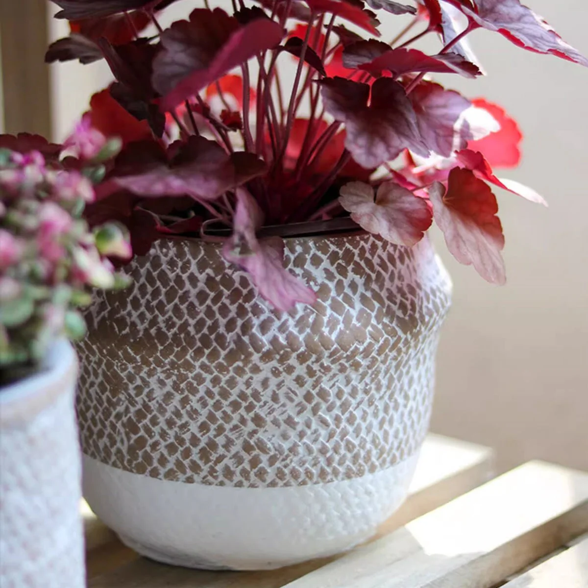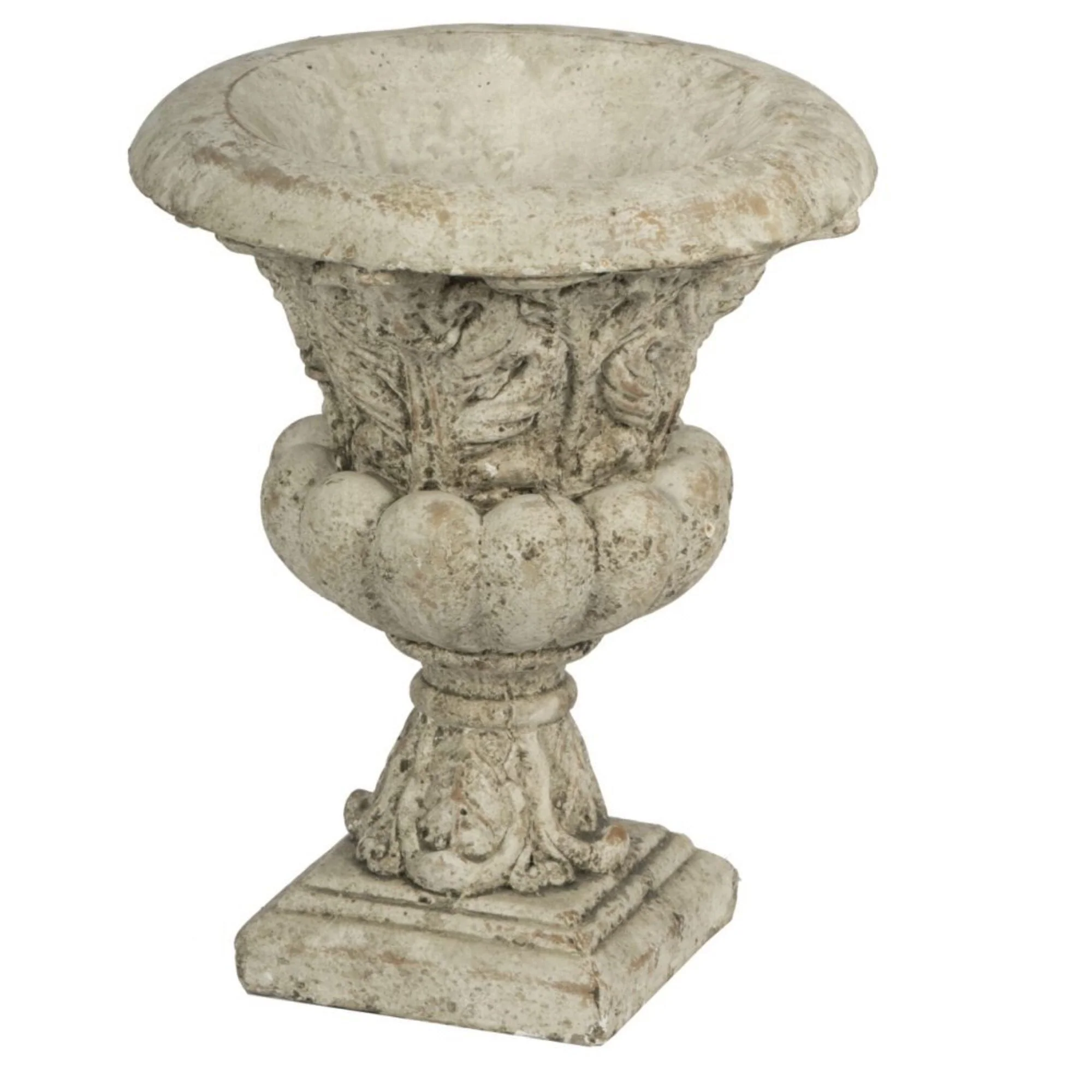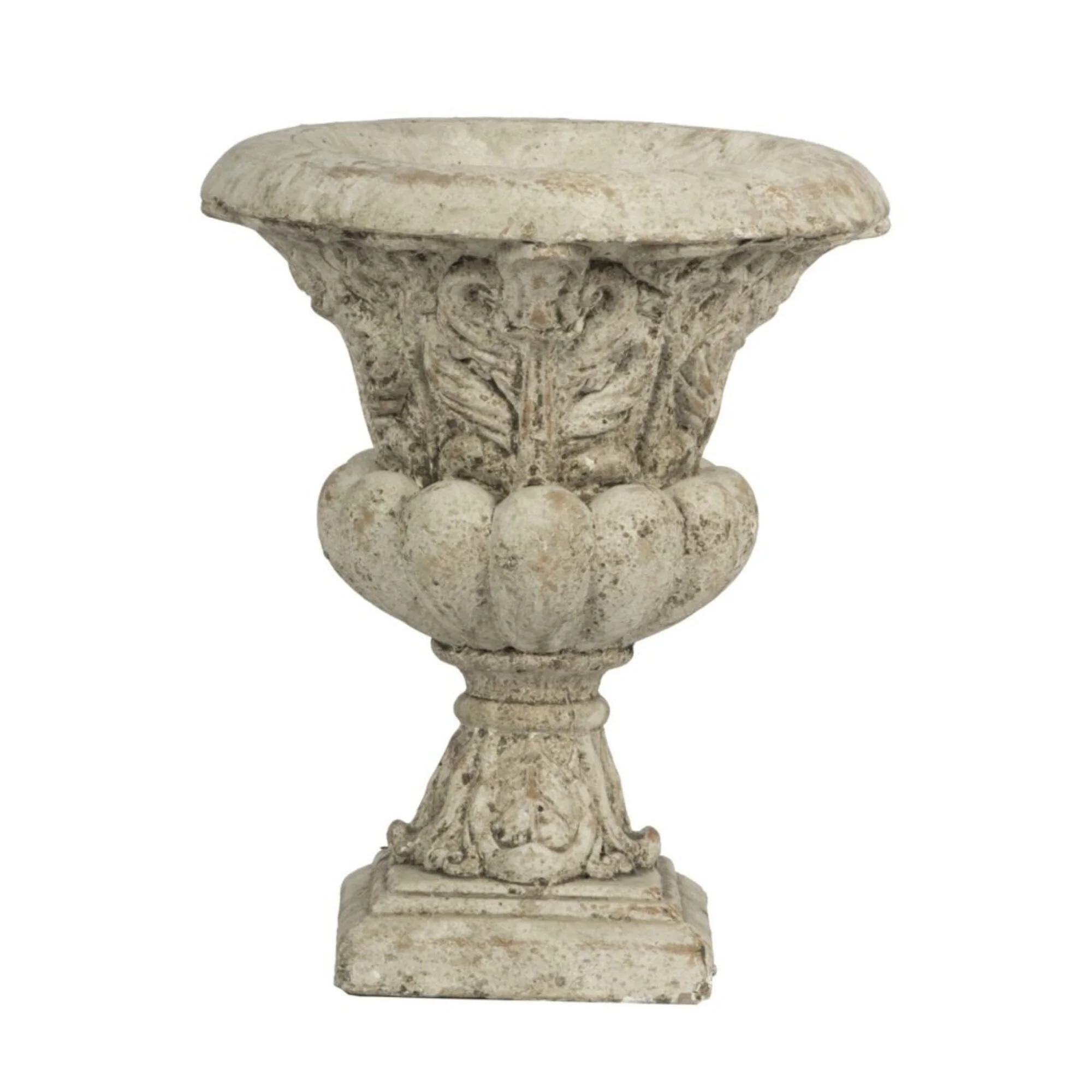 12" White and Brown Ornate Classic Vintage Garden Urn