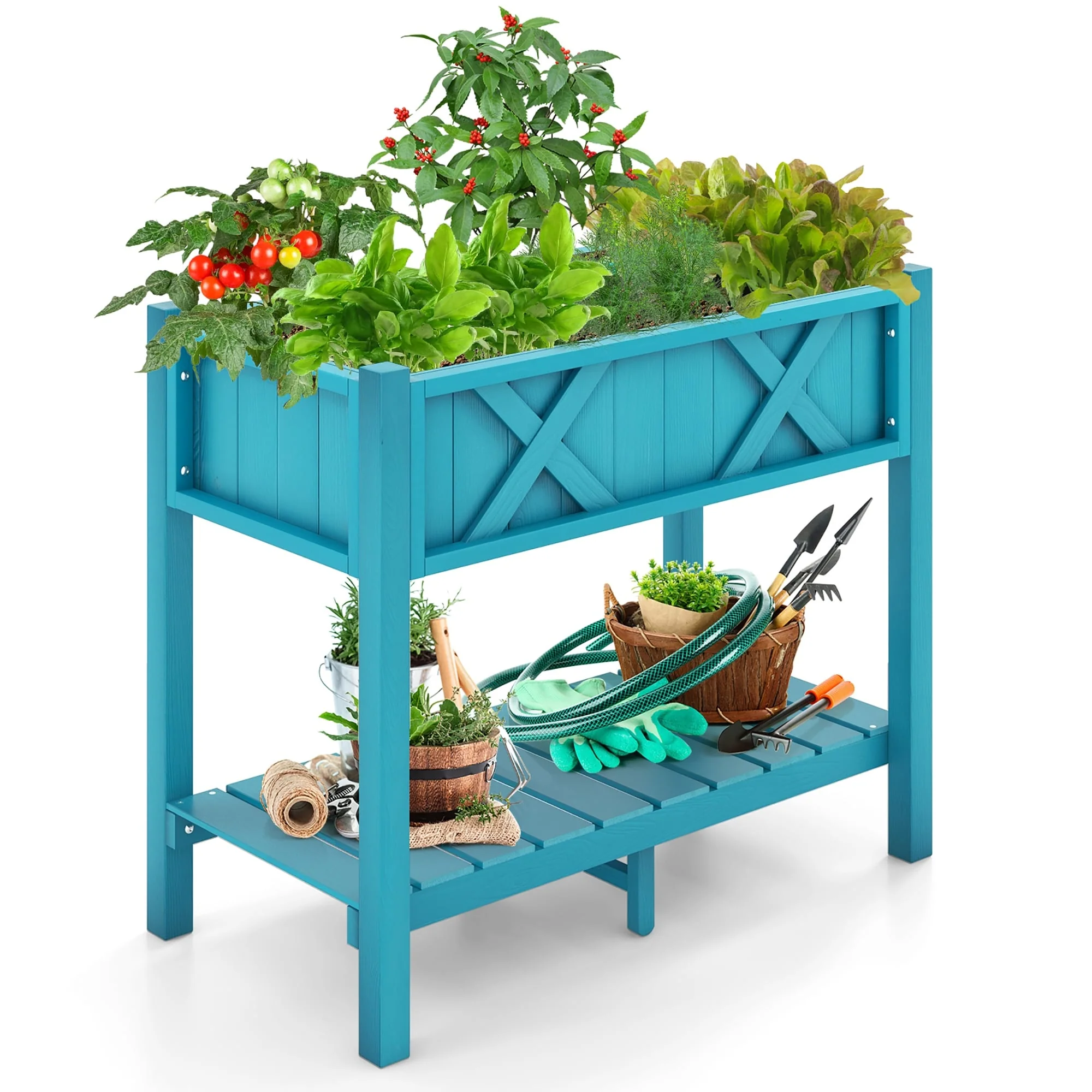 Gymax HIPS Raised Garden Bed Poly Wood Elevated Planter Box w/ Legs &