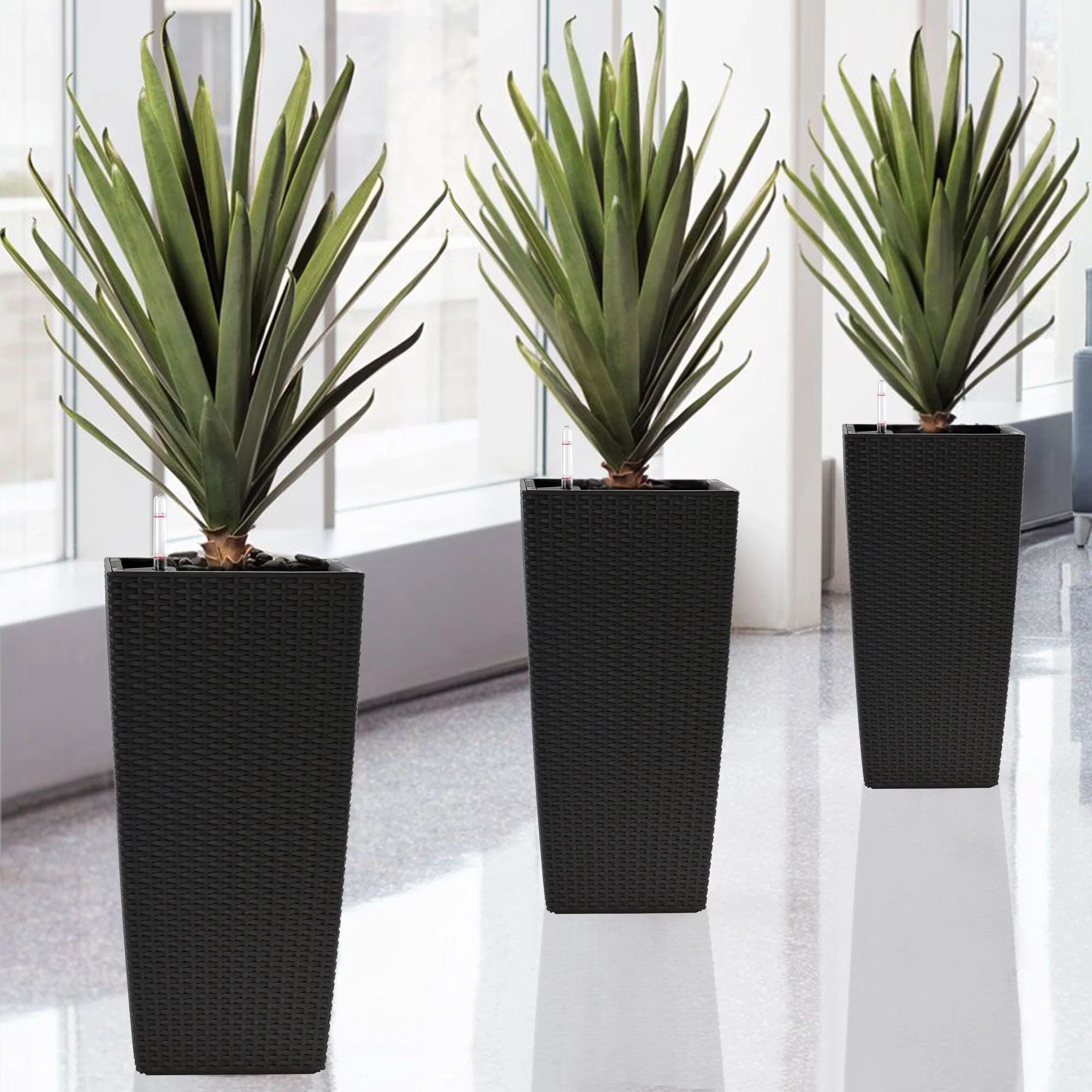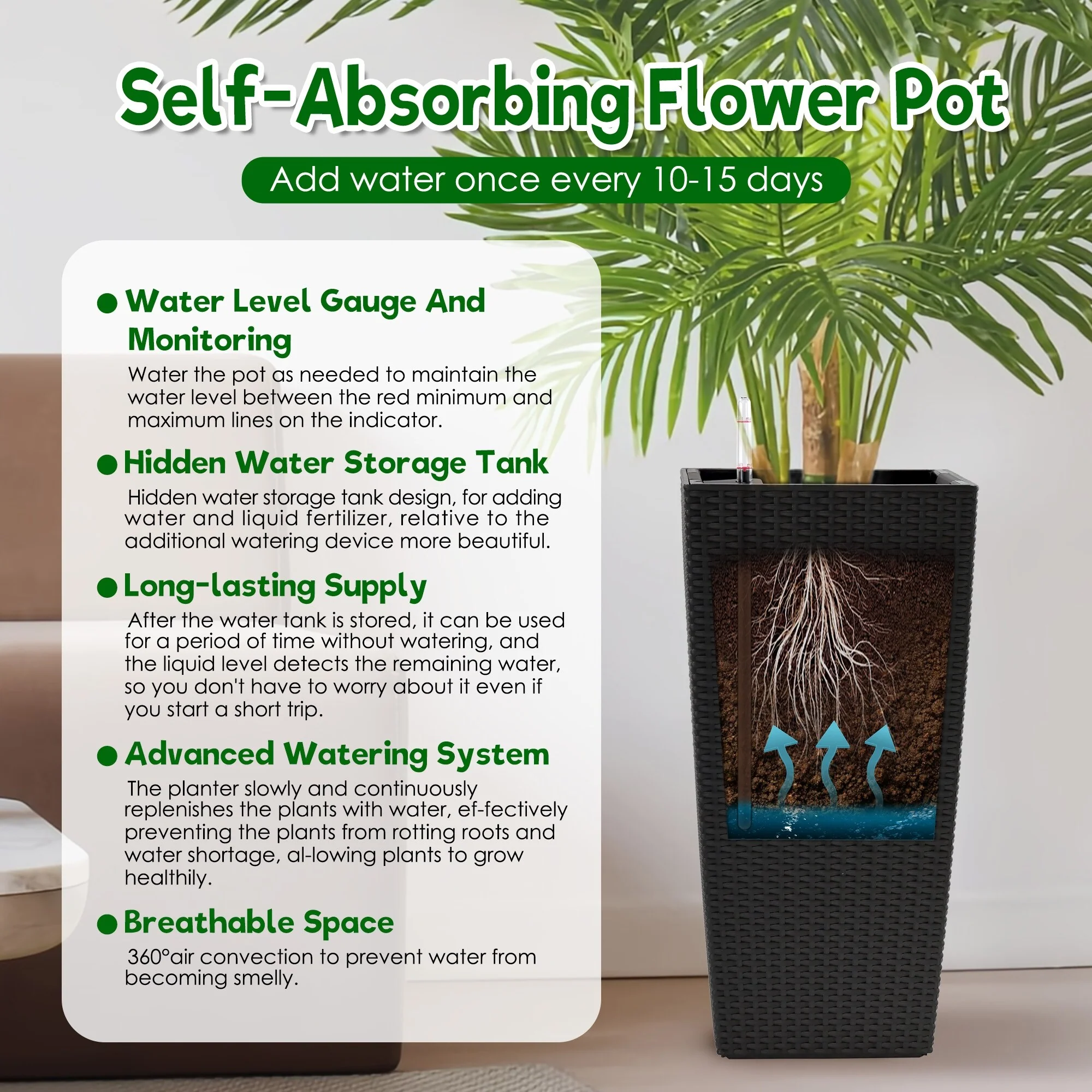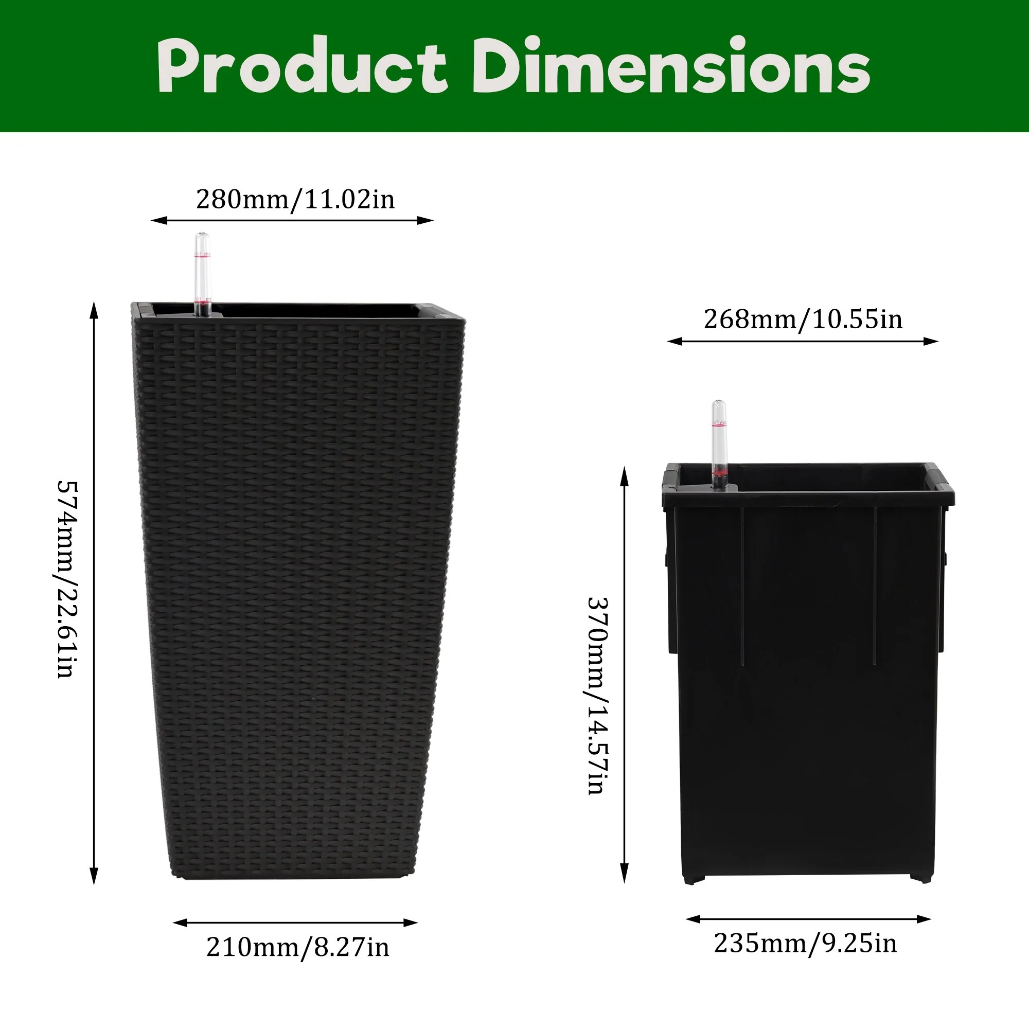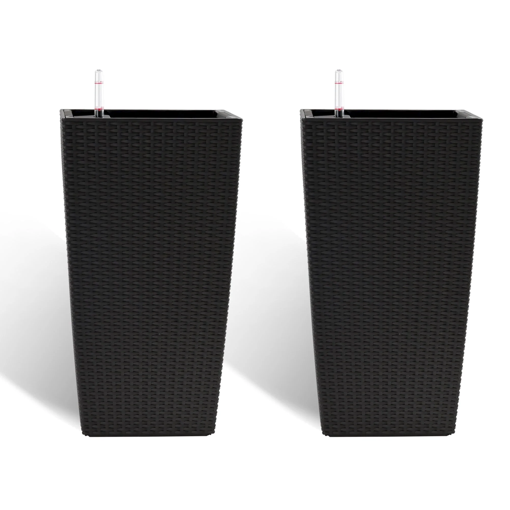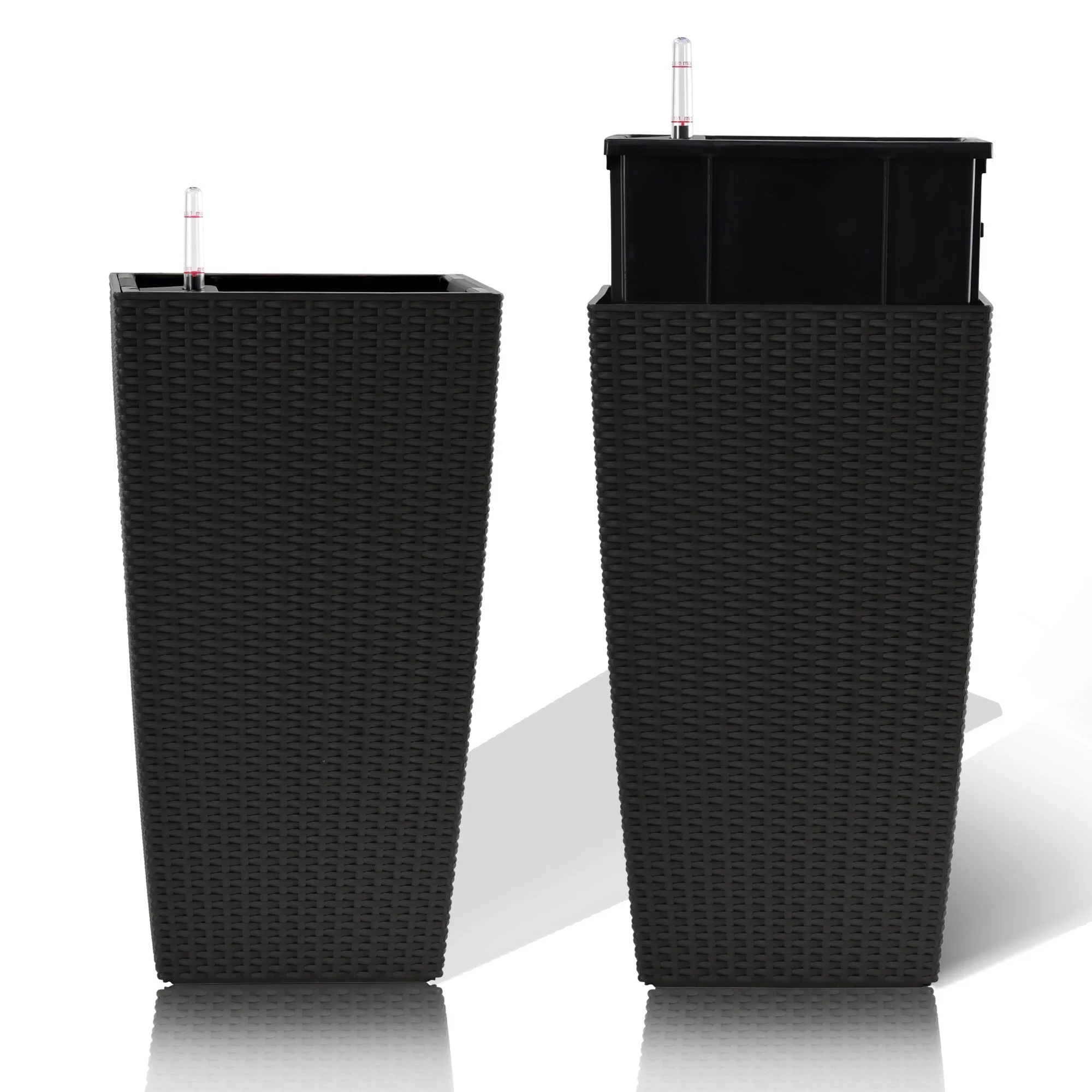 Square Planter for Indoor or Outdoor Use, 22-Inch High Faux Rattan Design Planter with Automatic Watering System (Pack of 2)