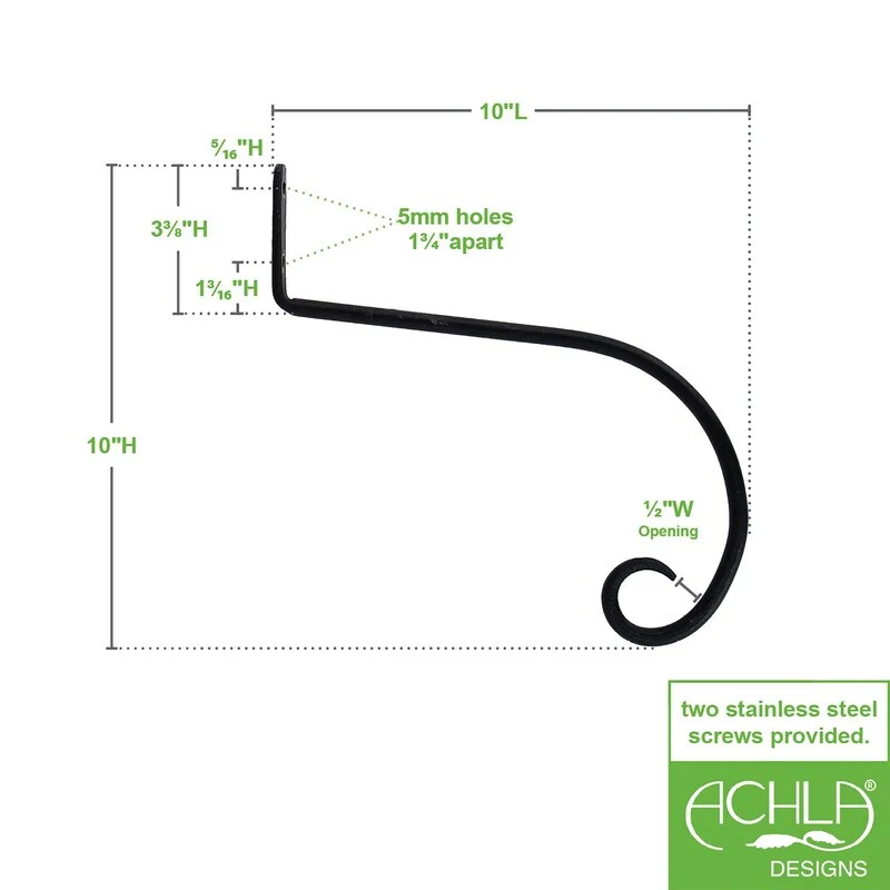 Achla Designs Set of 2 Outdoor Garden Downturned Hanger Hooks, 10 Inch Long, Black Powder Coat Finish