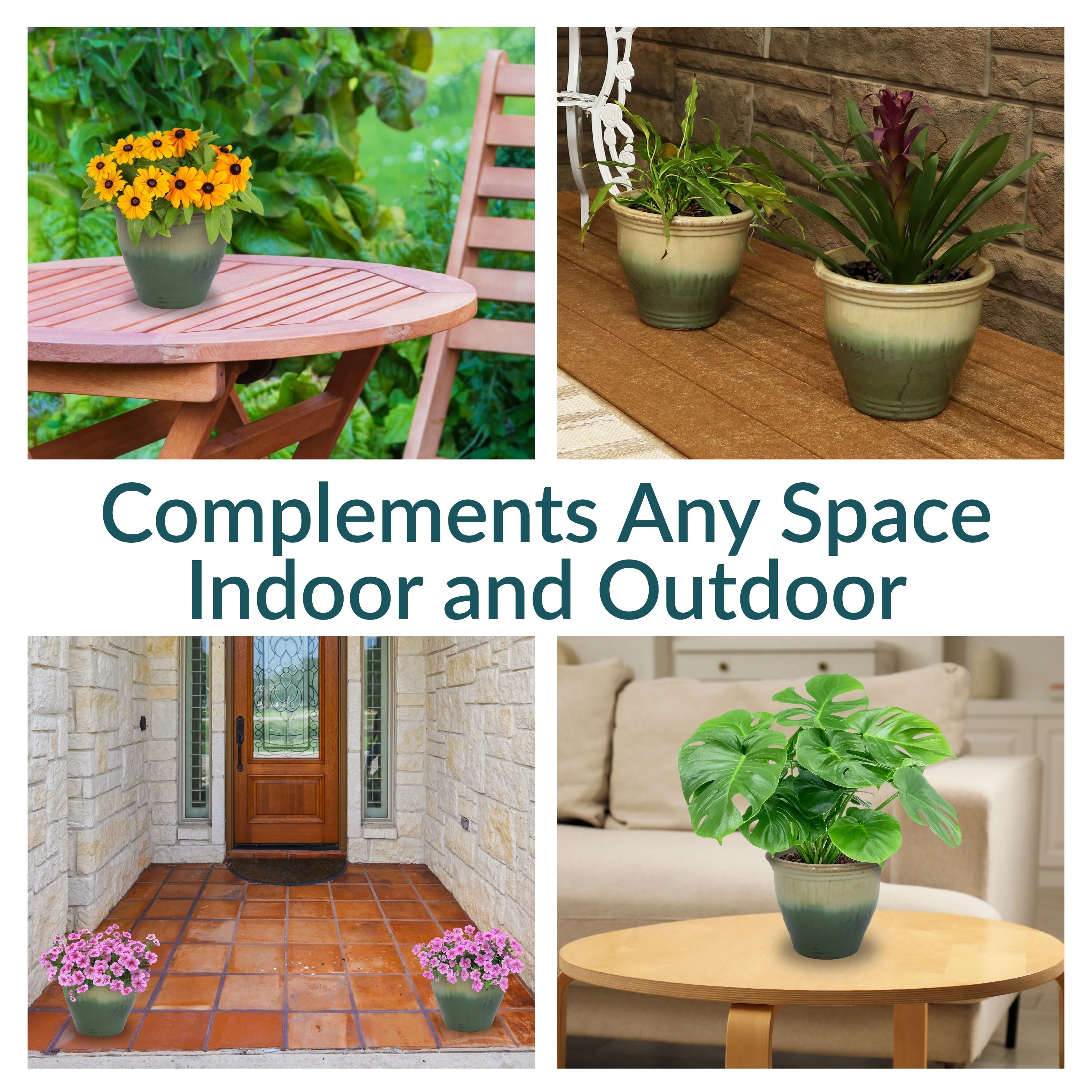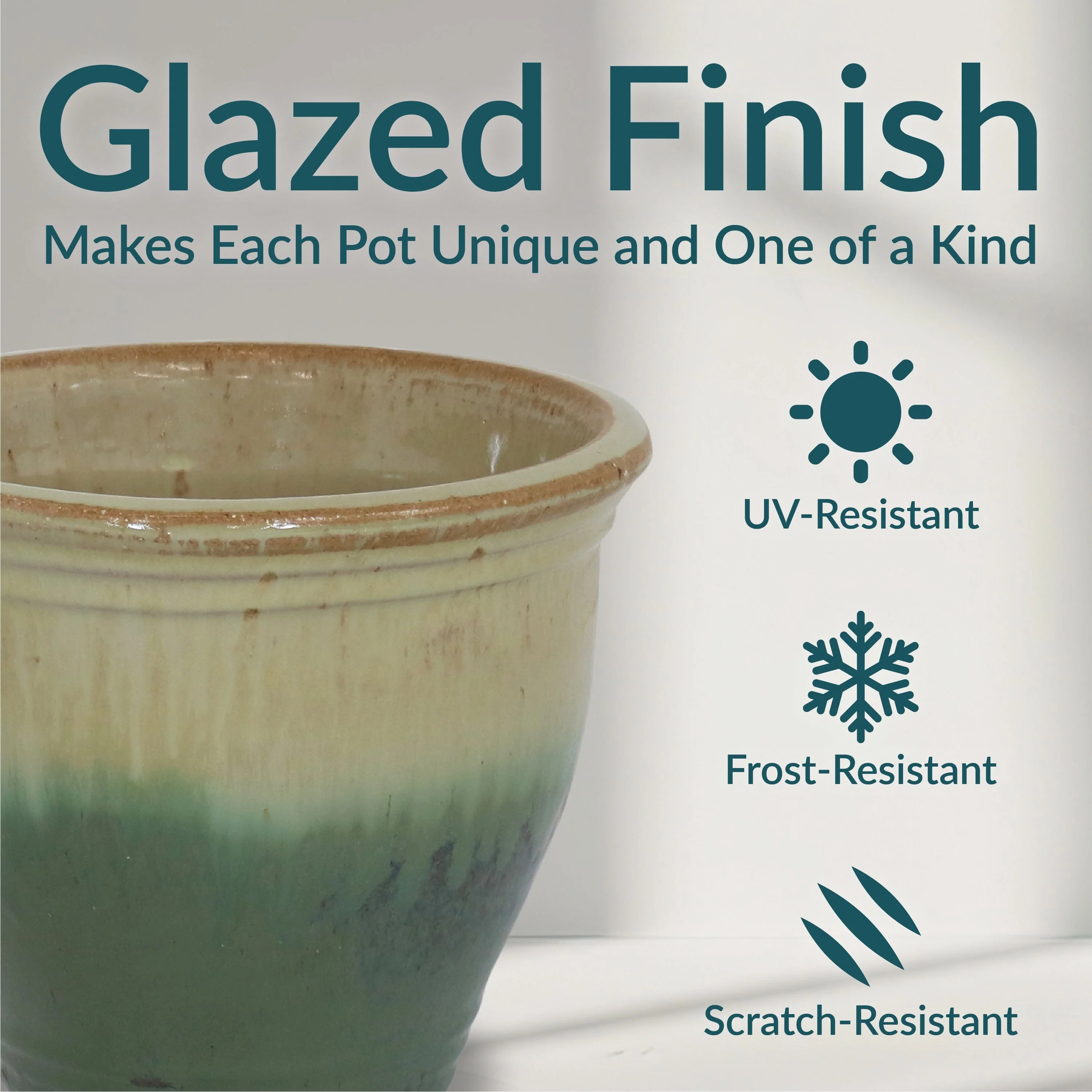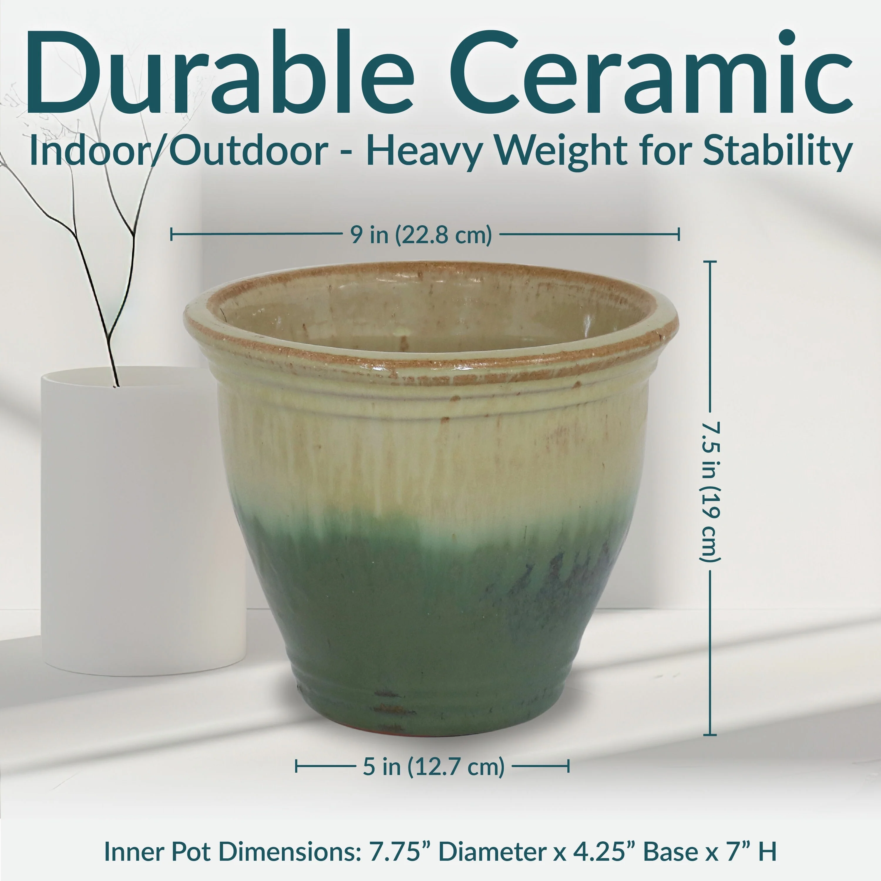 Sunnydaze Studio Glazed Ceramic Planter - Set of 2 - 9-Inch - Seafoam