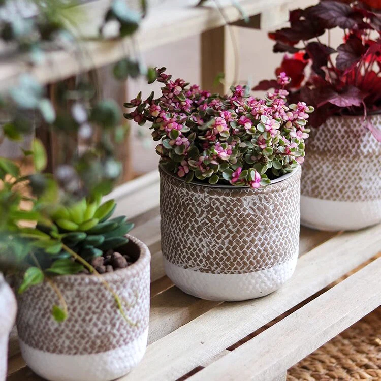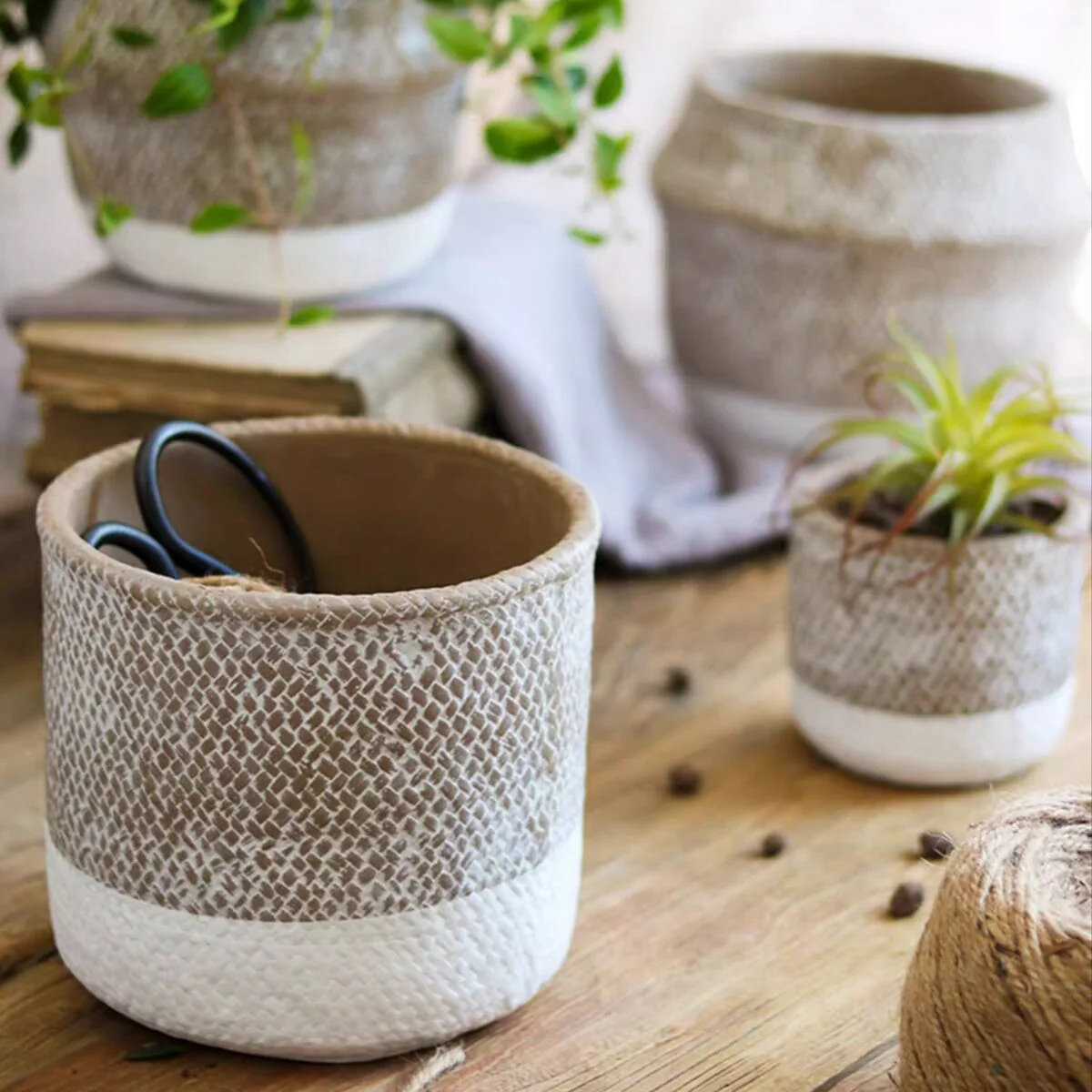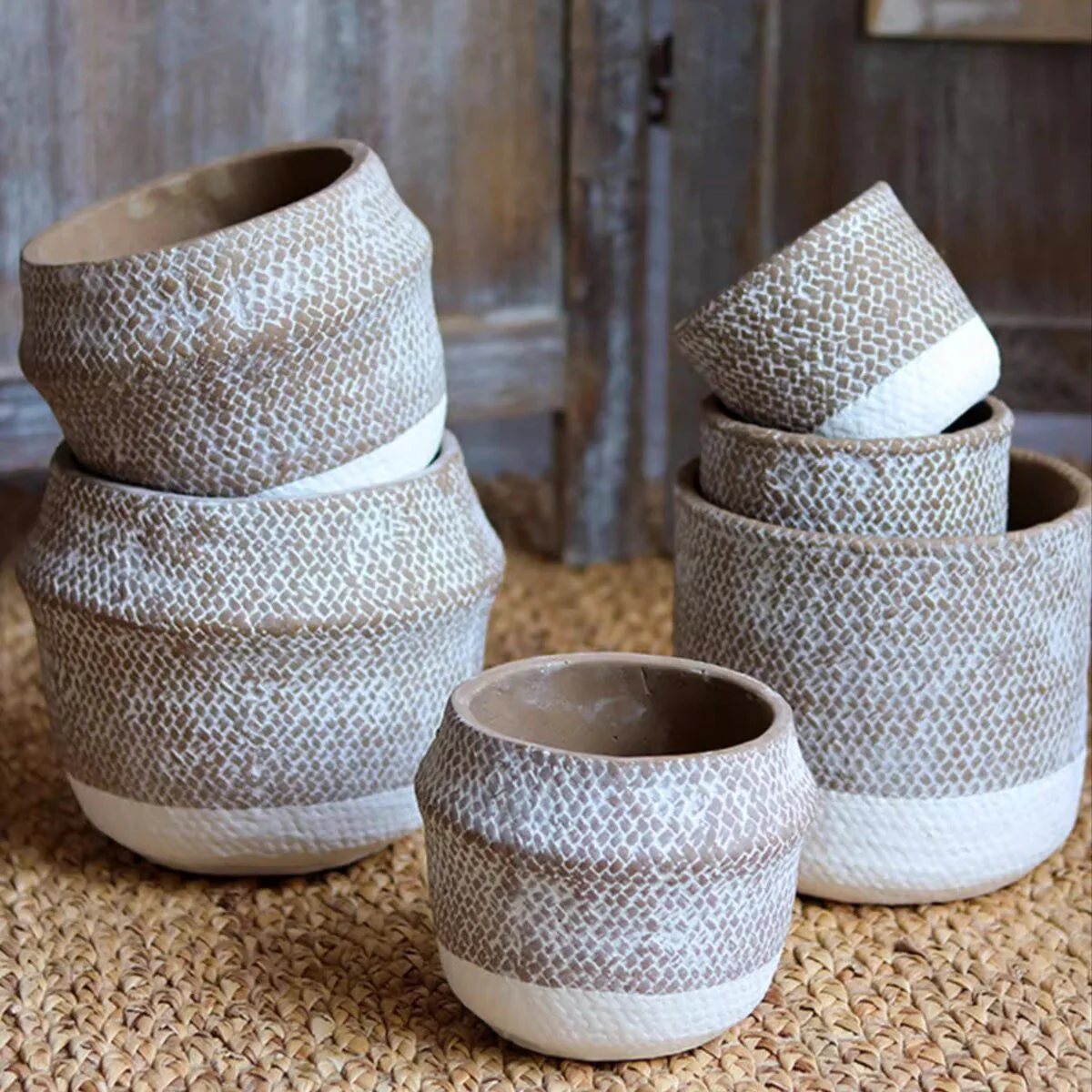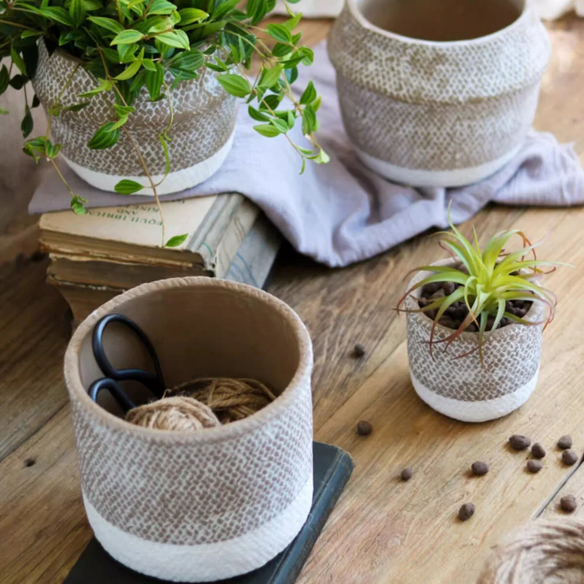 Dotted Pewter Ceramic Decorative Planter - 6.5"