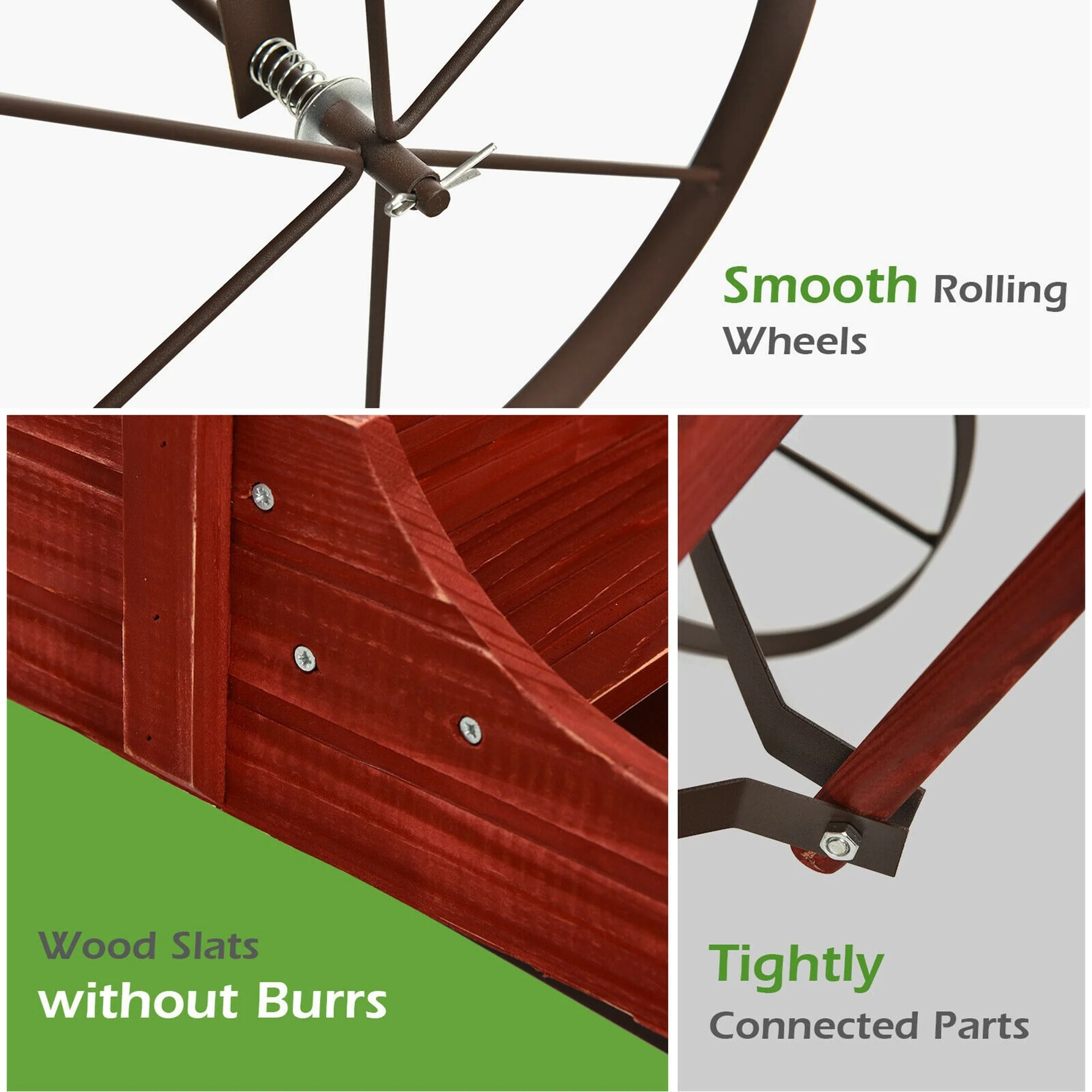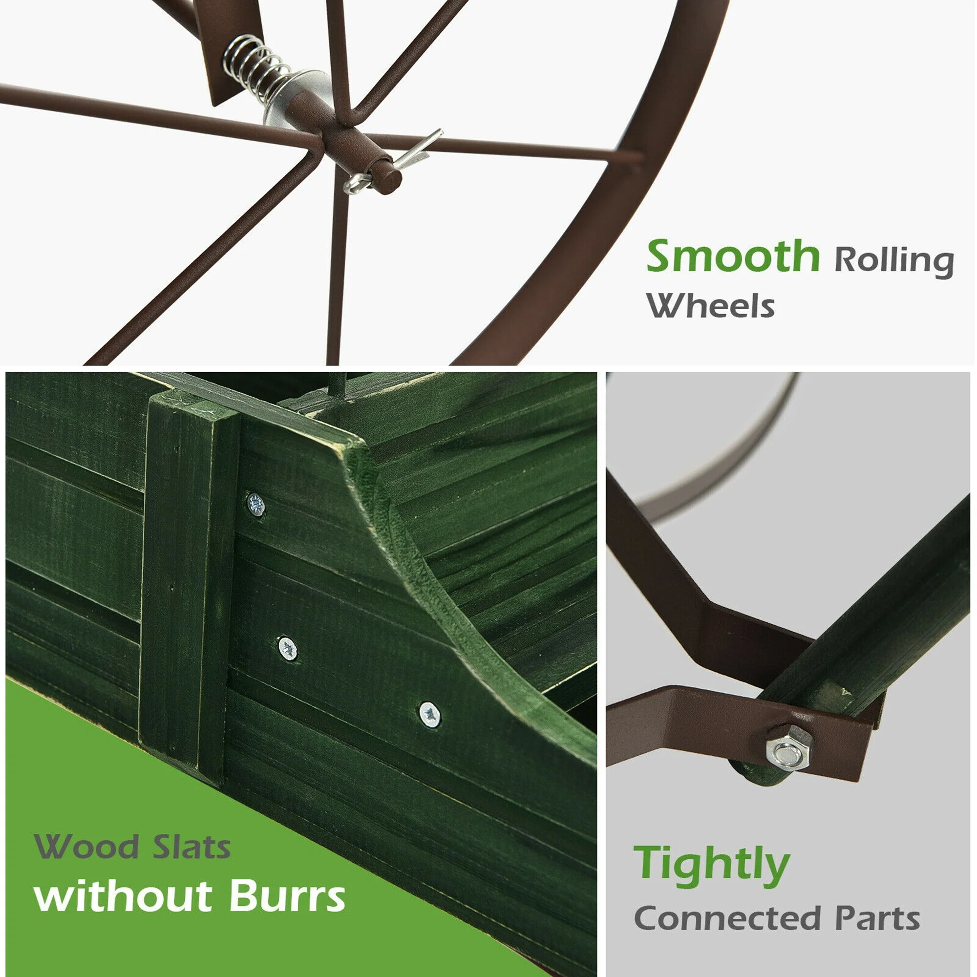 Gymax Garden Plant Planter Wooden Wagon Planter W/ Wheel Garden Yard - 24.5'' x 13.5'' x 24''
