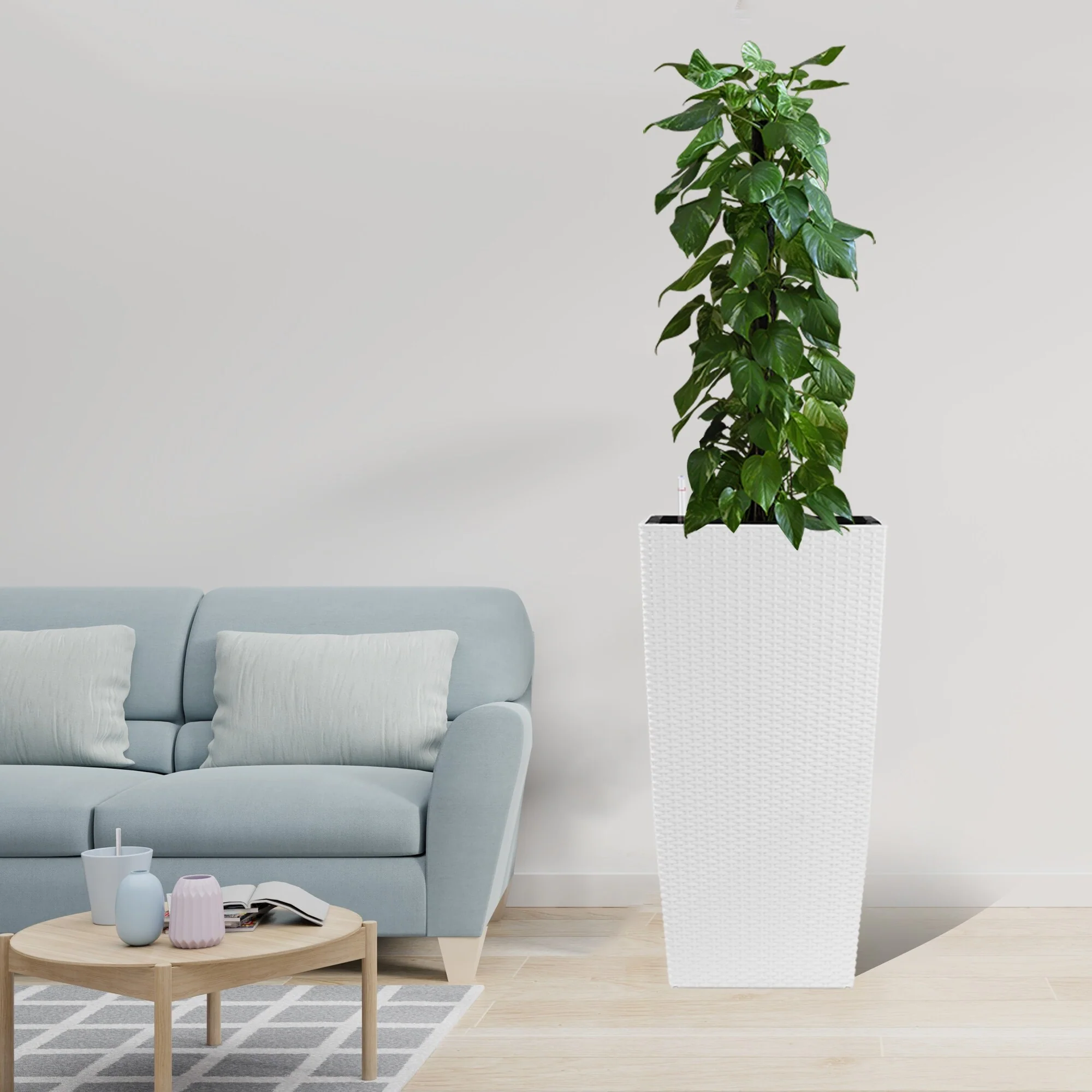 Square Planter for Indoor or Outdoor Use, 22-Inch High Faux Rattan Design Flower Pot with Automatic Watering System(Pack of 2)